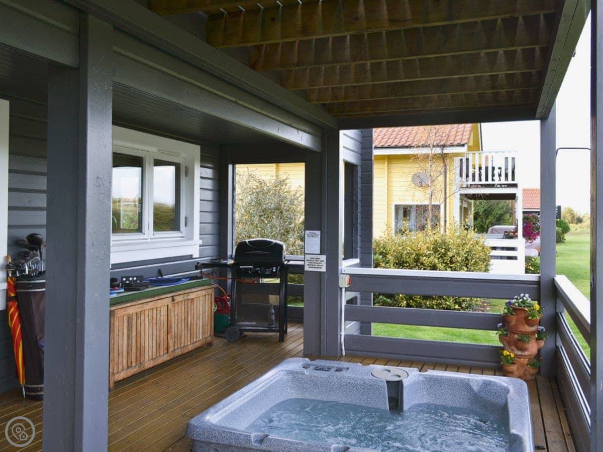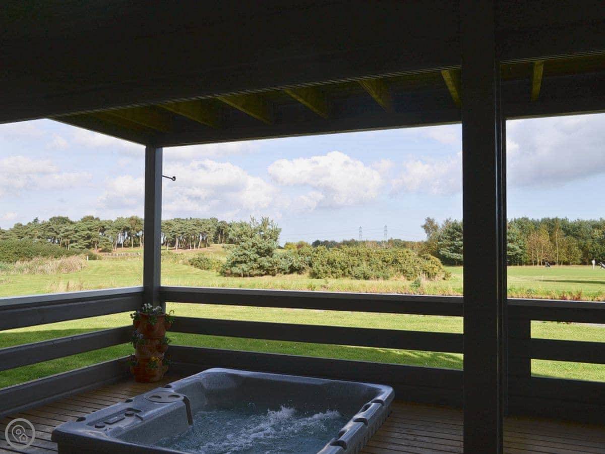 The hot tub is on the deck. There's a telescope in the living room if you fancy looking at the stars. It's a single-storey lodge, so there are no stairs inside. The entrance and main rooms are designed for wheelchair access.