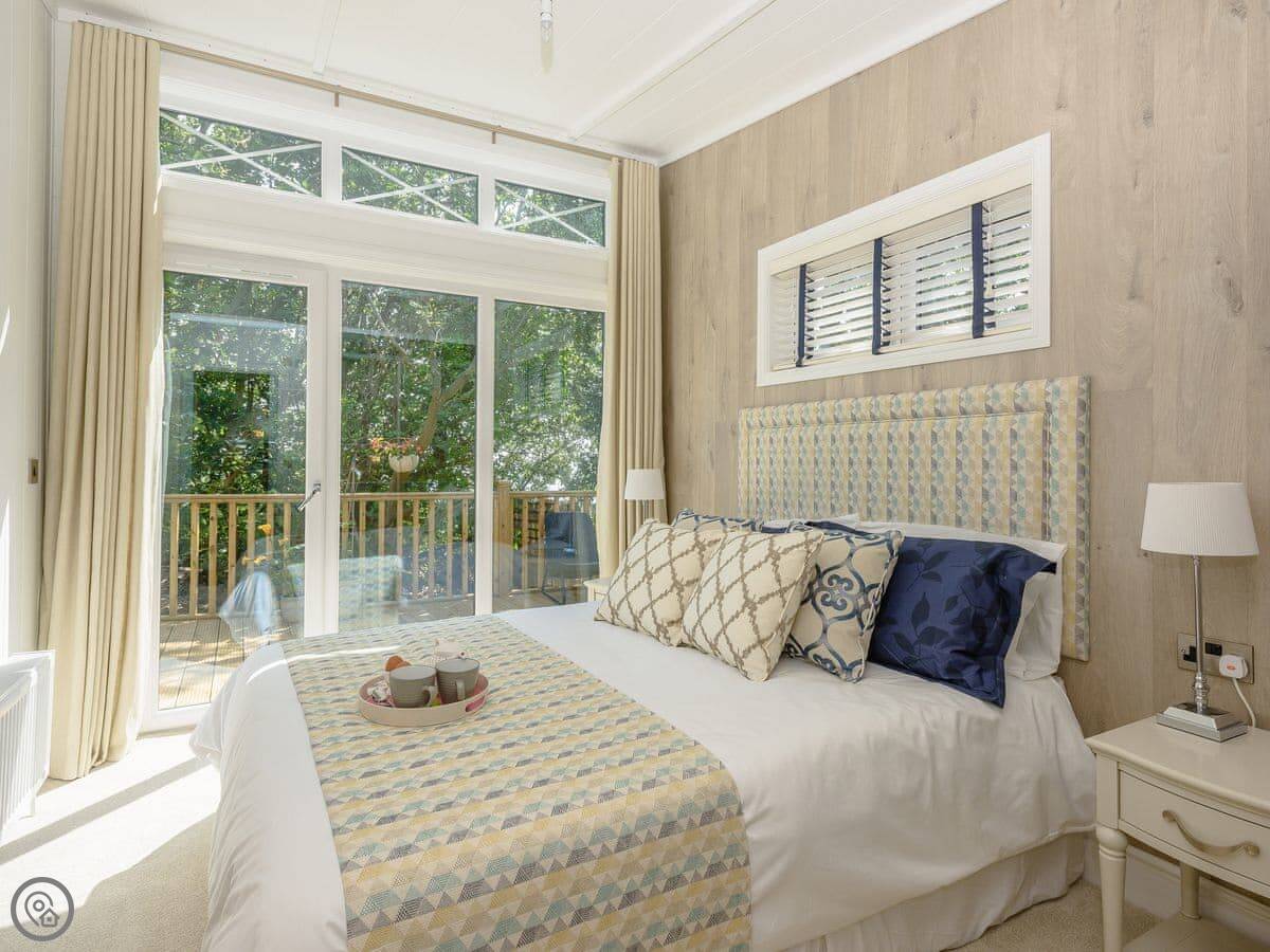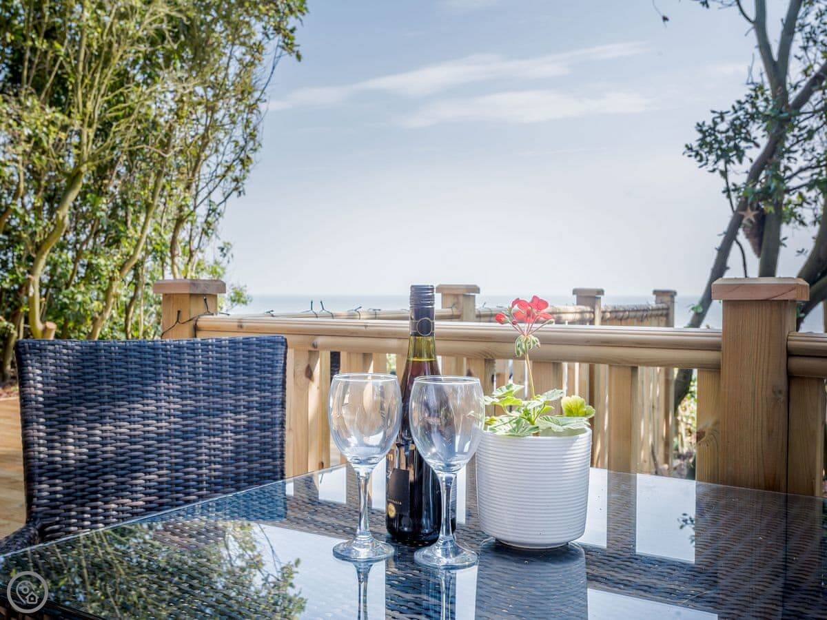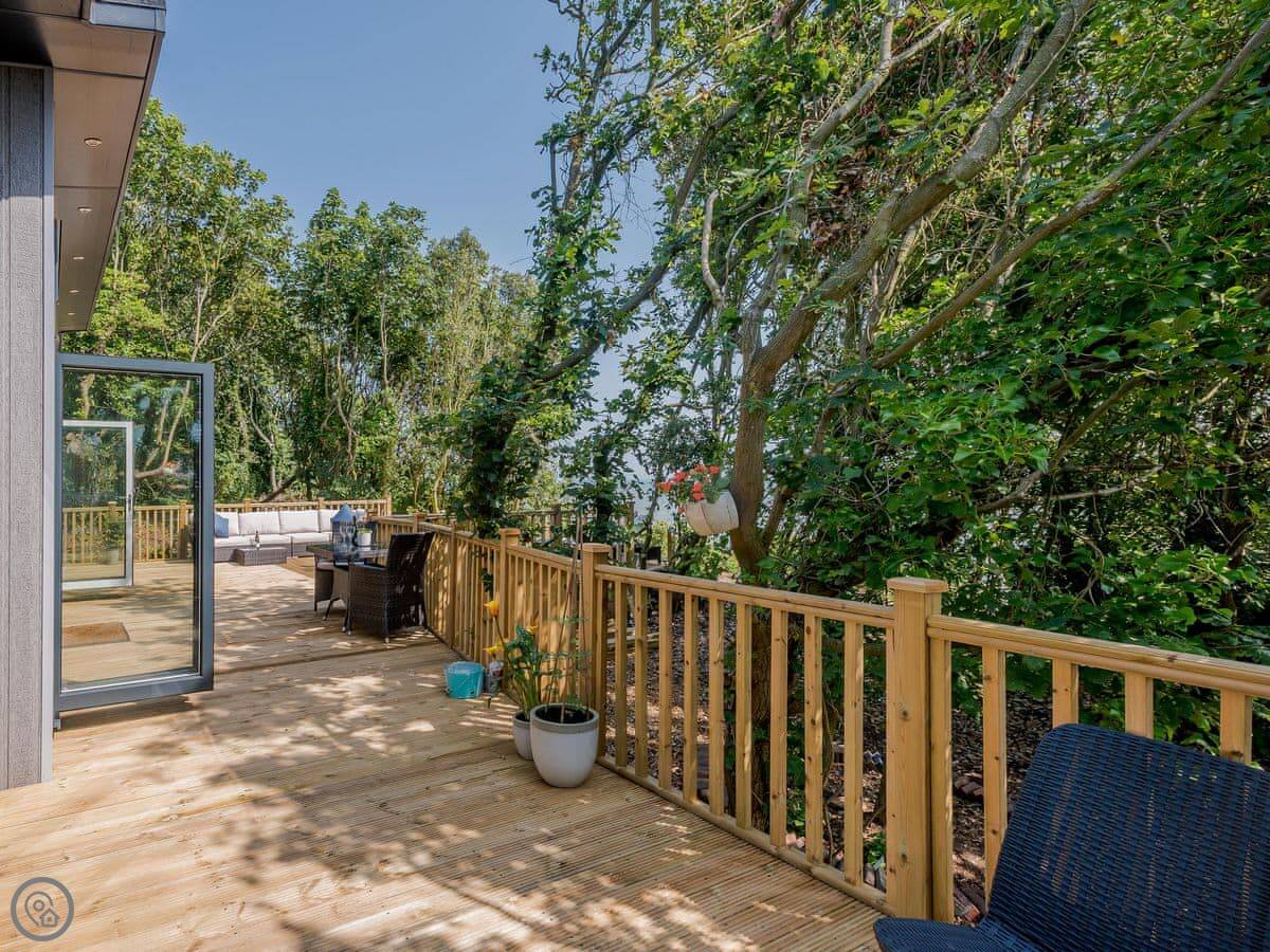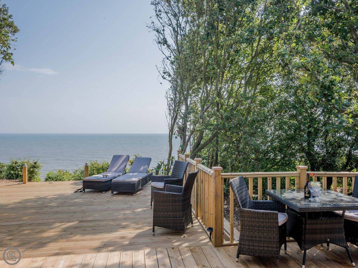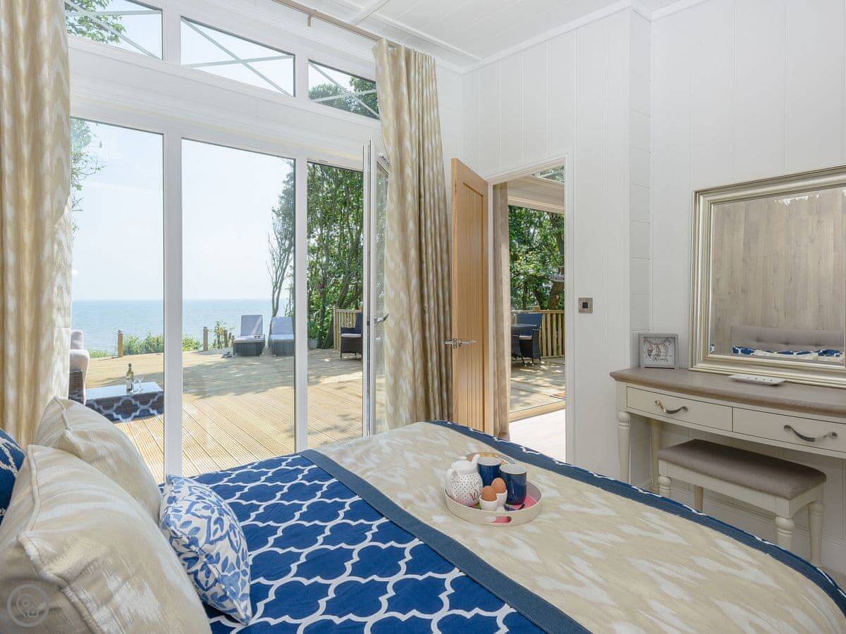 The big doors at the front open right up onto a deck. You can sit out there and look at the sea. There’s a path down to the beach from the site. It takes about three minutes to walk.