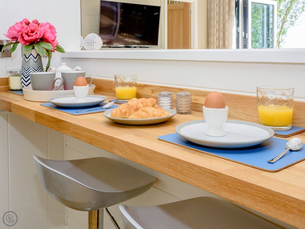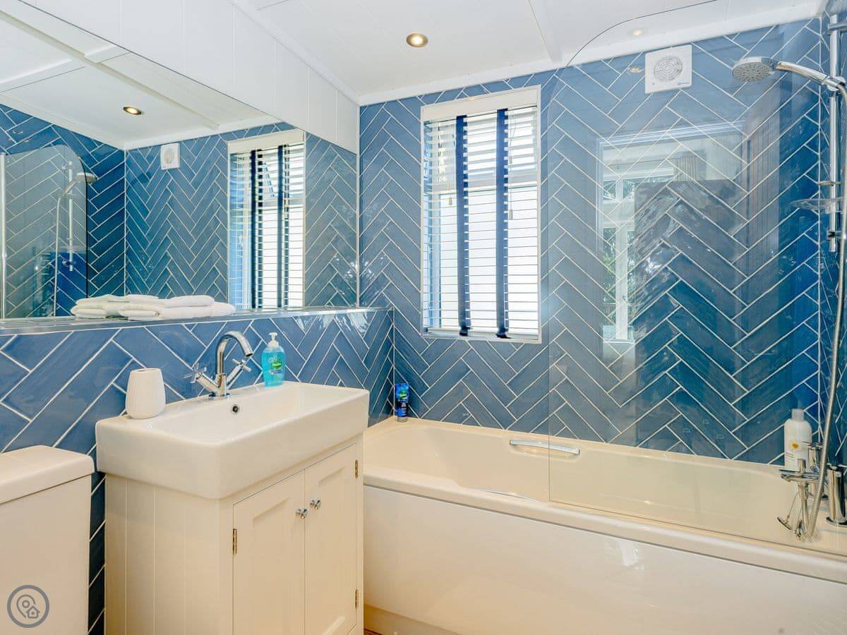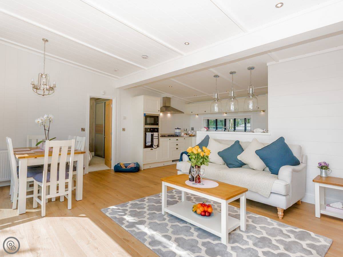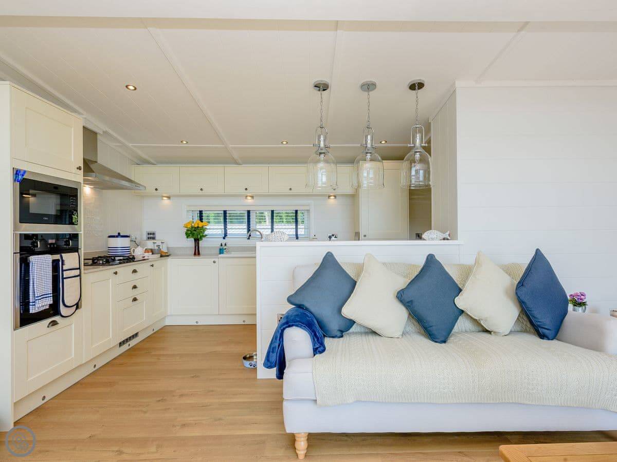 It’s detached and you get parking for two cars. All the usual things are there: WiFi, TV, washing machine, dishwasher. The kitchen has a proper hob and oven. You can bring one dog.