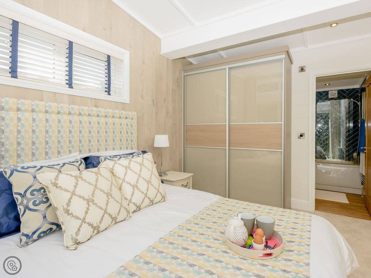 It sleeps four. Two bedrooms, both have kingsize beds. Each bedroom has its own bathroom, which is handy. It’s got a 5 Star rating, which is the top one. It’s new and everything works.