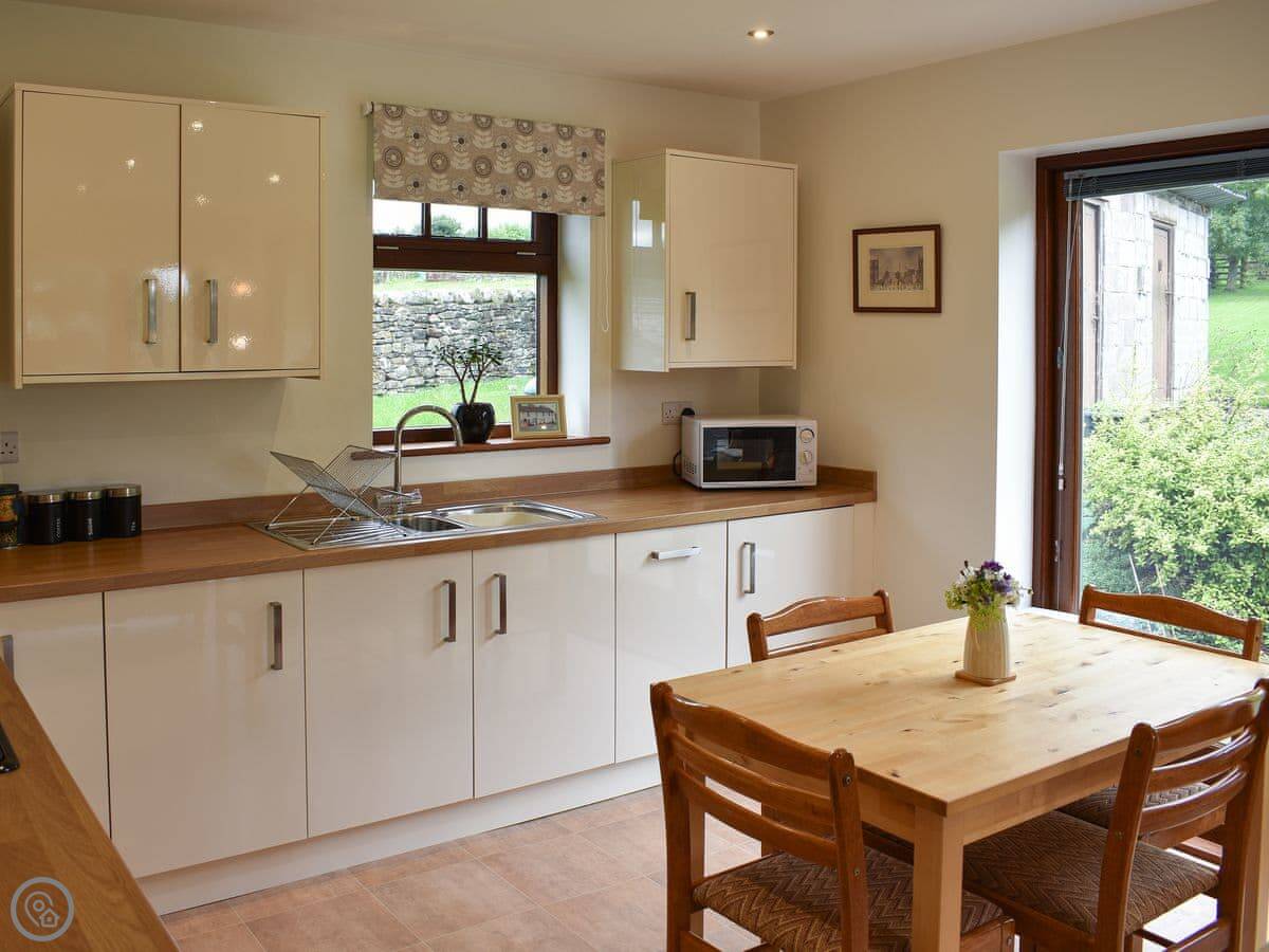 The accommodation is light and airy with an open plan living/dining room/kitchen. In the winter months the wood burner draws you in for a cosy winters evening curled up with a glass of wine and a movie. An en-suite master bedroom with double bed and pretty bed linen and a second single bedroom or dressing room complete the accommodation.
