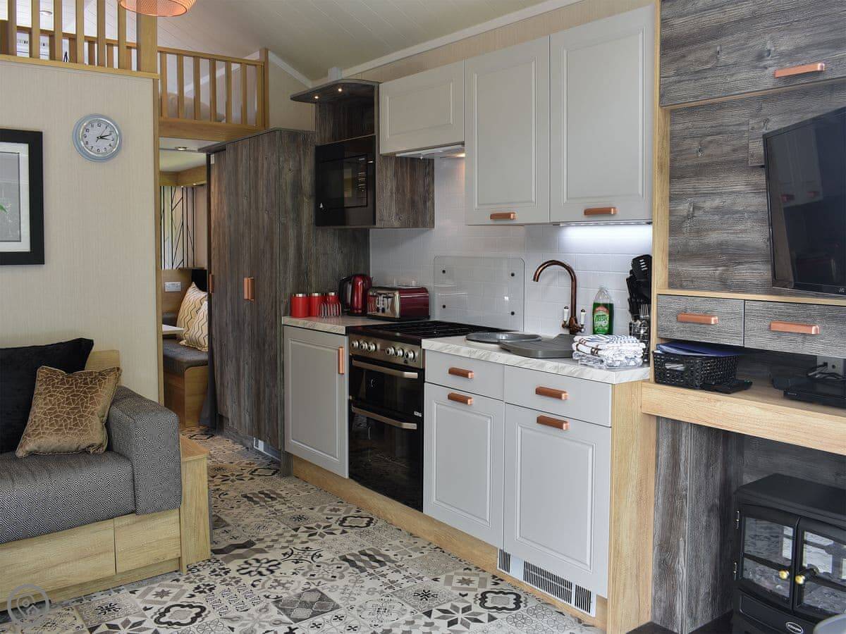 This location makes for an excellent touring base for exploring the Yorkshire and Durham Dales to the east, and the Lake District National Park to the west. This detached holiday property offers riverside views from the private decking. It is tastefully furnished, well-equipped and very comfortable, enjoying countryside views and a lovely setting on a no-through lane within a small, rural caravan park.