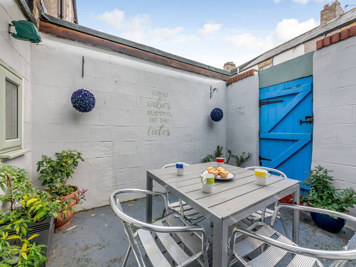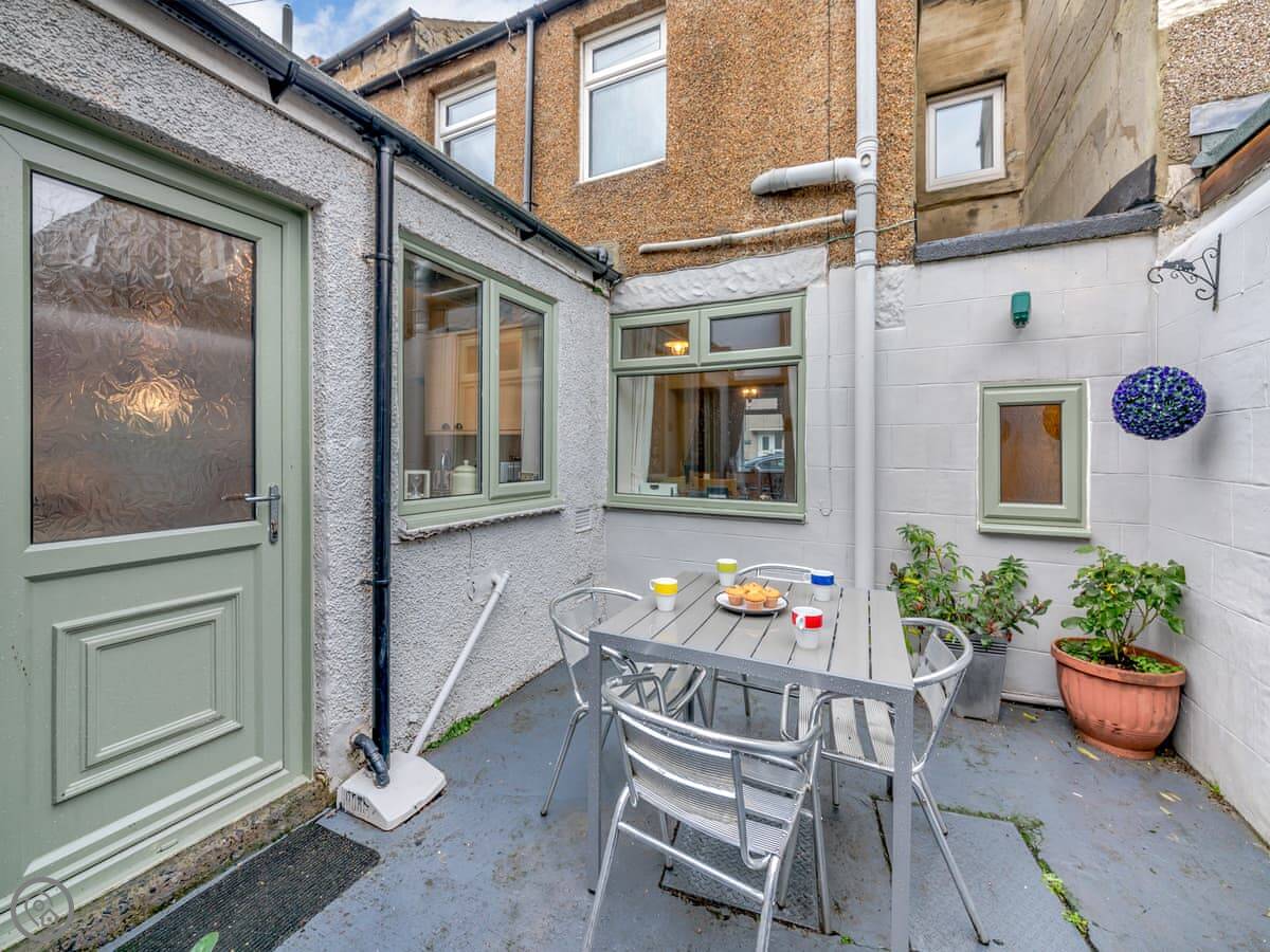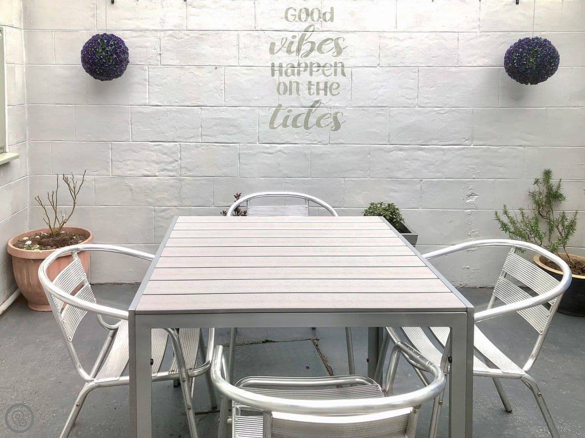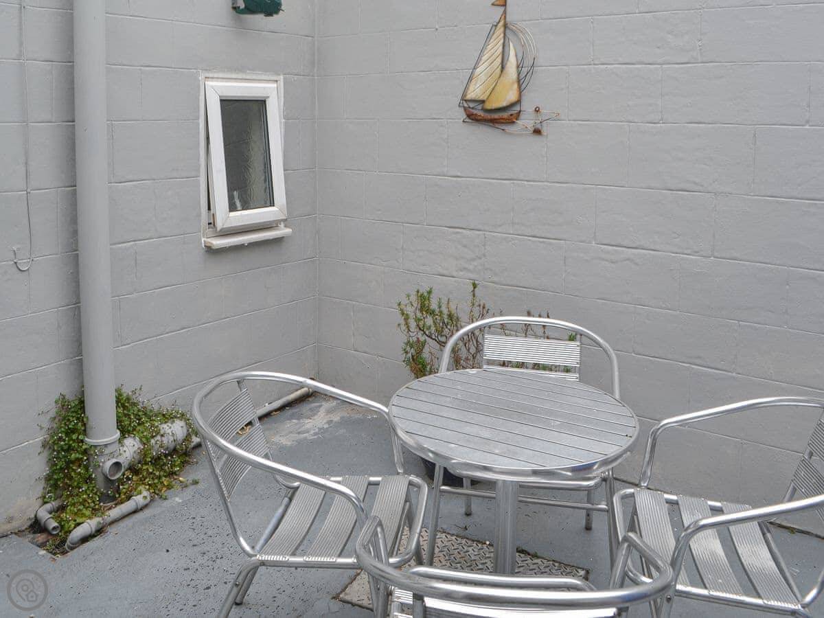 It sleeps five. Three bedrooms, one bathroom. It's got a 4 Star rating. It's comfortable, not fancy. The garden is a small patio out the back.