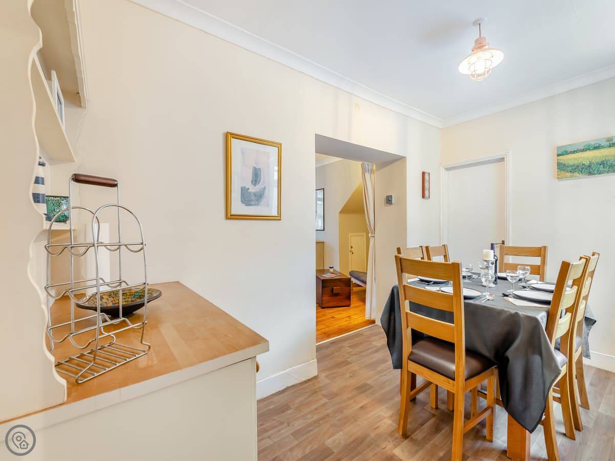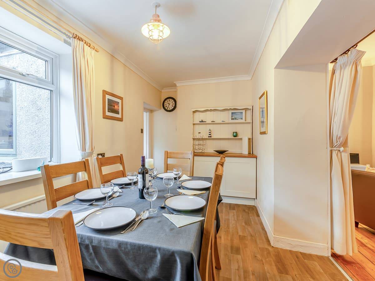 The town is small and friendly. There are two good fish and chip shops near the harbour, an ice cream place, and a couple of fish restaurants. A Sunday market happens by the harbour too. The local shop is a couple of minutes away. The pub is about a ten minute walk.