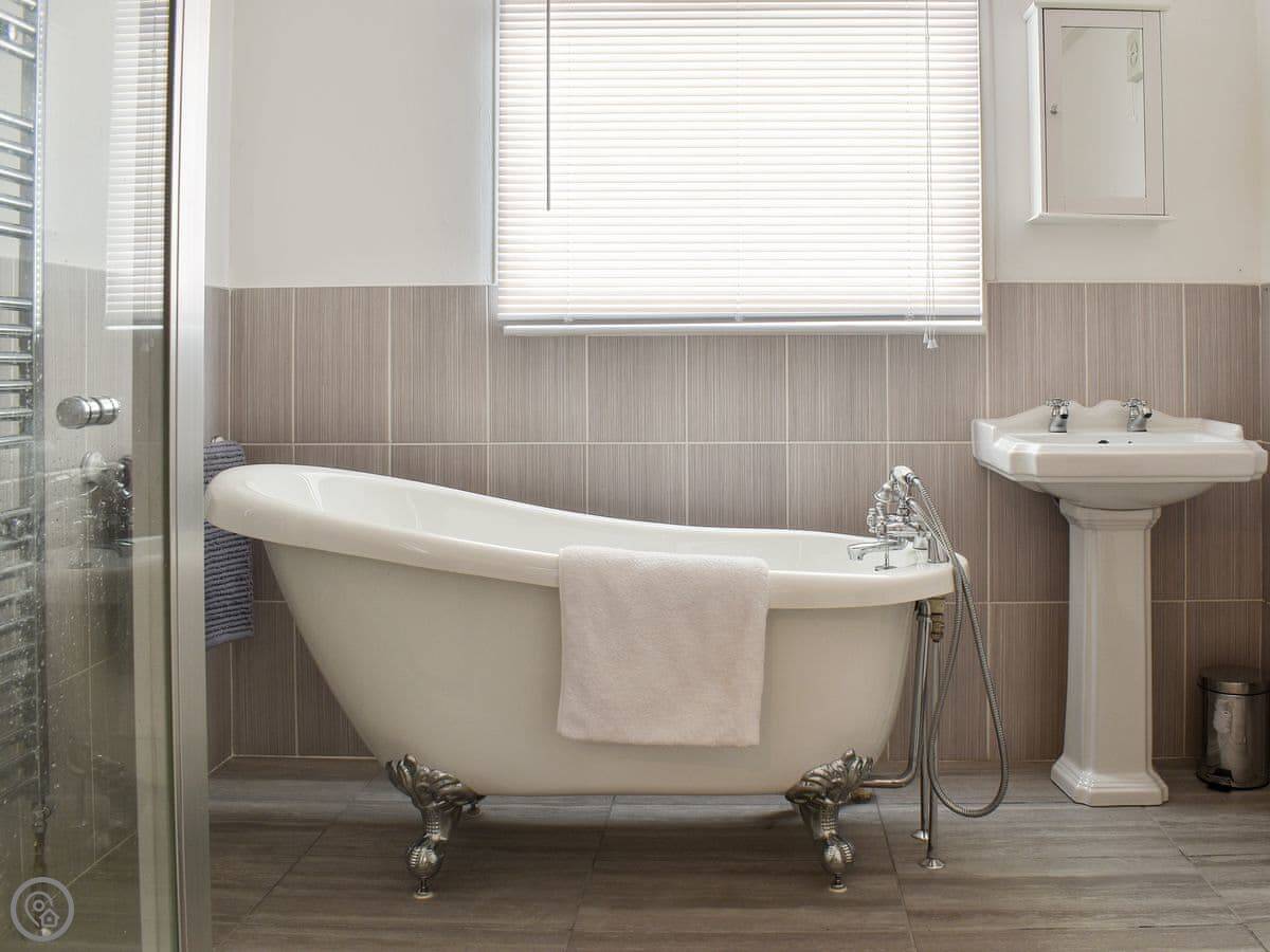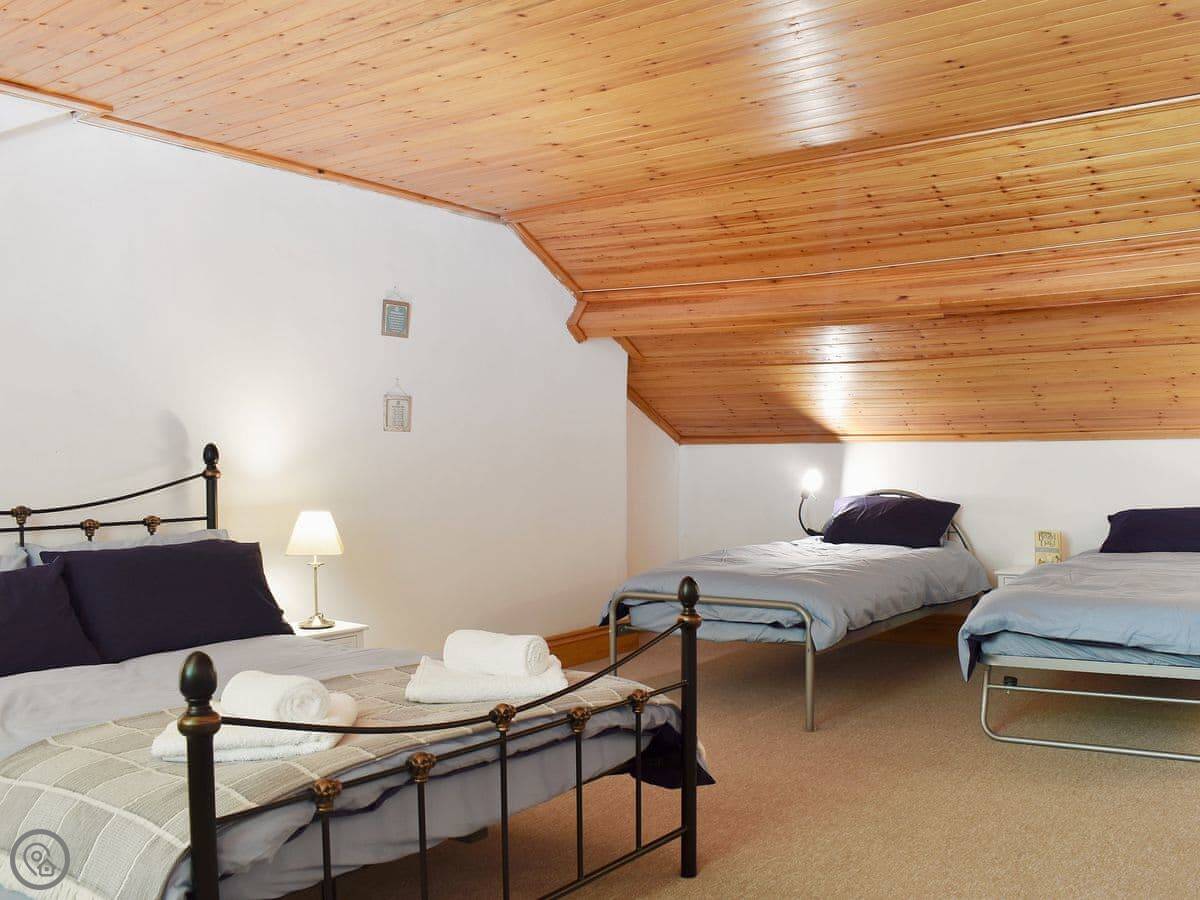 For facilities, it’s got a woodburning stove, dishwasher, washing machine, WiFi and TV. Bedding and towels are included. There’s a highchair and stairgate if you need them.