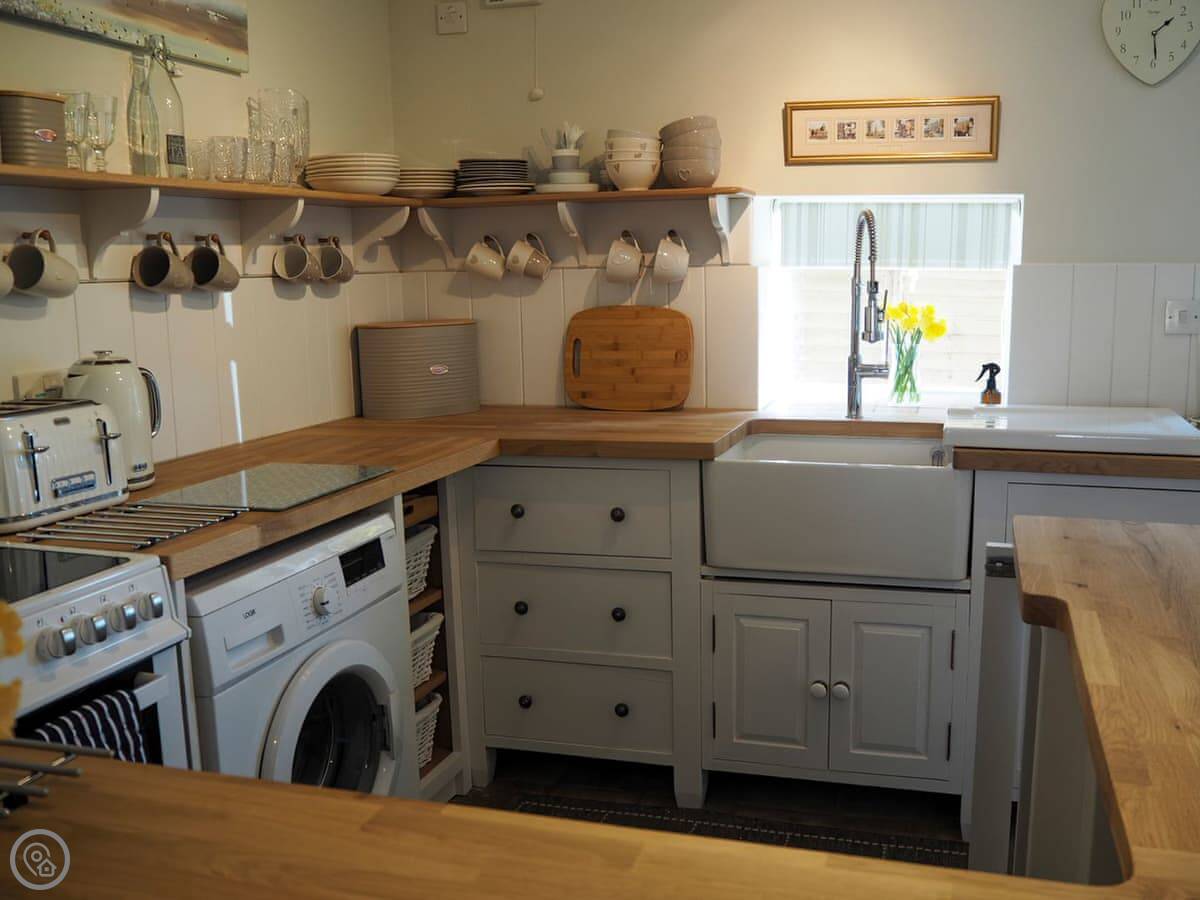 Facilities are straightforward. There's a washing machine, TV, WiFi, and a highchair if you need it. Bedding and towels are included. Parking is on site.
