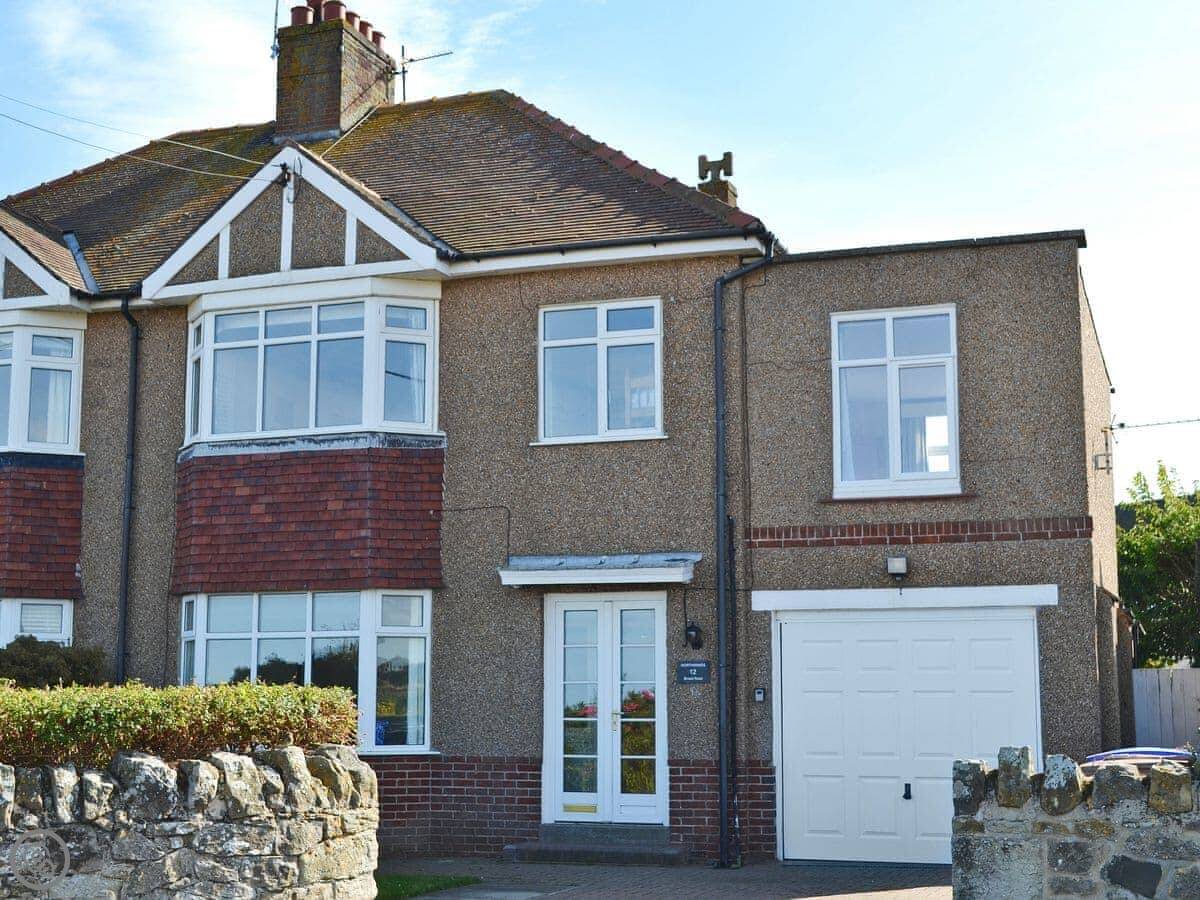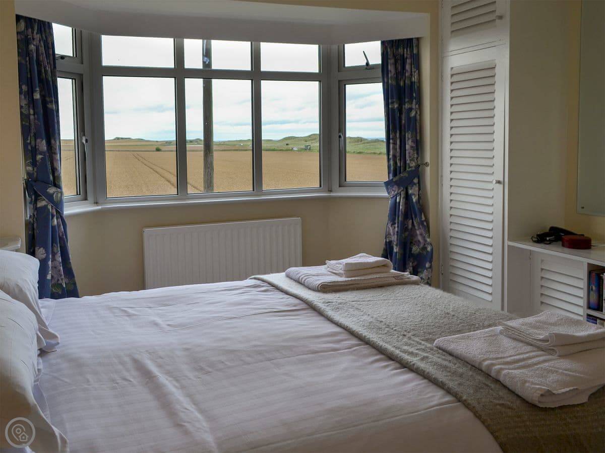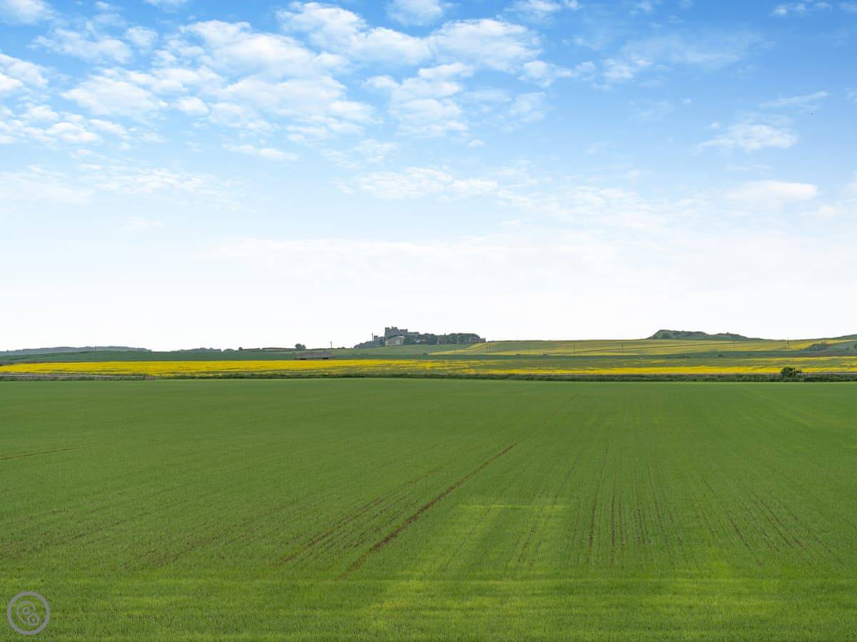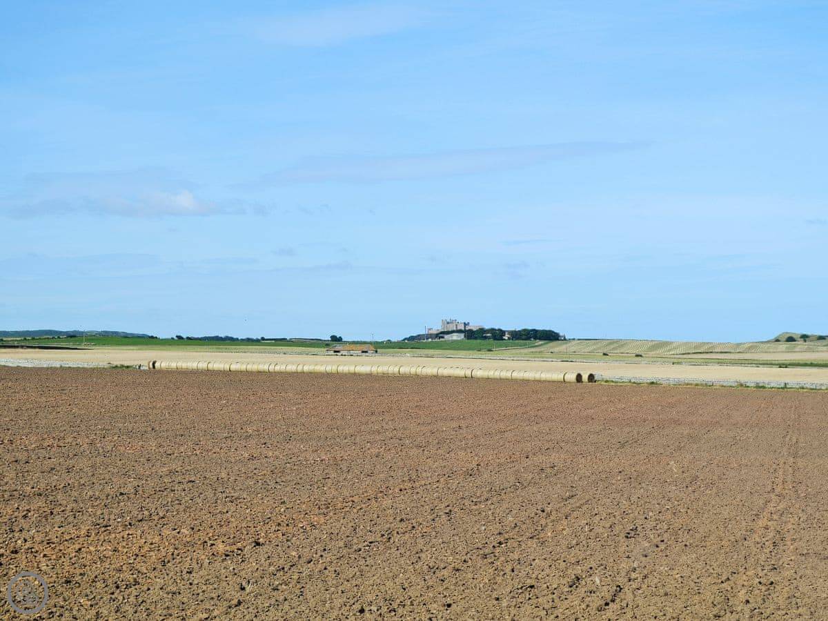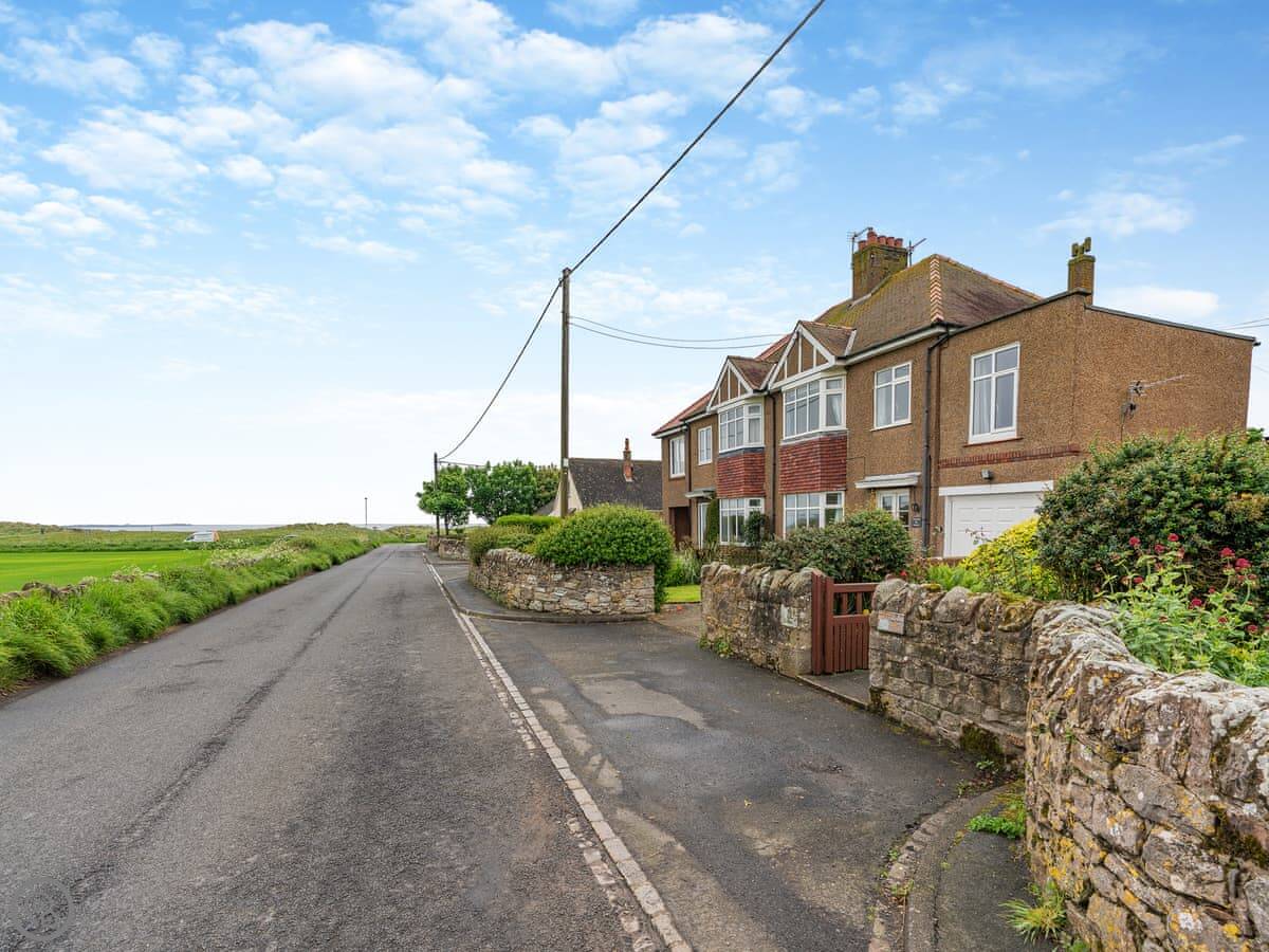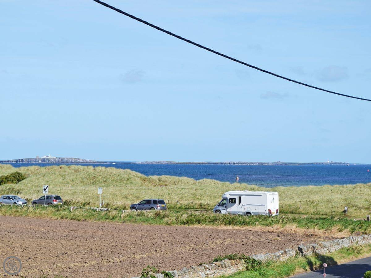 Northwinds is in Seahouses, just at the edge of town. You're on the north side. It means it's a bit quieter here, but you can walk into the harbour in about 15 minutes. The front of the house looks out over fields towards Bamburgh Castle. You can see the sea from the upstairs windows.