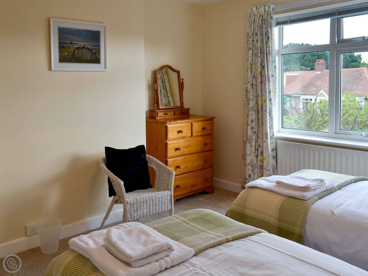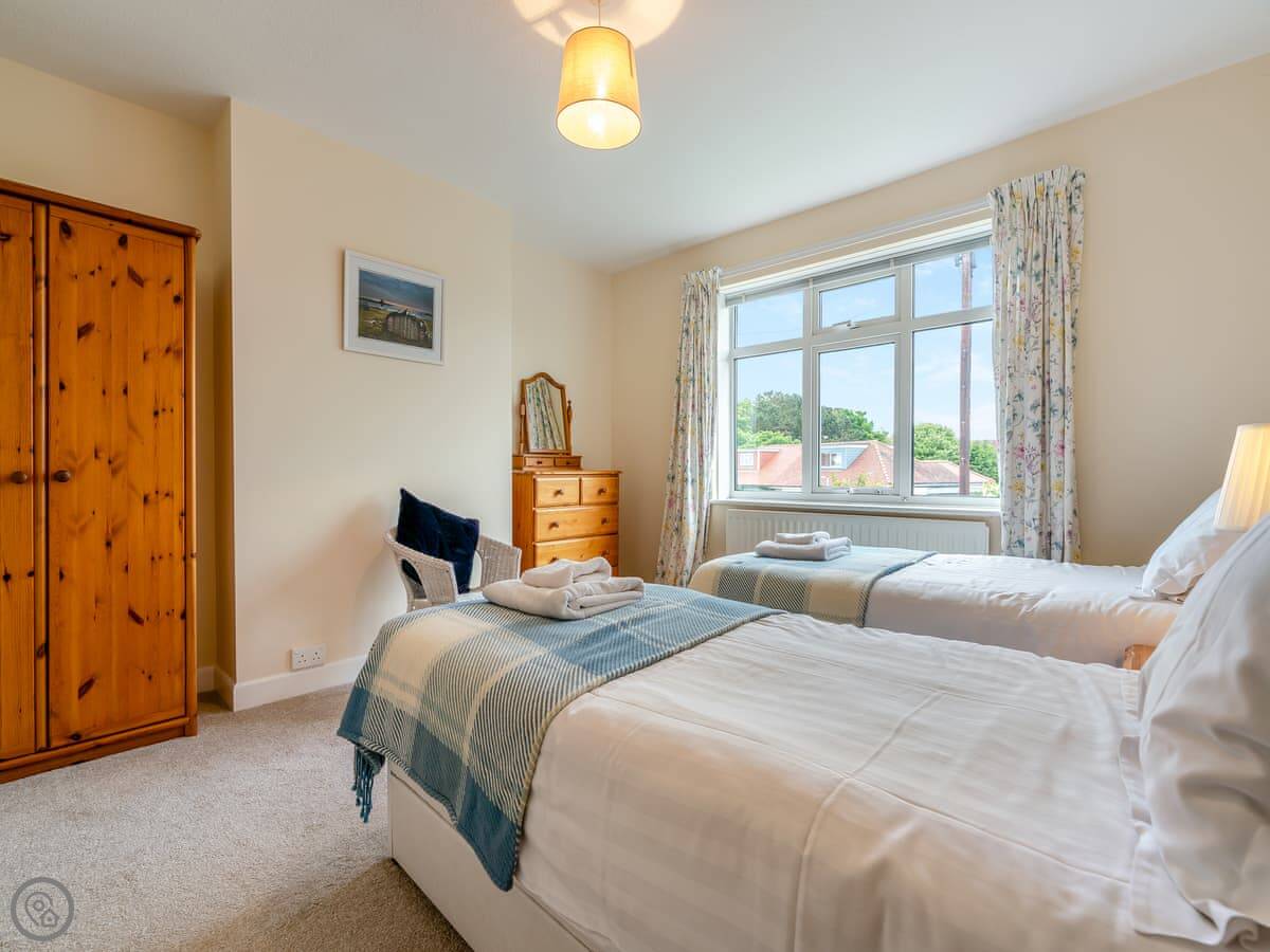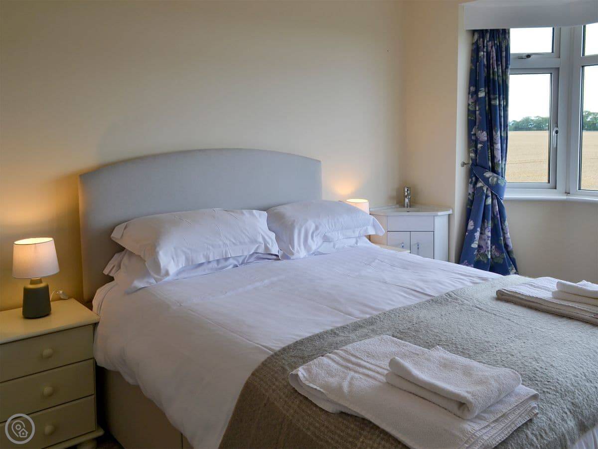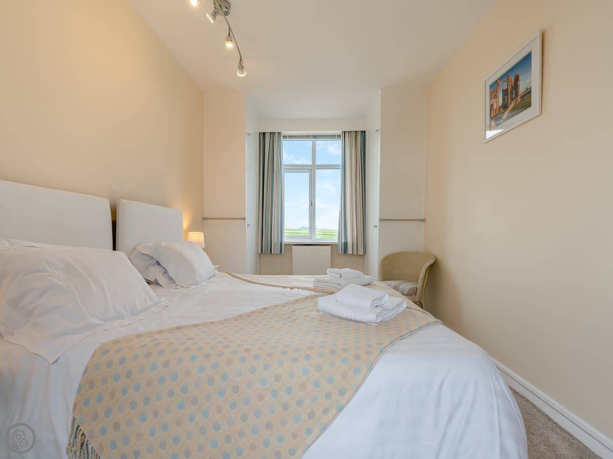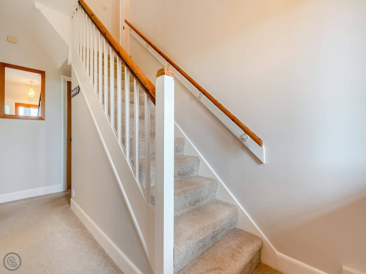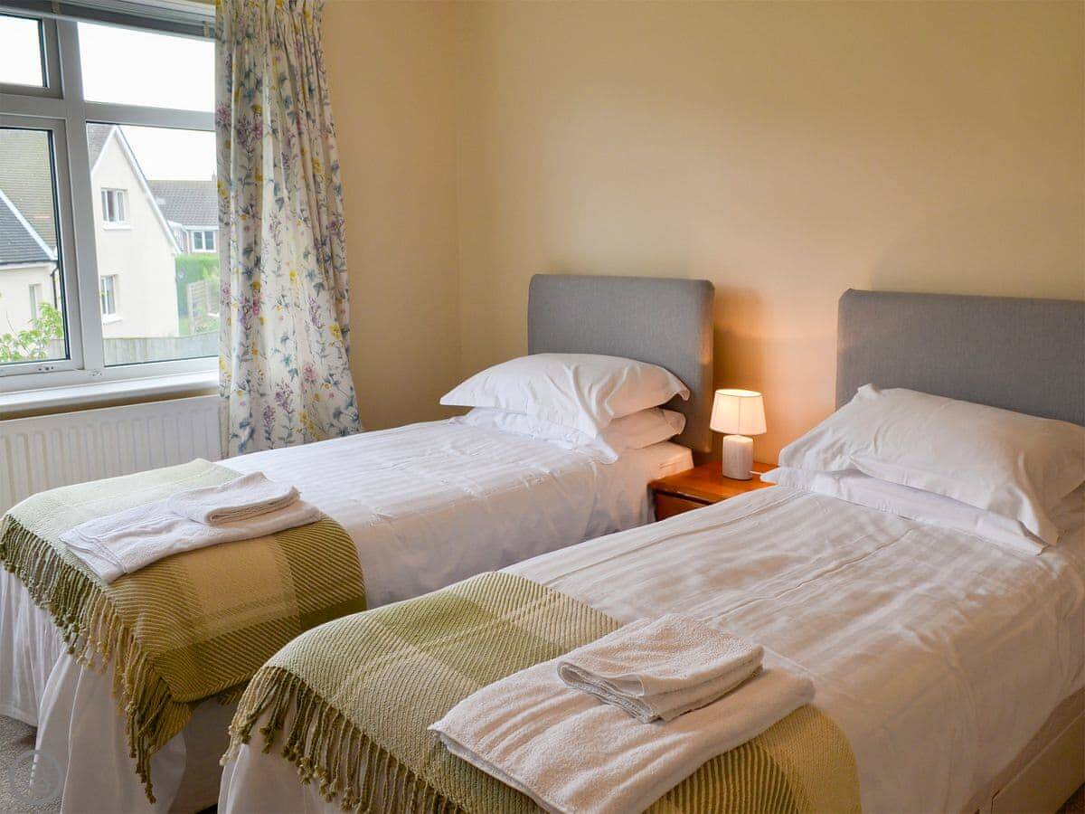 Northwinds is in Seahouses, just at the edge of town. You're on the north side. It means it's a bit quieter here, but you can walk into the harbour in about 15 minutes. The front of the house looks out over fields towards Bamburgh Castle. You can see the sea from the upstairs windows.