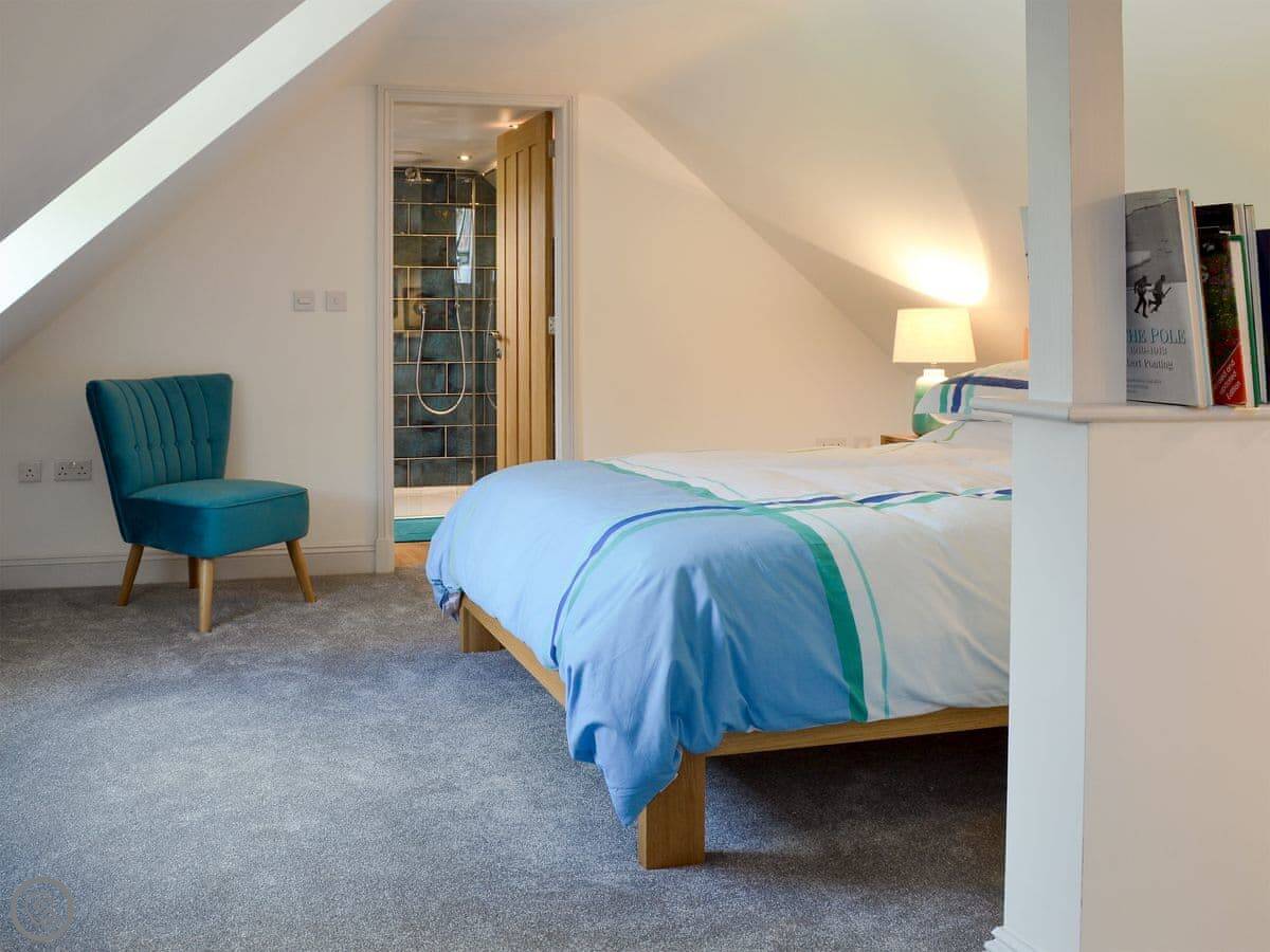 It's for two people. One big room with the bed, kitchenette and sitting area in it, and an en-suite wet room. The doorway is level and it's all on one floor, so it's accessible. It's got a 4 Star rating so everything's in good order.