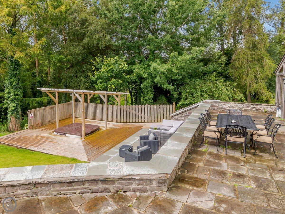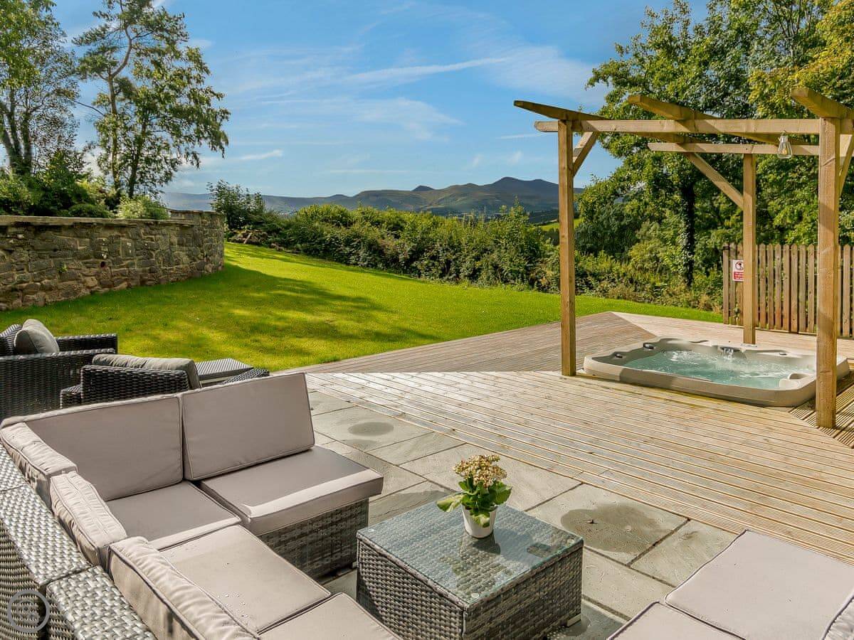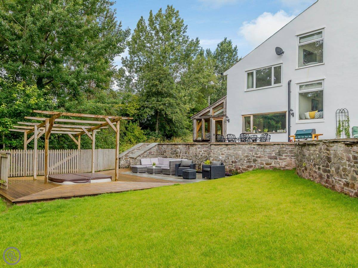 The south-facing patio features al fresco seating, a barbecue and a hot tub, alongside manicured gardens leading down to a rippling stream. For generations, this home has been a restorative place to eat, play and laugh amid beautiful Welsh scenery and plenty of fresh countryside air. Shop, pub and restaurant 2 miles.