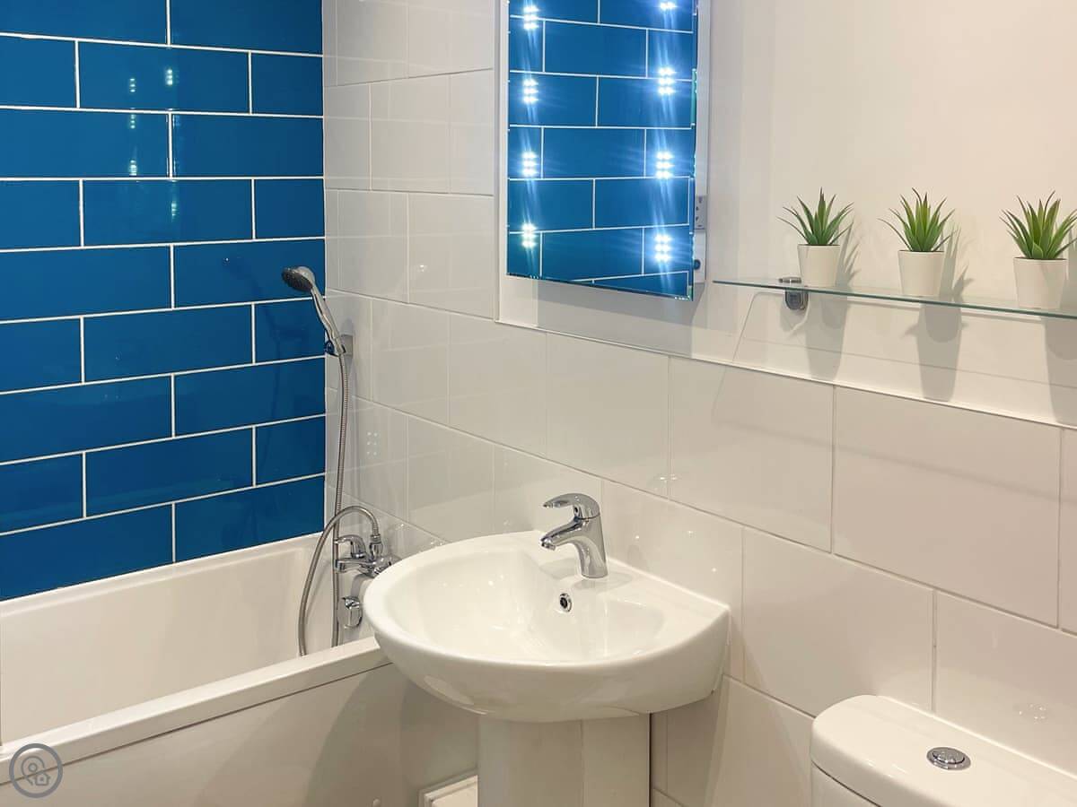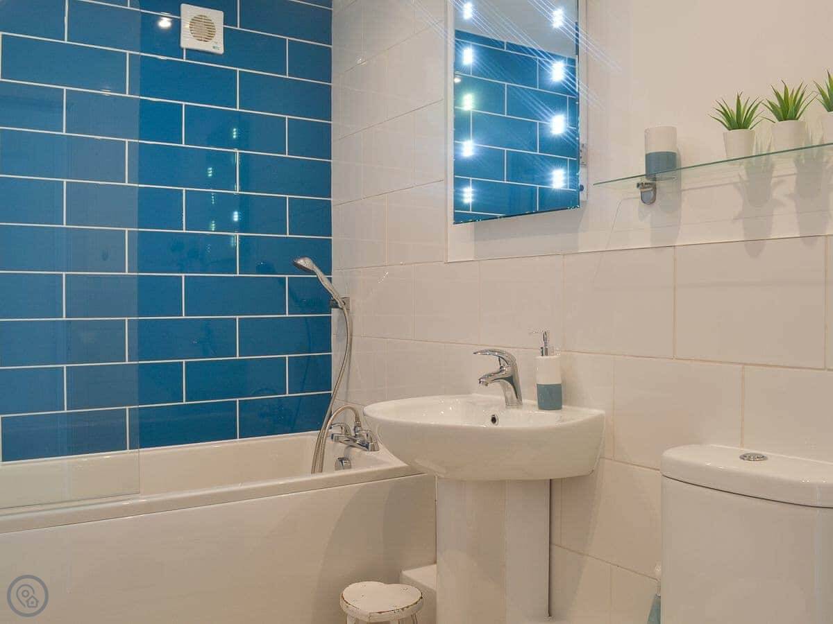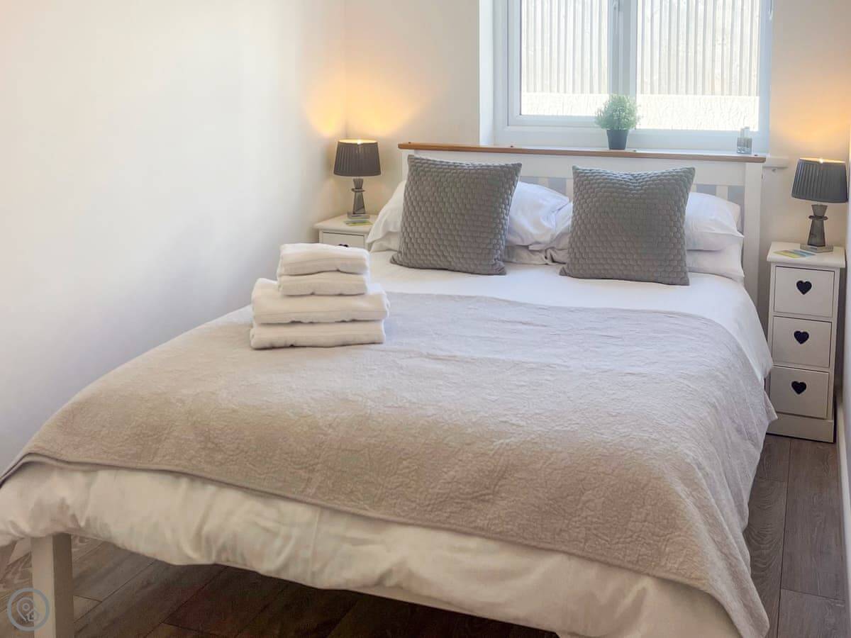 It sleeps six. There are three bedrooms and one bathroom downstairs. It's got a 5 Star rating, so everything is in good order and it's well equipped.