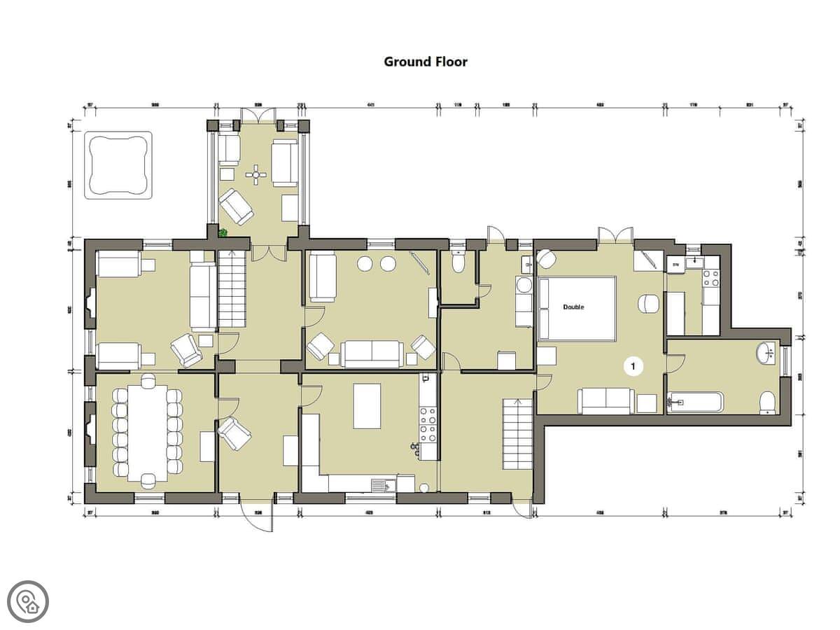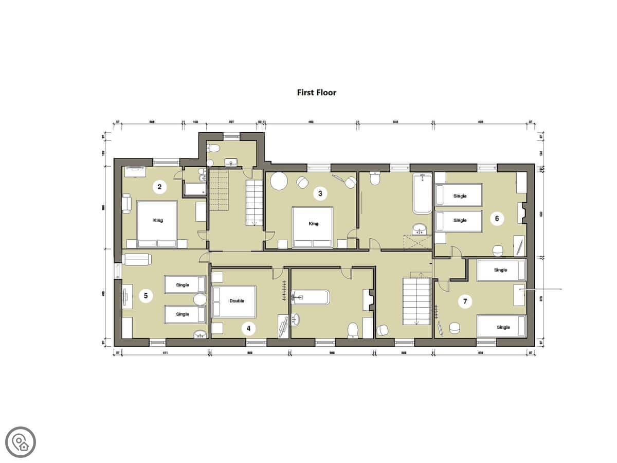 There are seven bedrooms and four bathrooms. One bedroom is on the ground floor with an ensuite and its own small kitchenette. The main staircase is quite grand and sweeping.