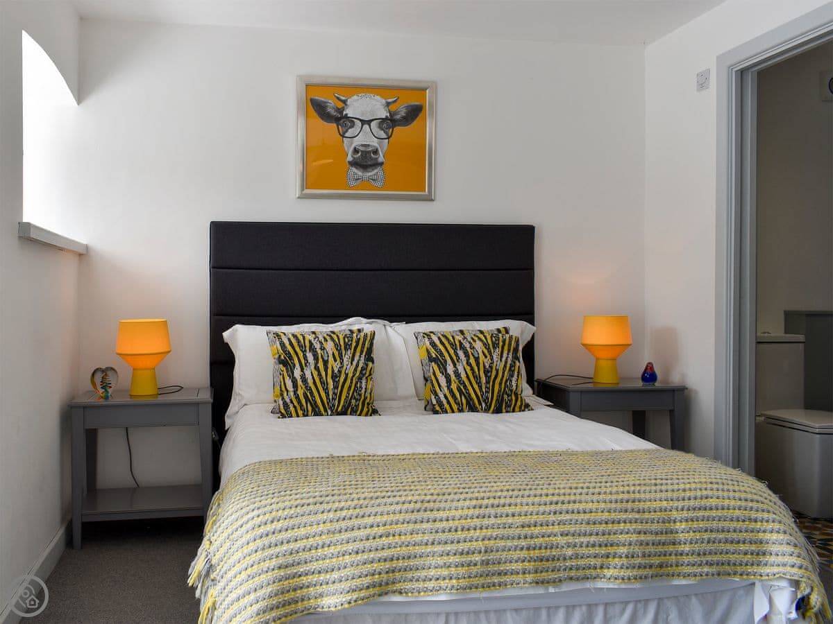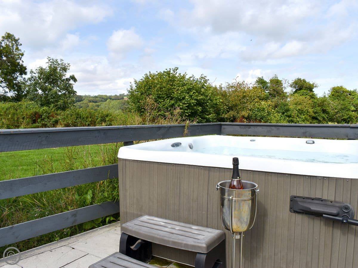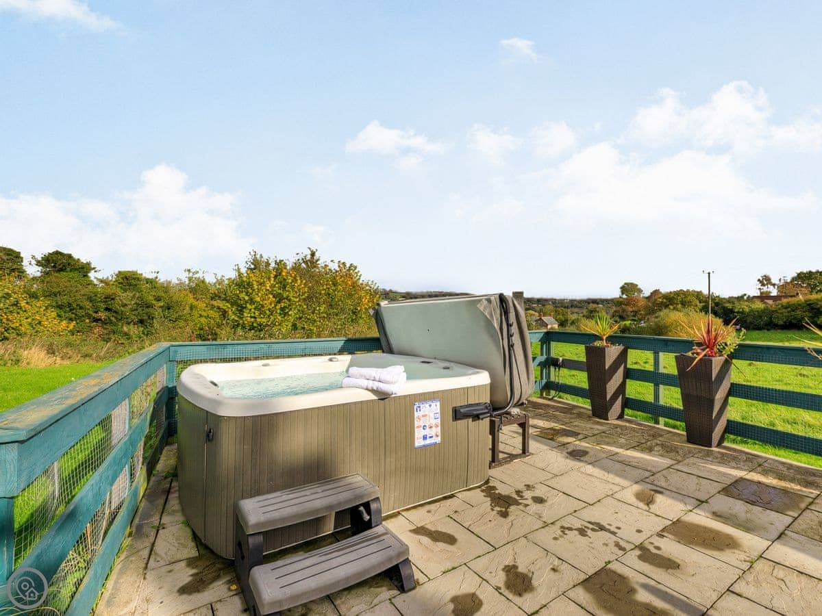 The Cow Shed has been lovingly converted by the owners, who have years of experience in the hospitality industry, and this really shows inside and out. Enter through the stunning glass door, and you will find a ground floor twin bedroom, and a double bedroom with an en-suite shower room just off the hallway. From here, three steps lead down into the wonderful, large, open-plan living space, where gorgeous furnishings and fittings such as olive bucket lightshades set the scene for the stunning views of the Blackdown Hills beyond. Upstairs are two large bedrooms . An impressive bathroom with a roll-top bath and separate shower cubicle can also be found here. Outside, the huge patio area has multiple seating areas and a stunning 6-8 person hot tub, where you can crack open the bubbly and watch the sun set beyond. There is also access to a lovely lawned area for games. There is also a half-acre field for guests use beyond the patio.