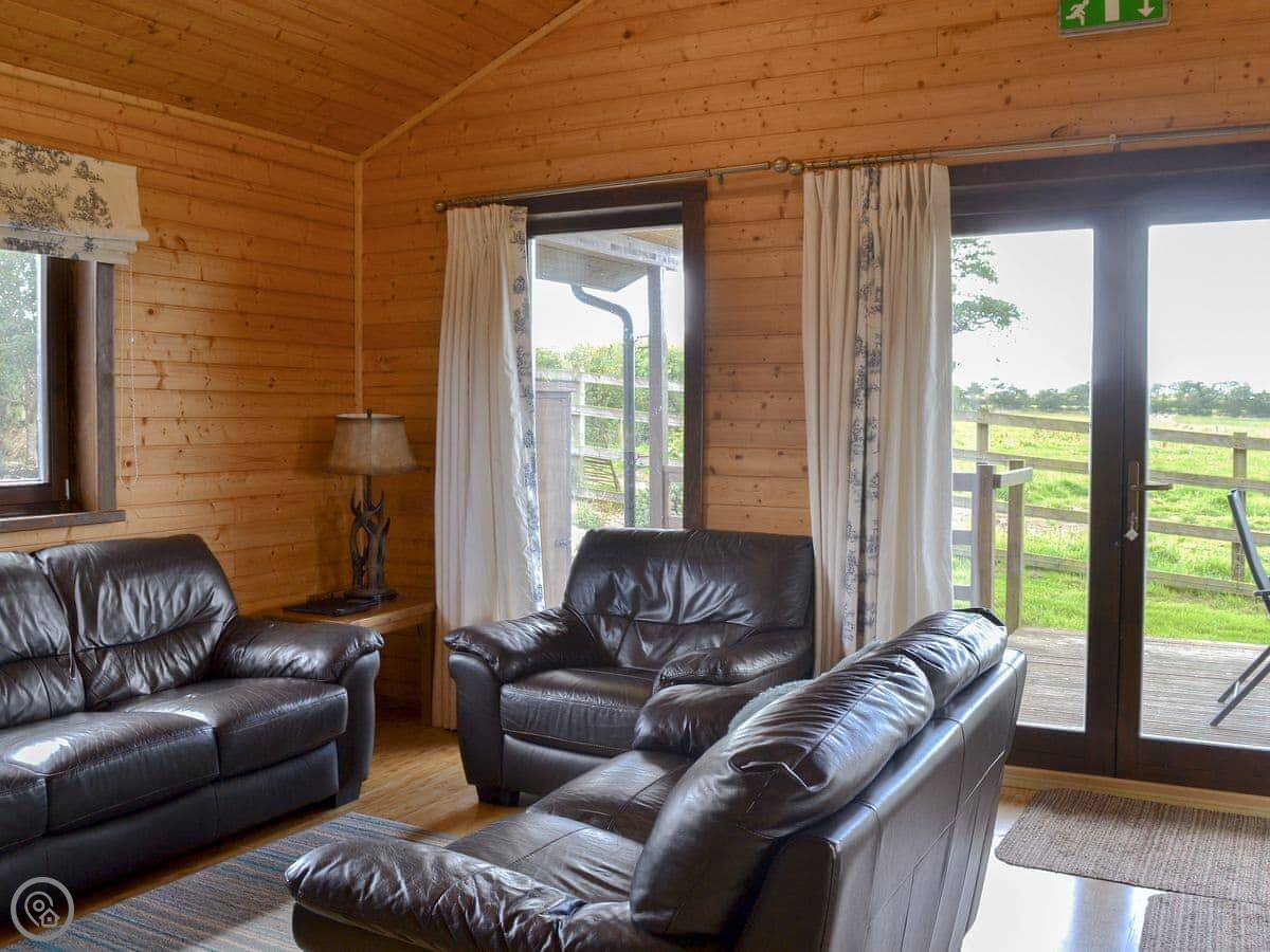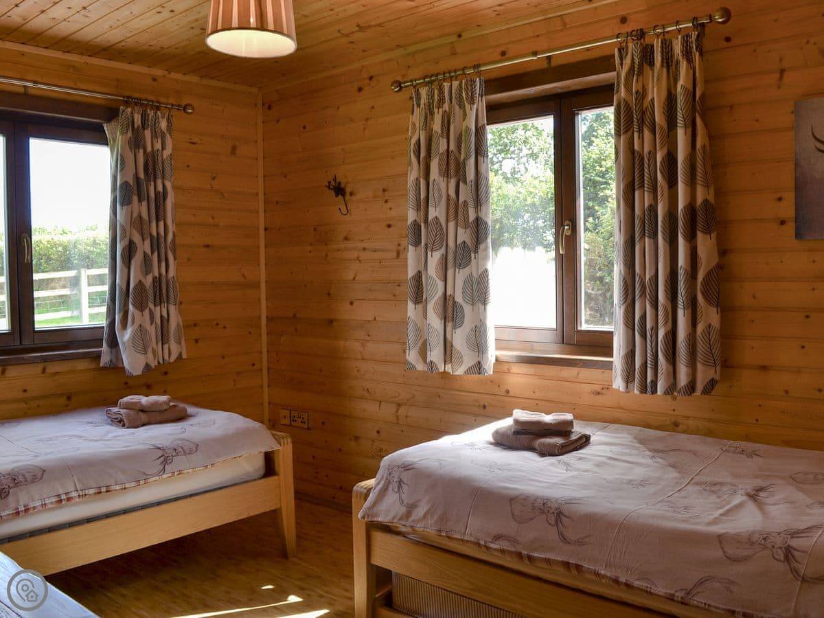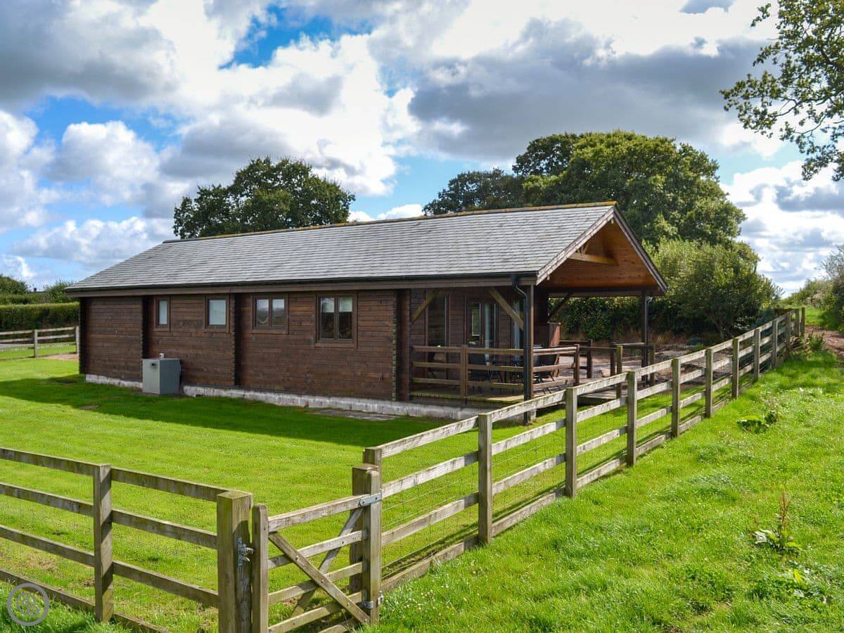 This is Dartmoor lodge. It's a log cabin here on West Middlewick Farm in Nomansland. There are a few other cabins and a bungalow on site. Dartmoor is one of three with an enclosed garden, which is good if you're bringing dogs.