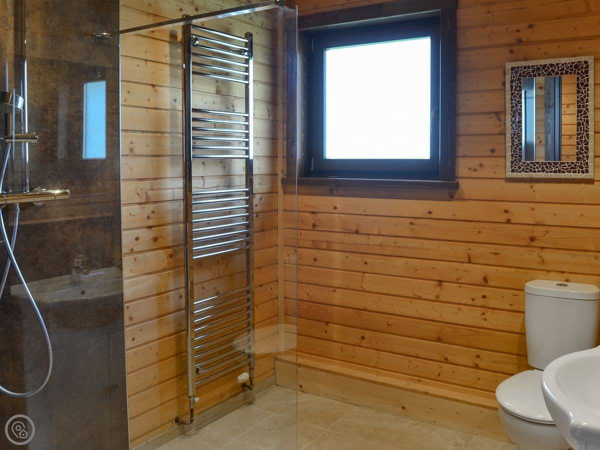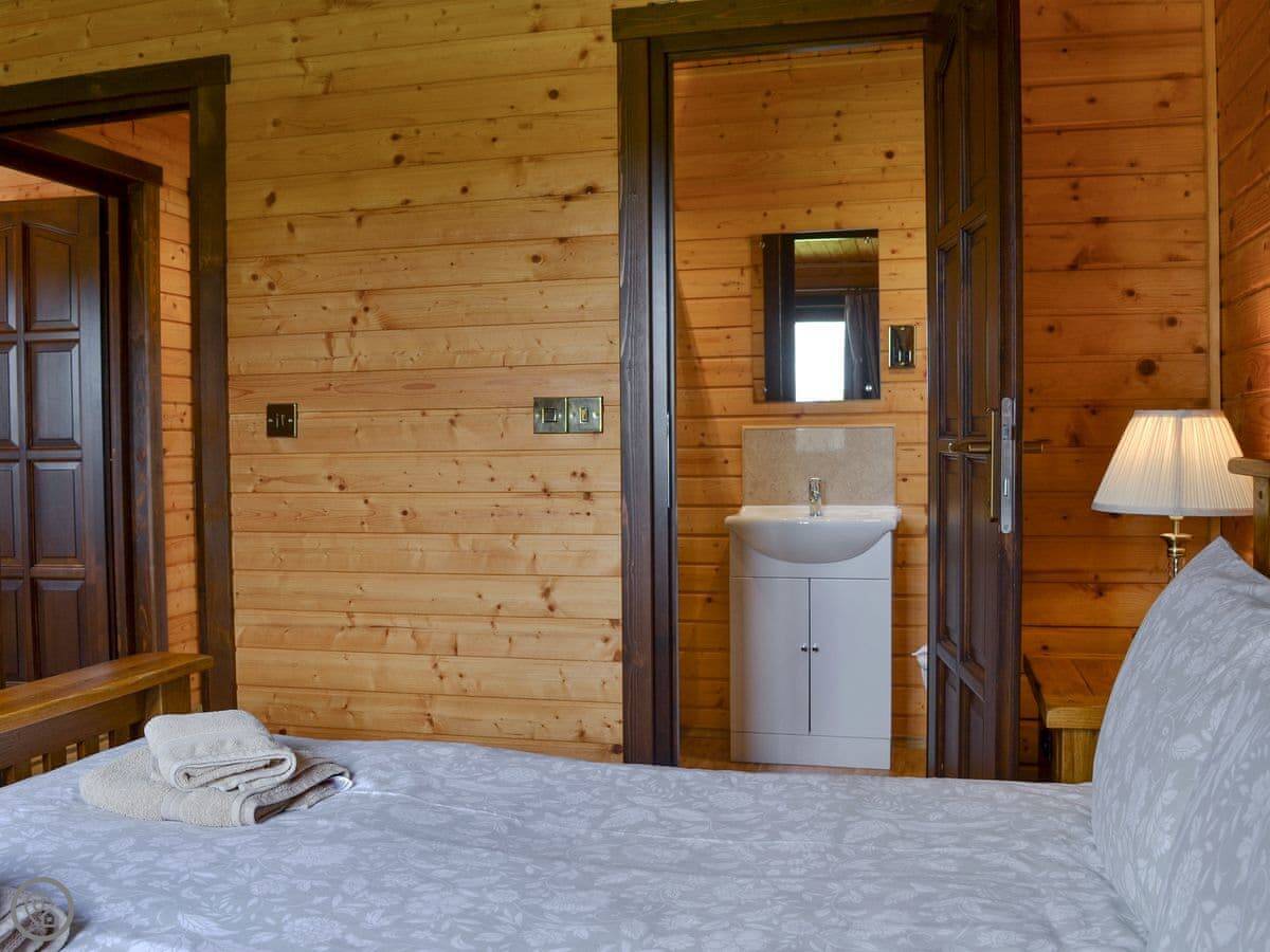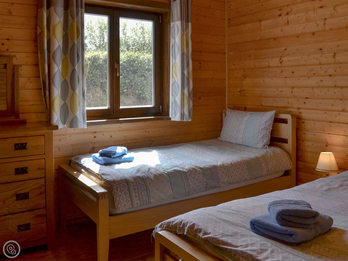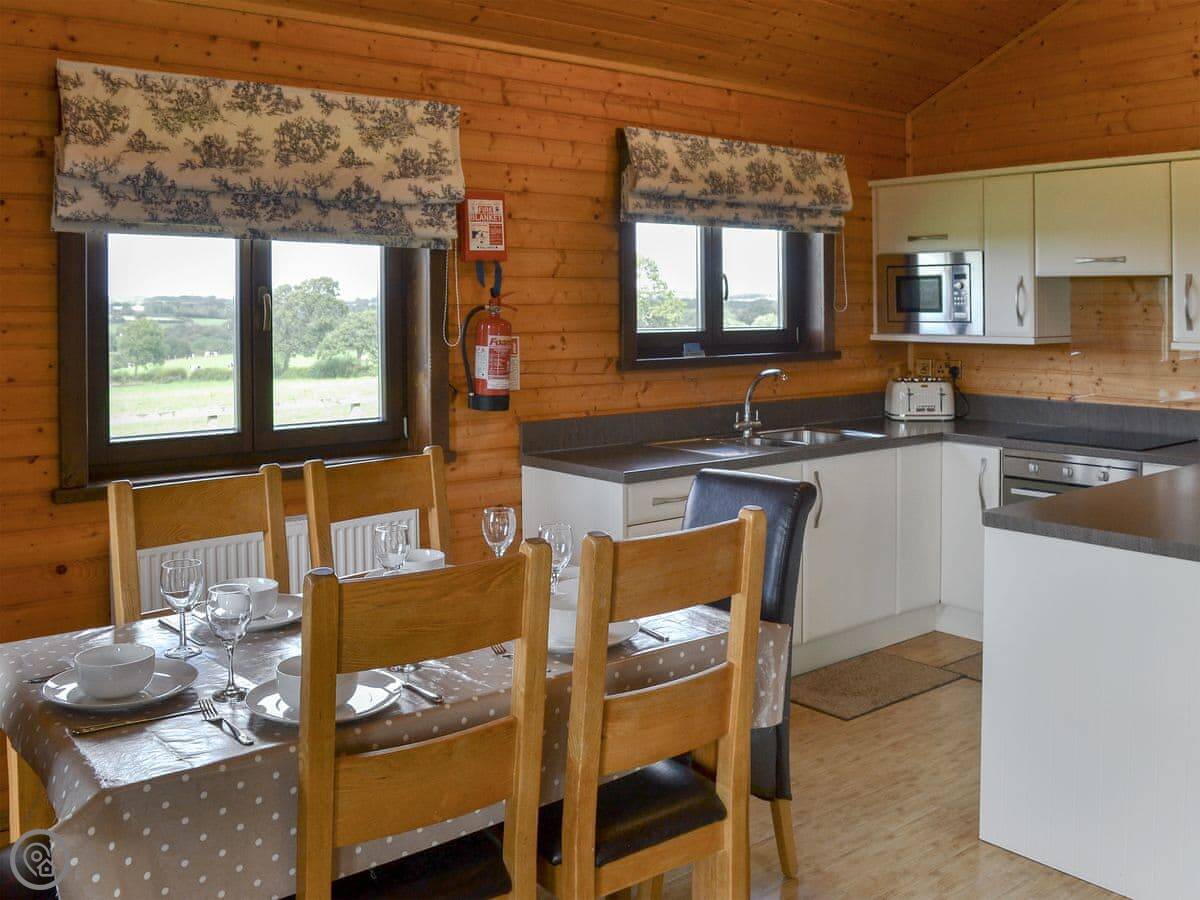 This is Dartmoor lodge. It's a log cabin here on West Middlewick Farm in Nomansland. There are a few other cabins and a bungalow on site. Dartmoor is one of three with an enclosed garden, which is good if you're bringing dogs.