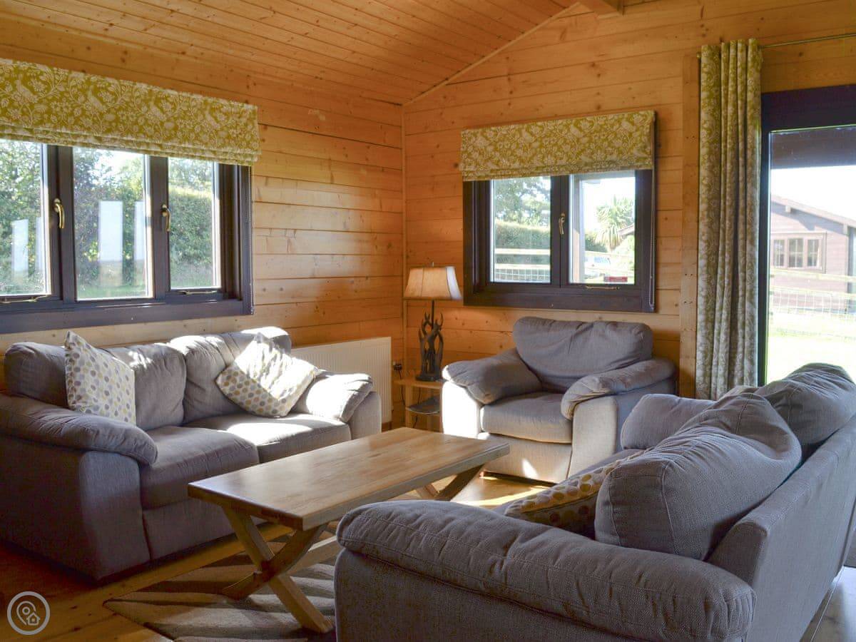 Dalch is one of our log cabins on West Middlewick Farm. It’s near Nomansland in Devon. You’re right in the countryside here, on high ground, so there are views out over the fields.