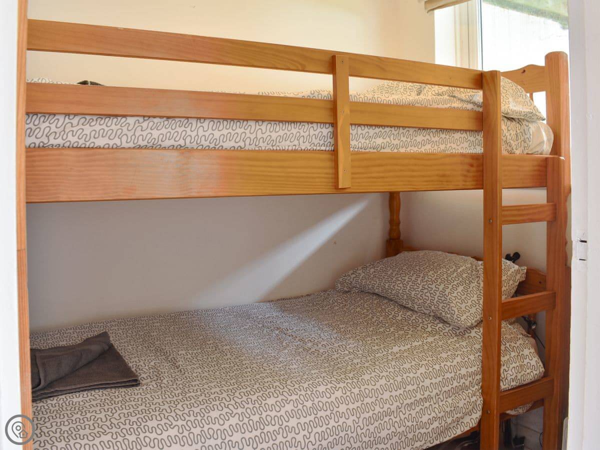 It sleeps four. Two bedrooms, one bathroom. It's a 3 Star place, so it's clean and comfortable, not luxurious. You can bring up to two dogs.