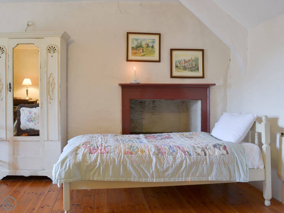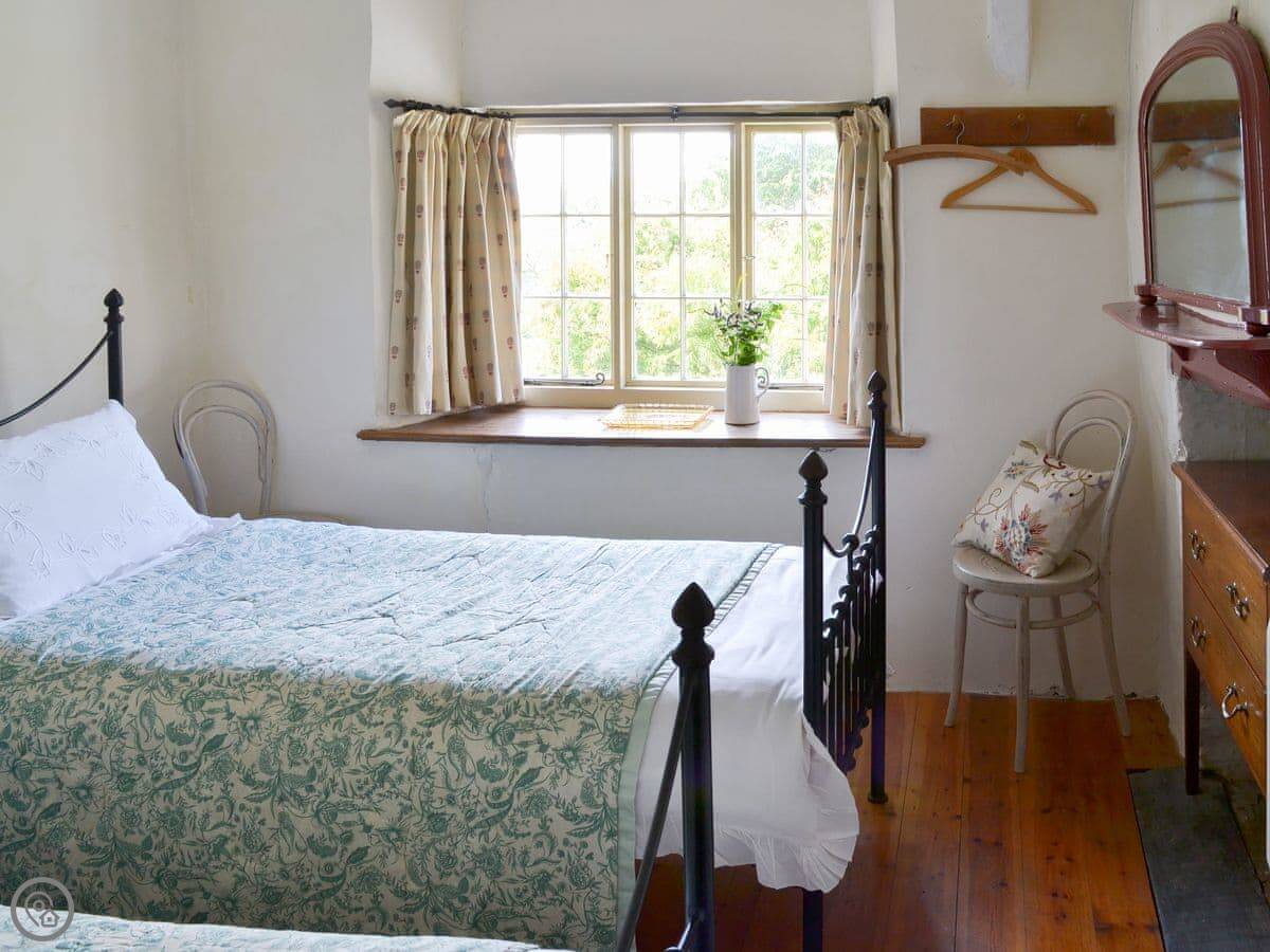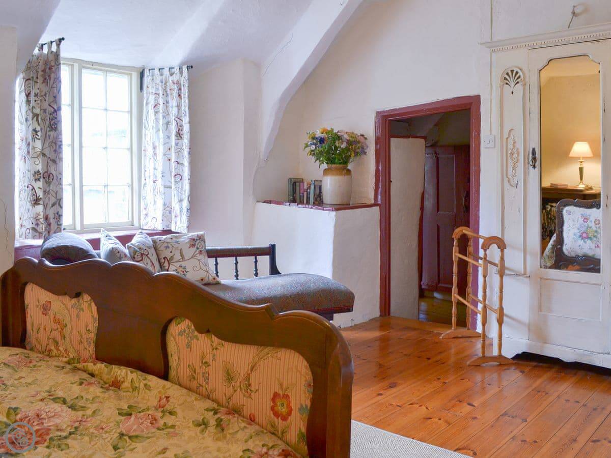 The Tudor Wing adjoins The Longhouse and is just as rich in history and character. It has granite mullion windows and a slate spiral turret staircase leading up to the first floor. The twin bedroom features a 15th-century ‘lavvy’, a state-of-the-art garderobe in its day, which is tucked behind a tiny door in the corner, but there is also a modern en-suite pod in the room. Many a medieval banquet with merrymaking has been partaken of here over the centuries.