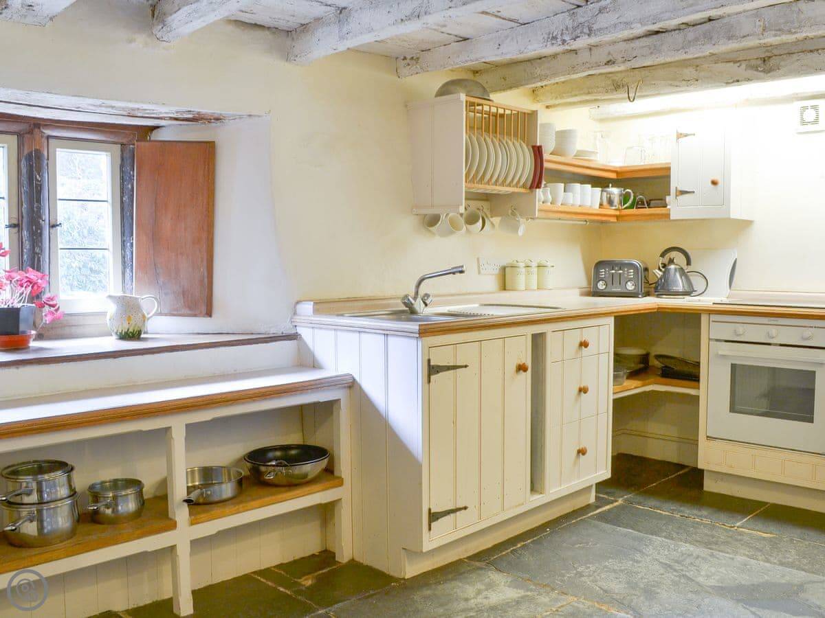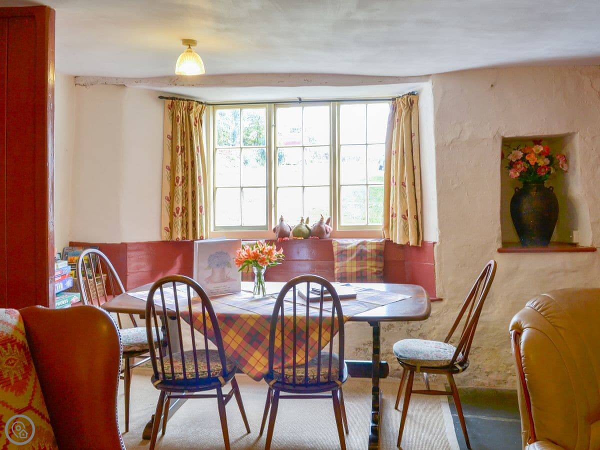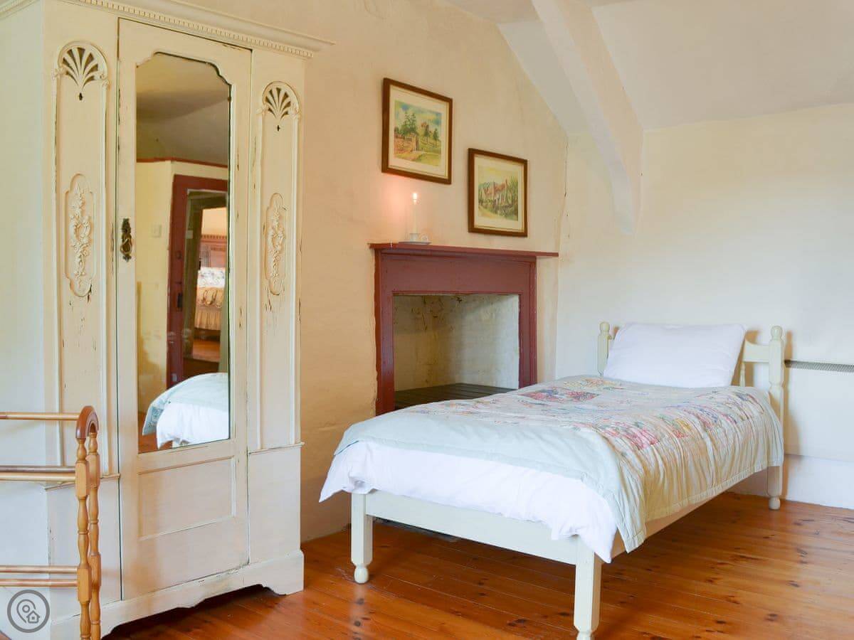 The Tudor Wing adjoins The Longhouse and is just as rich in history and character. It has granite mullion windows and a slate spiral turret staircase leading up to the first floor. The twin bedroom features a 15th-century ‘lavvy’, a state-of-the-art garderobe in its day, which is tucked behind a tiny door in the corner, but there is also a modern en-suite pod in the room. Many a medieval banquet with merrymaking has been partaken of here over the centuries.