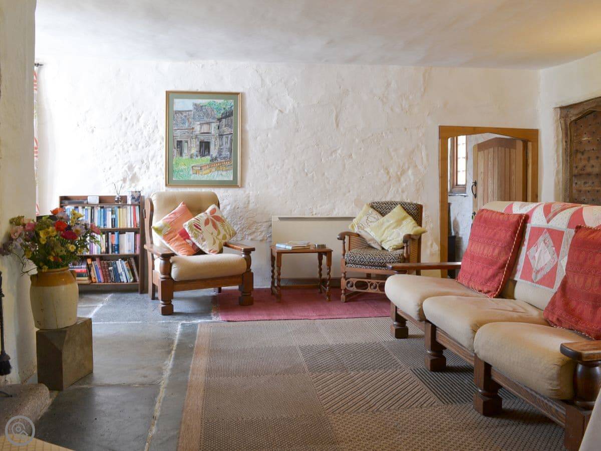 Cullacott Farm is a Grade I listed medieval hall house, truly one of the most extraordinary vernacular medieval properties in the whole of Cornwall. It is built of stone and cob with exposed walls, some showing remains of original wall murals dating back to the 1500s. The restoration of the property won the Royal Institute of Chartered Surveyors National Building Conservation Award in 1997. The Longhouse dates back to the 14th century whilst the Tudor Wing was updated in the 16th century. Some parts of the building have remained largely unaltered for 500 years. The main feature of The Longhouse is the Great Hall, on the roughly plastered wall are remains of a beautifully painted fictive tapestry depicting diagonal bands of writing within an ornate pattern. Above it in clear definition is the coat of arms of Henry VII/Henry VIII. On another wall is a figure thought to be St. James of Compostella. Two staircases lead to the first floor where one can view the remains of a painted mural of St. George on his horse fighting the dragon. From a viewing opening in the George and the Dragon room one can look into the Great Hall.