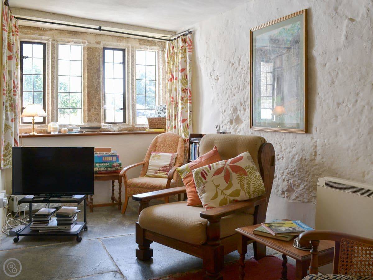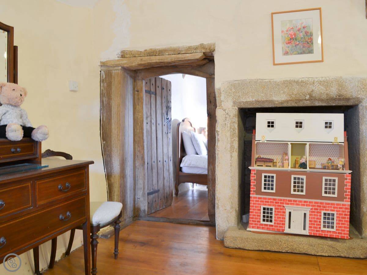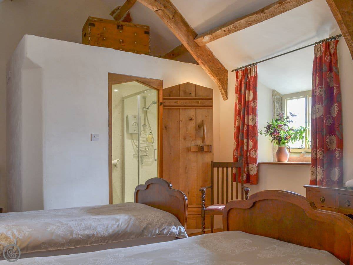 The Tudor Wing adjoins The Longhouse and is just as rich in history and character. It has granite mullion windows and a slate spiral turret staircase leading up to the first floor. The twin bedroom features a 15th-century ‘lavvy’, a state-of-the-art garderobe in its day, which is tucked behind a tiny door in the corner, but there is also a modern en-suite pod in the room. Many a medieval banquet with merrymaking has been partaken of here over the centuries.