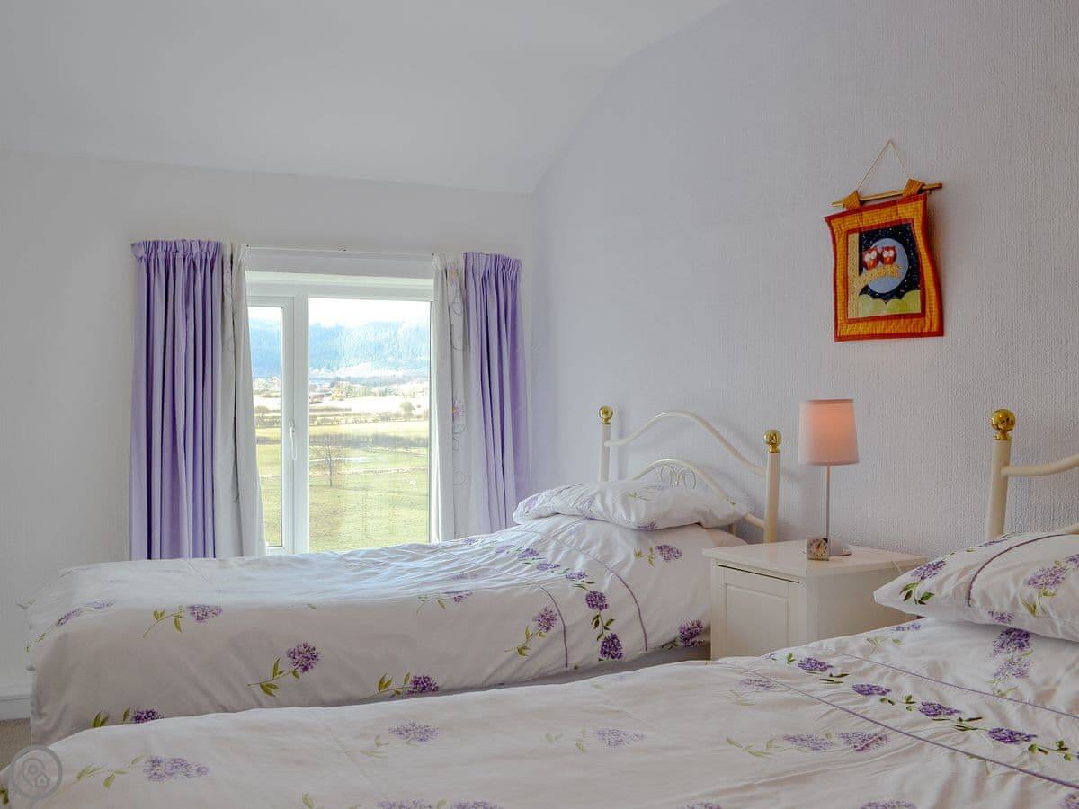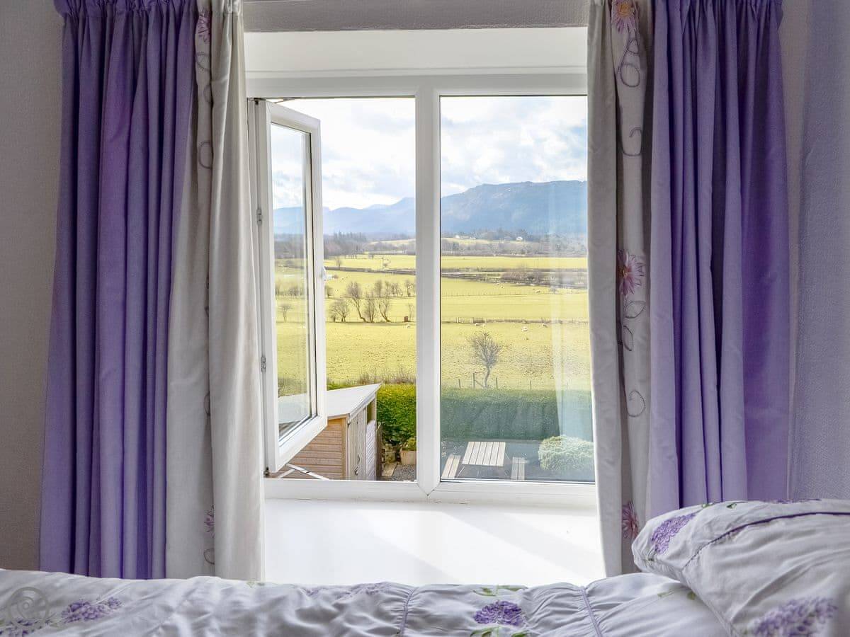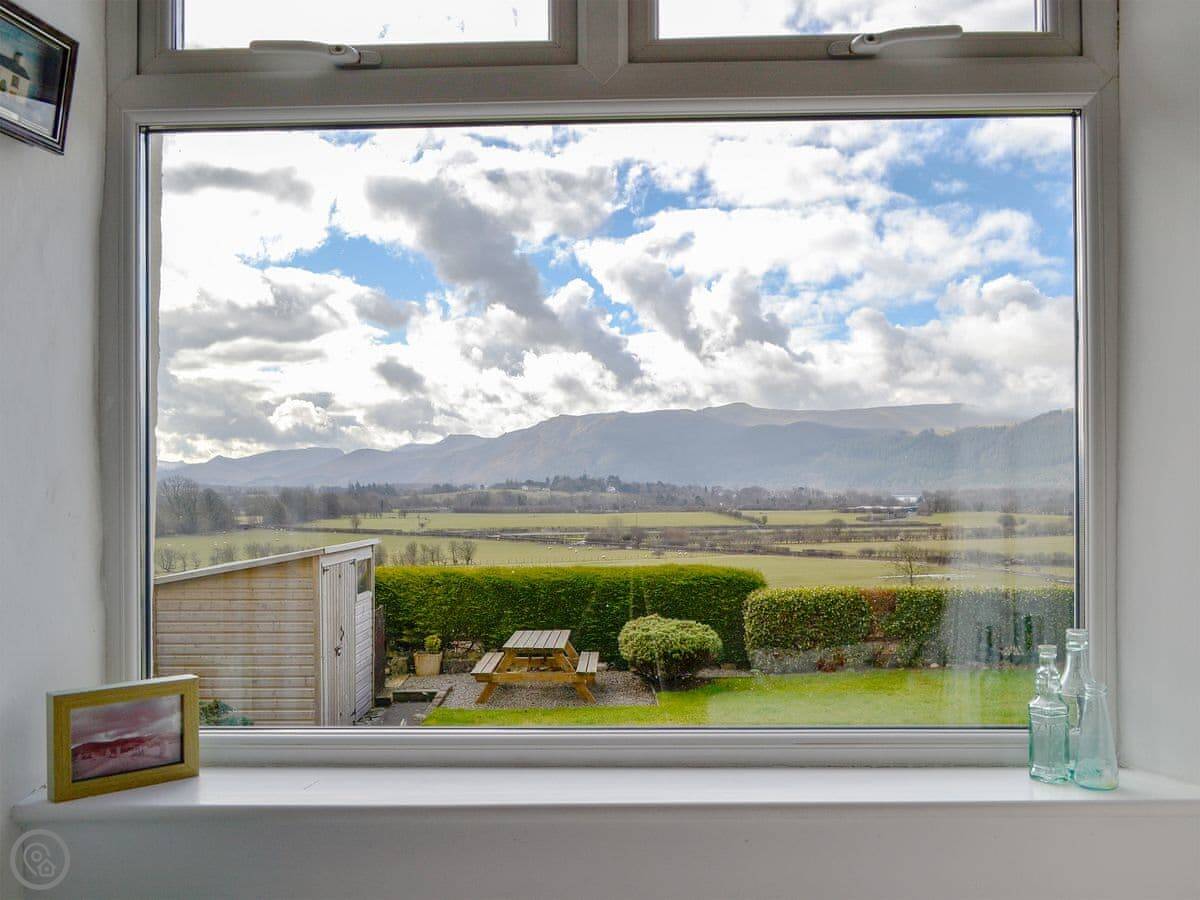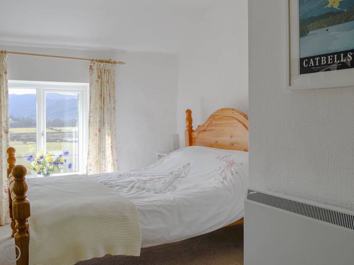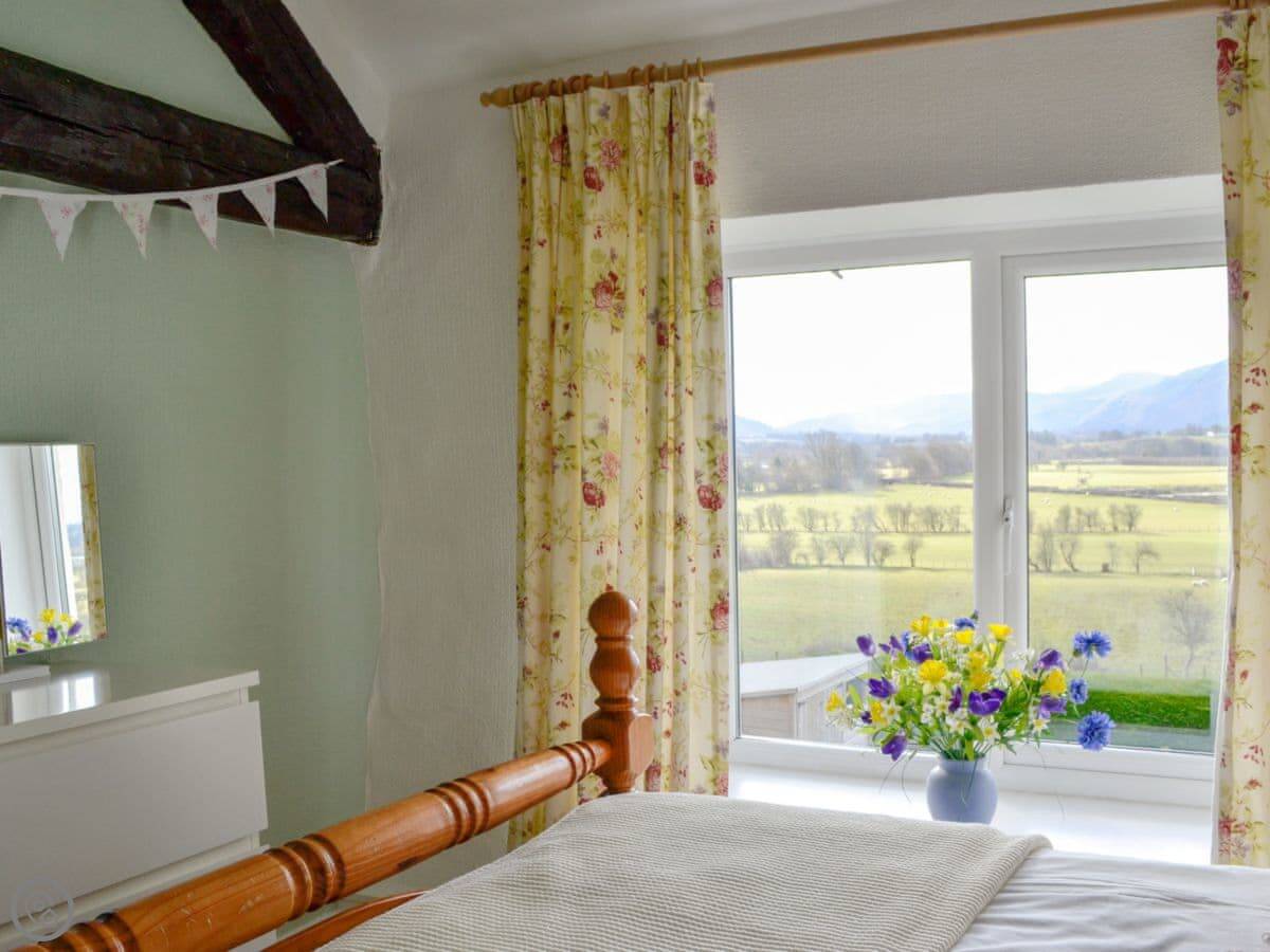 Upstairs are the two bedrooms. The thing about them is the view. You look out over the back garden and the fields, straight across to Bassenthwaite Lake and the fells. You can see Skiddaw. It's a proper Lake District view. The stairs are the original cottage stairs, so they're a bit steep and narrow.