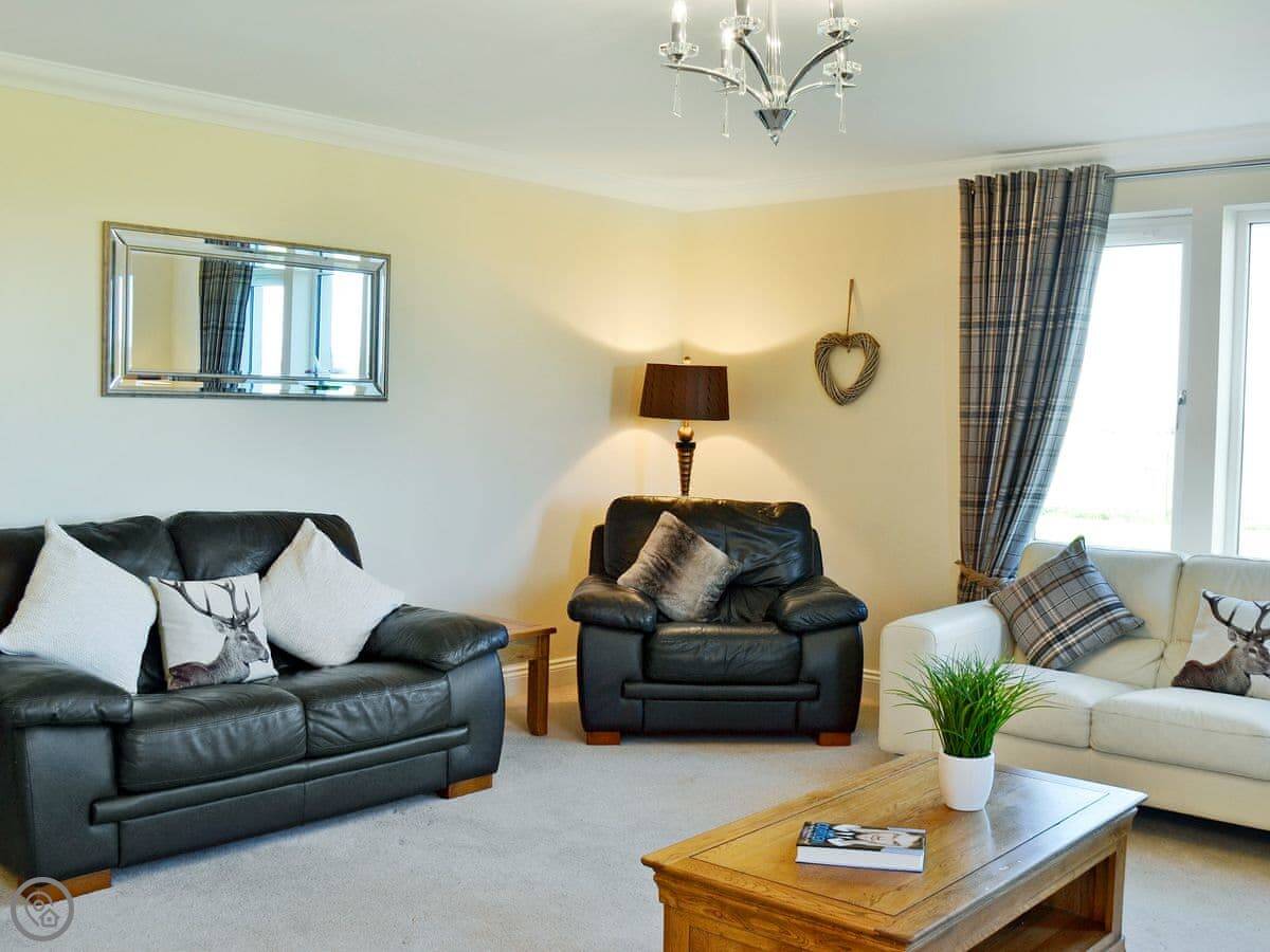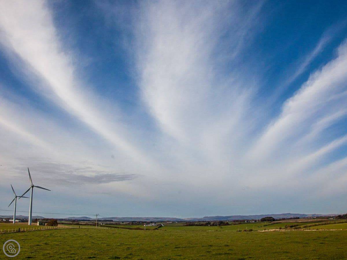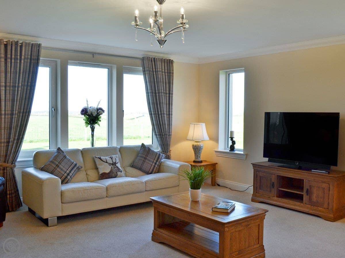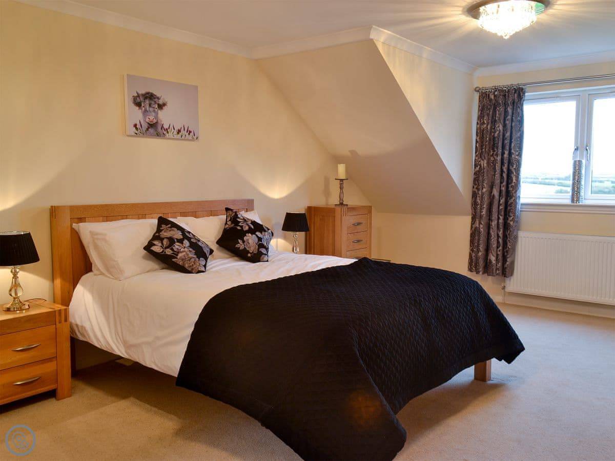 This spacious modern detached house is located on a working sheep farm down a quiet country lane with stunning views over open countryside to the Island of Arran. The small village of Kilmaurs is a short walk and has shops and a restaurant.