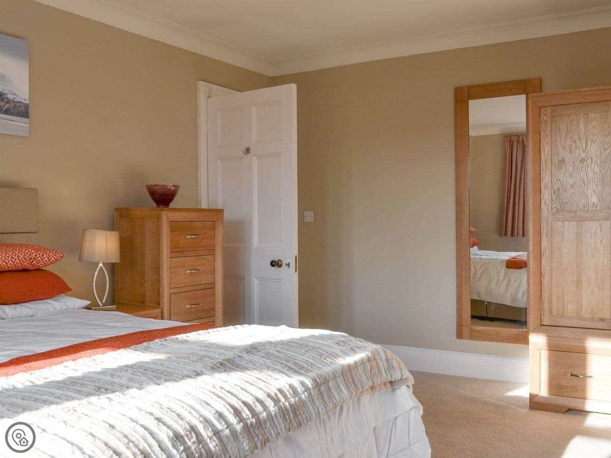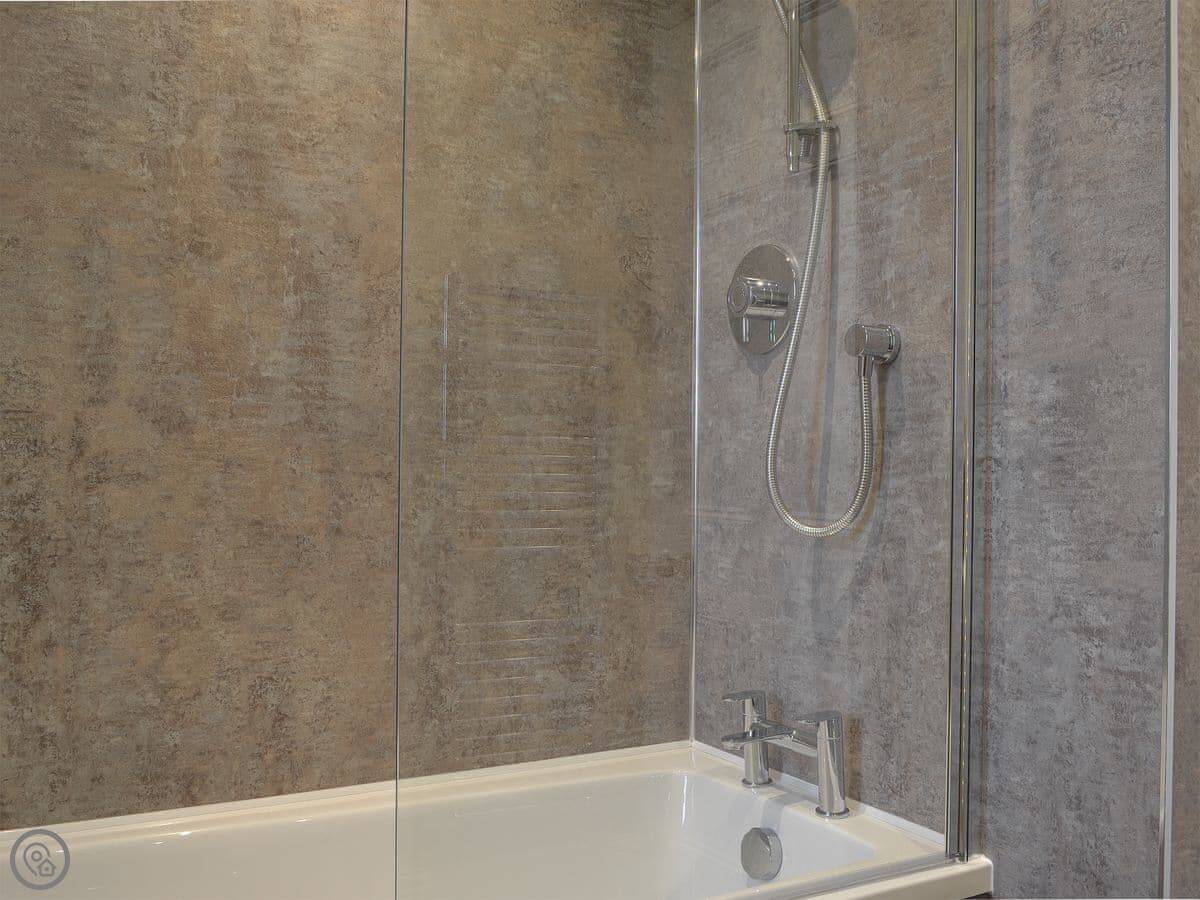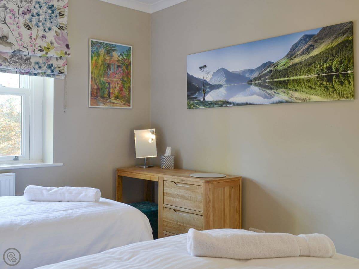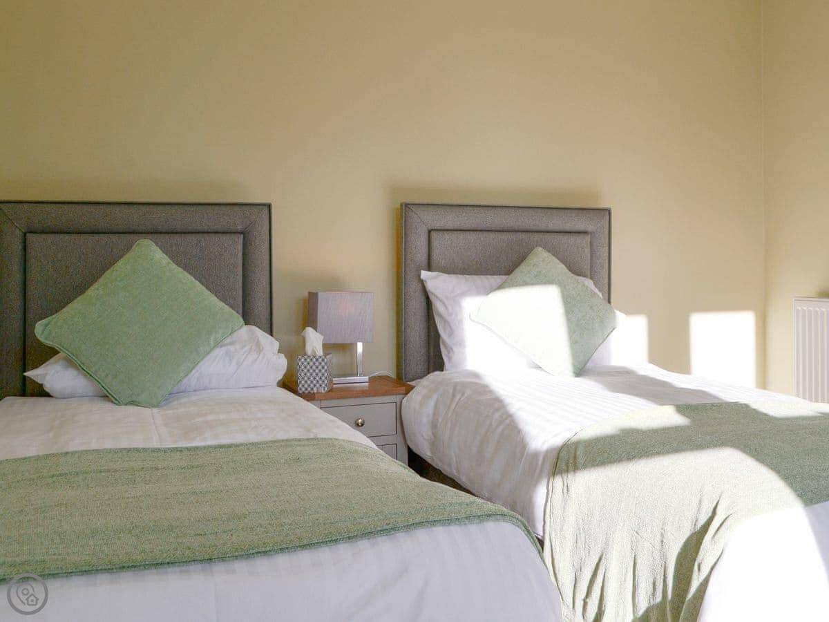 It sleeps eight, in four bedrooms. Three are upstairs and one is a twin room on the ground floor. There are three bathrooms in total, one of which is a wet room on the ground floor. That makes it quite practical. It has a 4 Star rating.