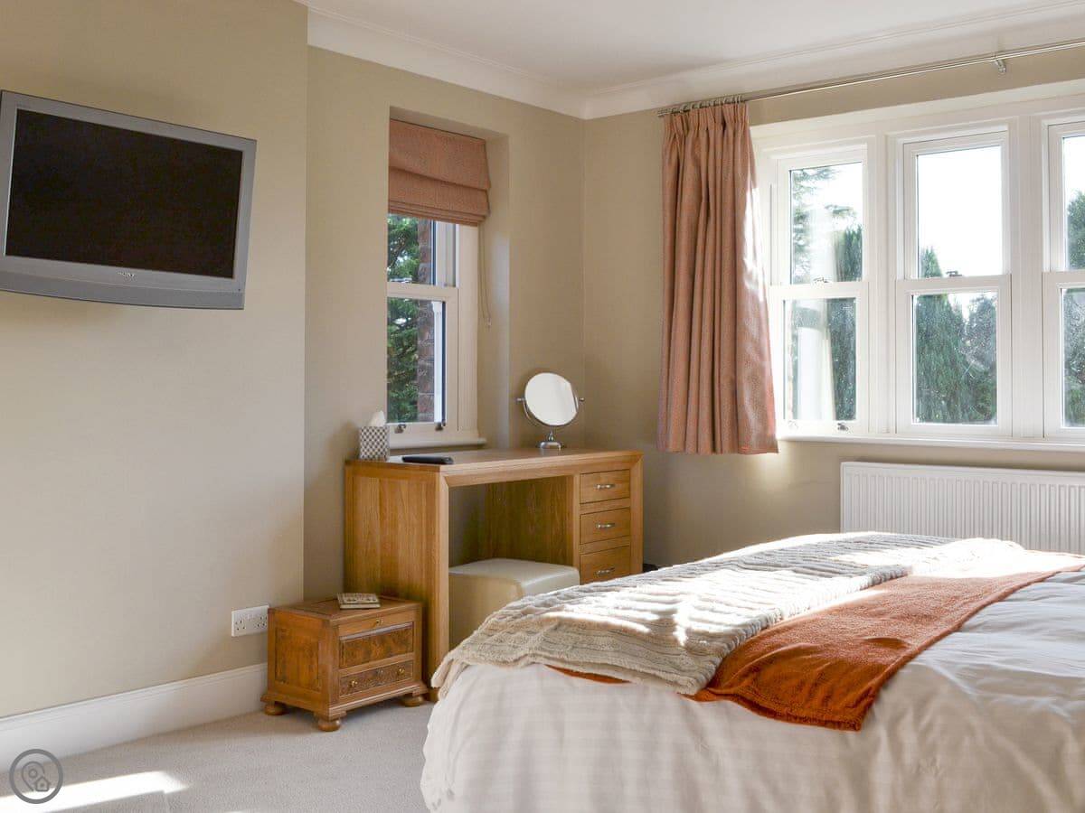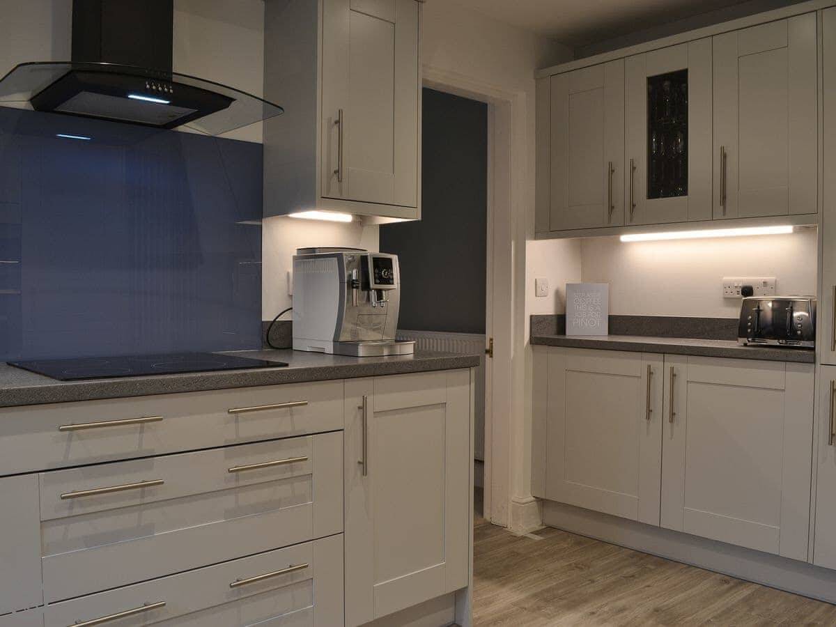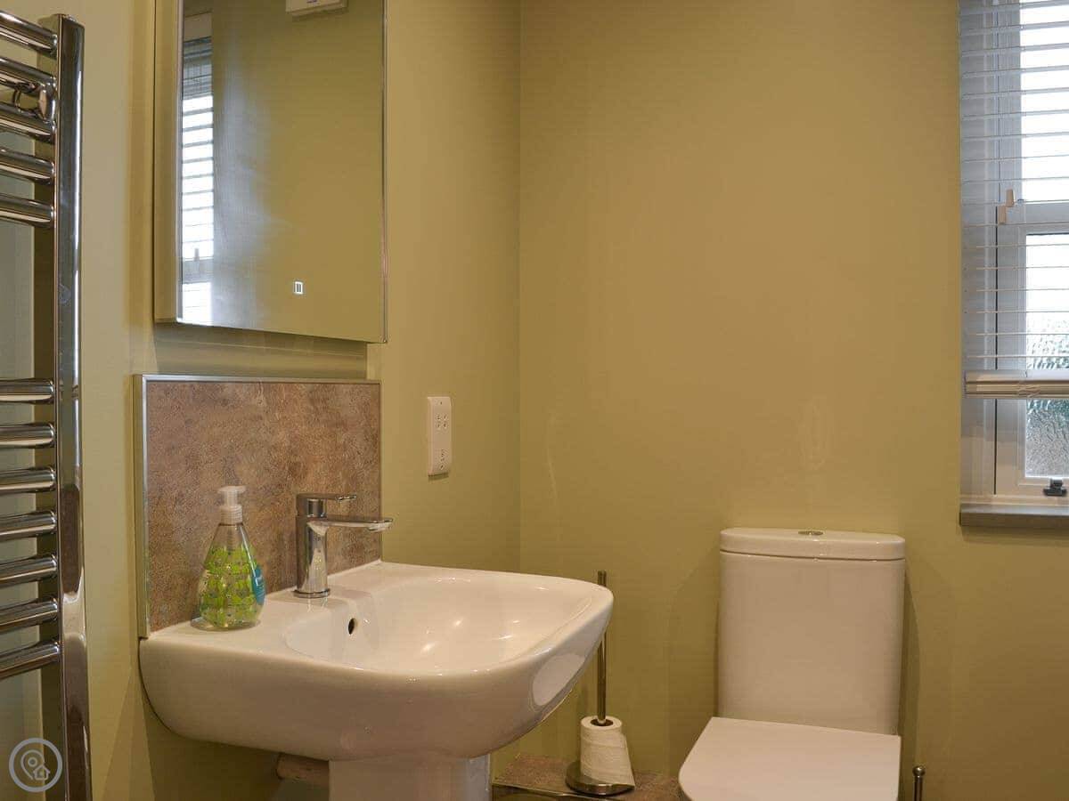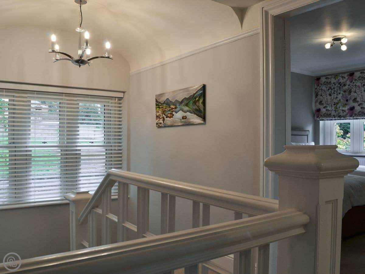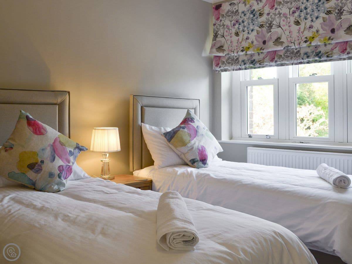 It sleeps eight, in four bedrooms. Three are upstairs and one is a twin room on the ground floor. There are three bathrooms in total, one of which is a wet room on the ground floor. That makes it quite practical. It has a 4 Star rating.