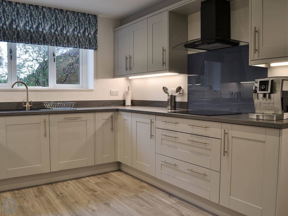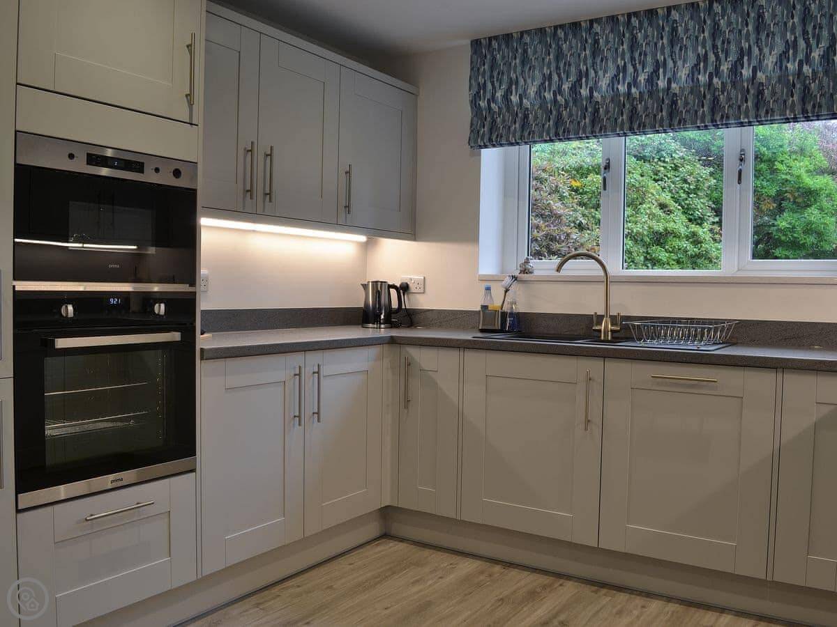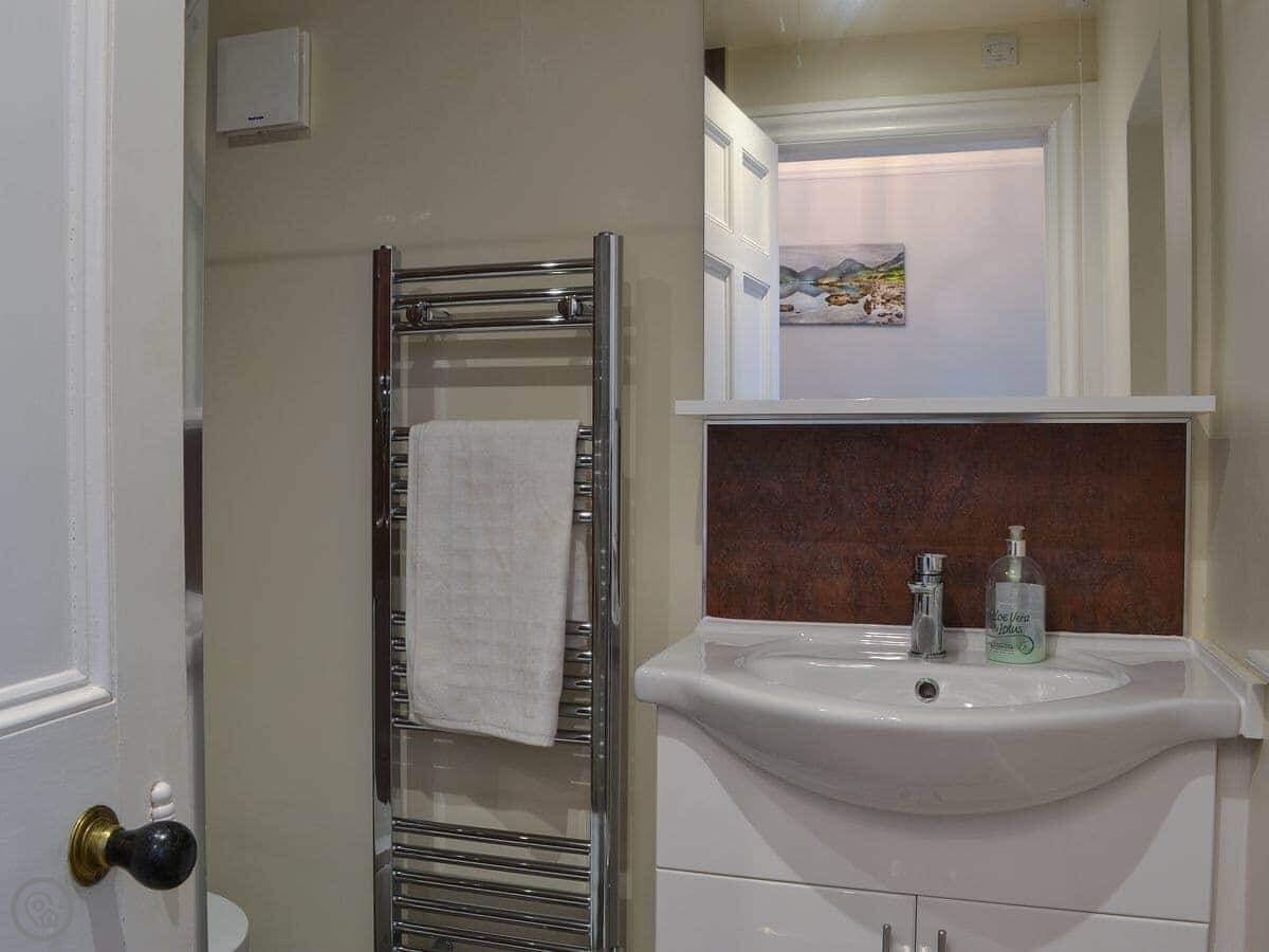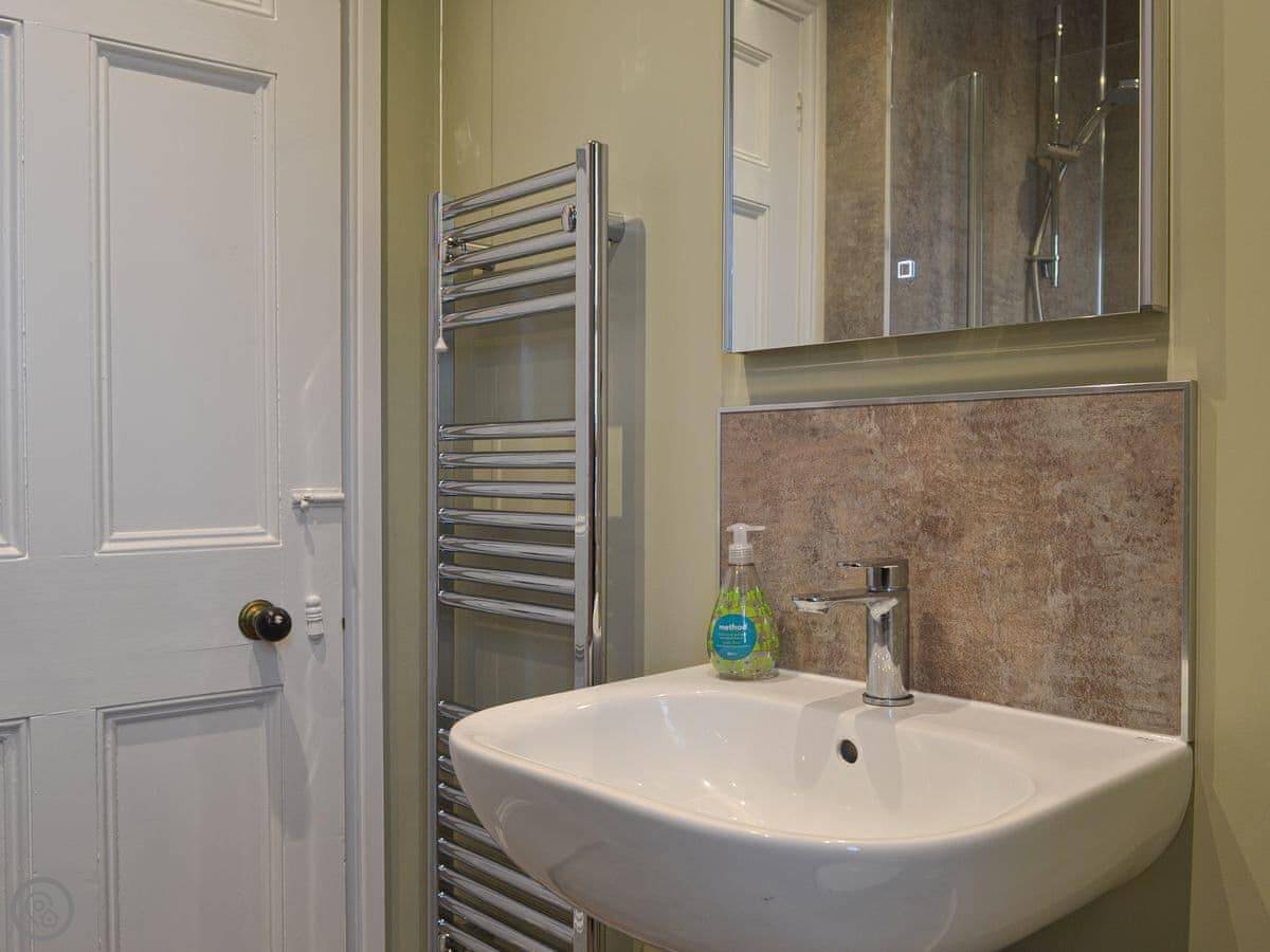 It sleeps eight, in four bedrooms. Three are upstairs and one is a twin room on the ground floor. There are three bathrooms in total, one of which is a wet room on the ground floor. That makes it quite practical. It has a 4 Star rating.