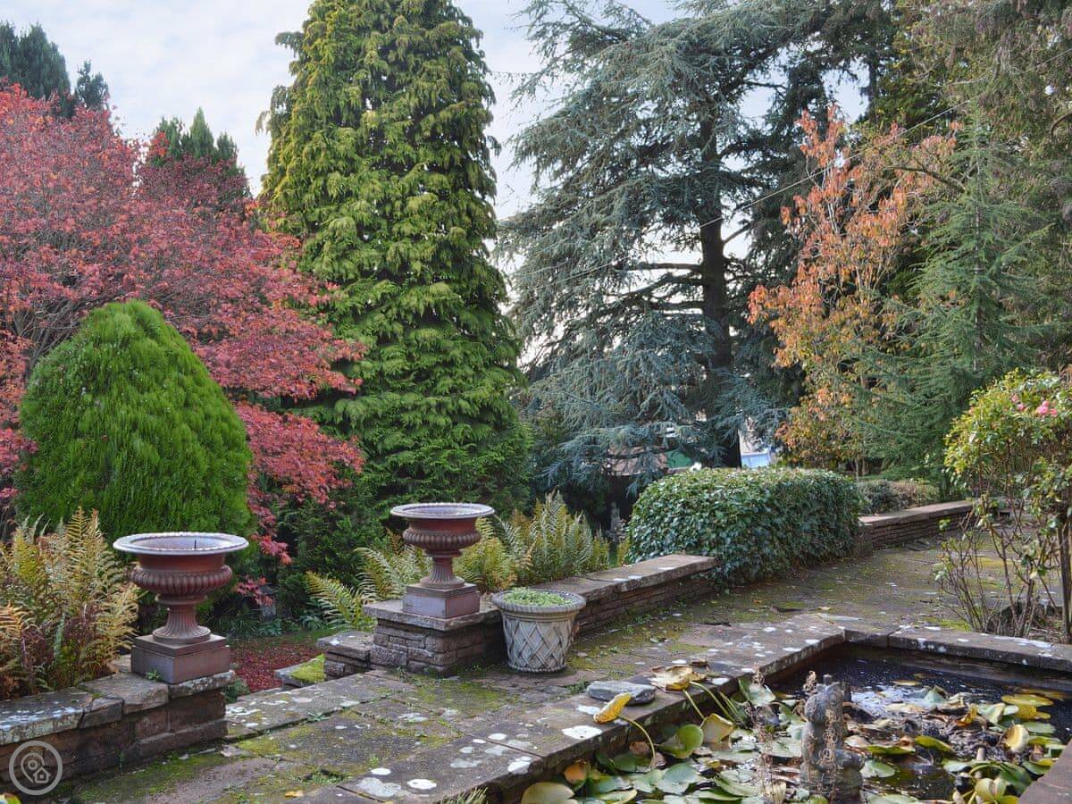 The garden wraps around the house. It's got a patio, some plants, and a couple of small ponds. There are views to the fells from there. You can park on the driveway.