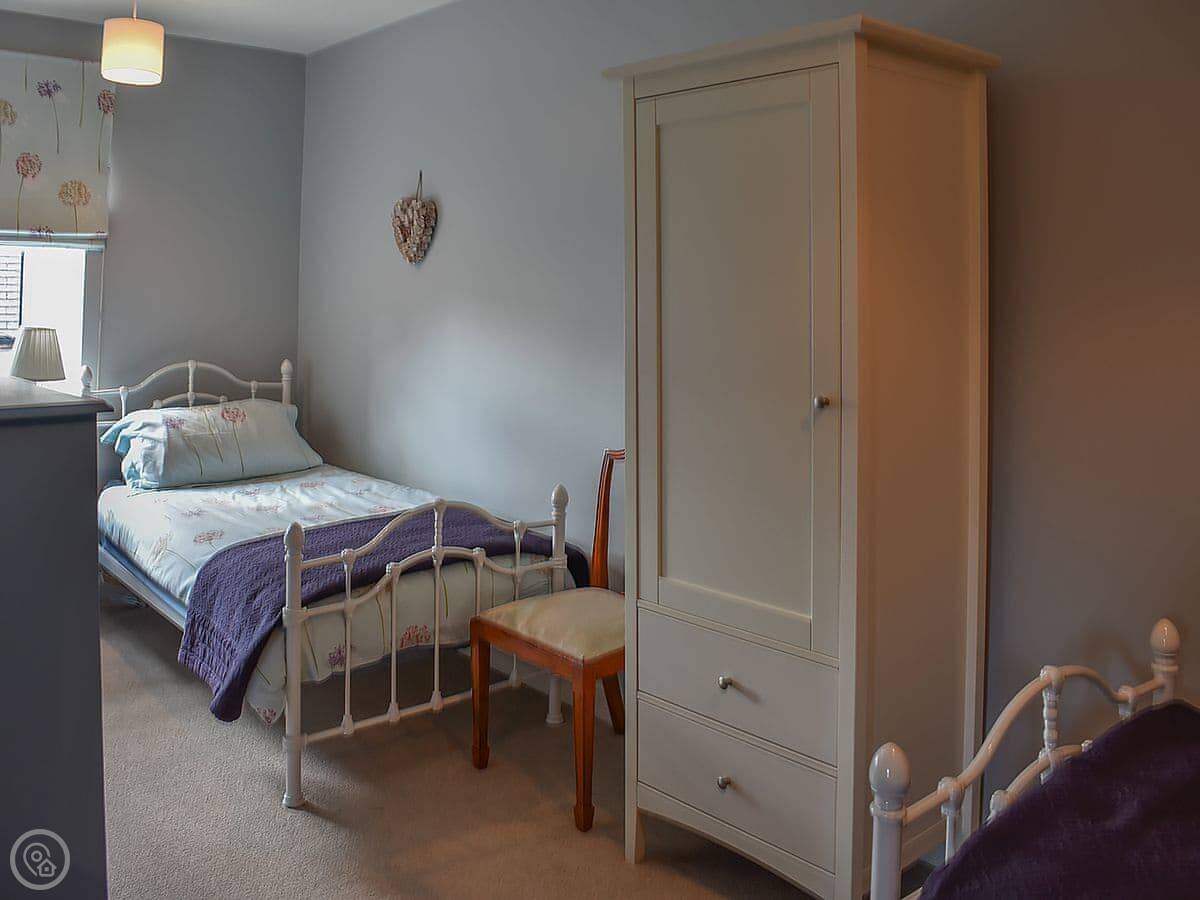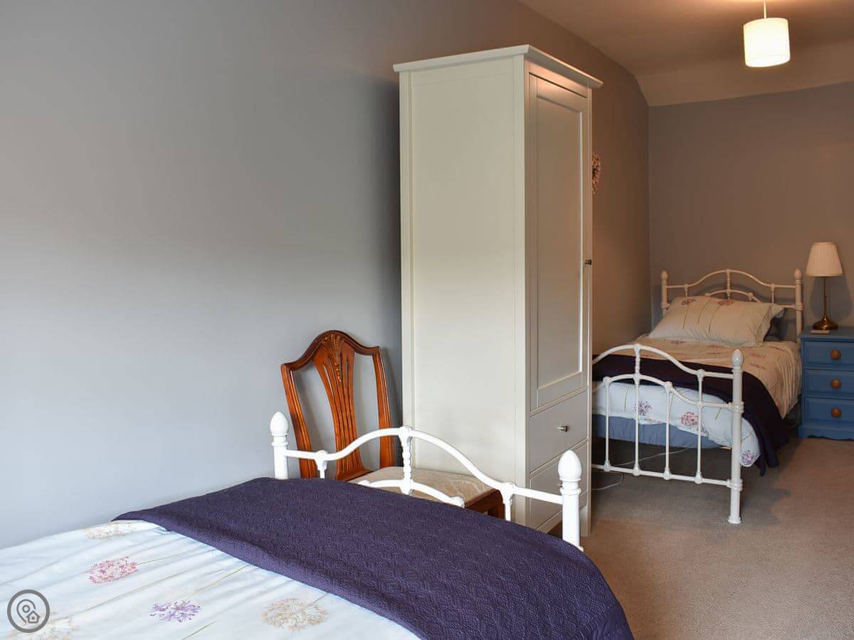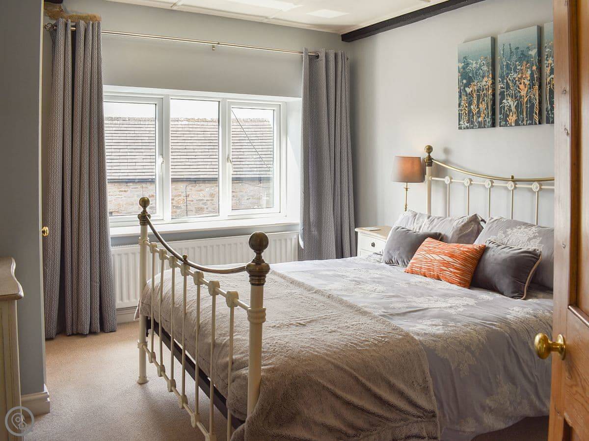 It sleeps four, in two bedrooms upstairs. Both have a good view out over the fields towards Addleborough hill. There are two bathrooms, which is handy. It's a 4 Star place, so it's well kept and comfortable. They've done it up nicely.