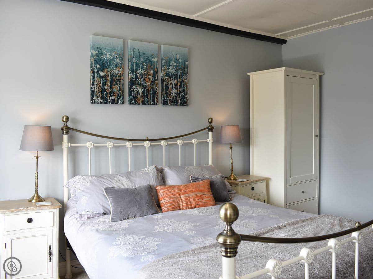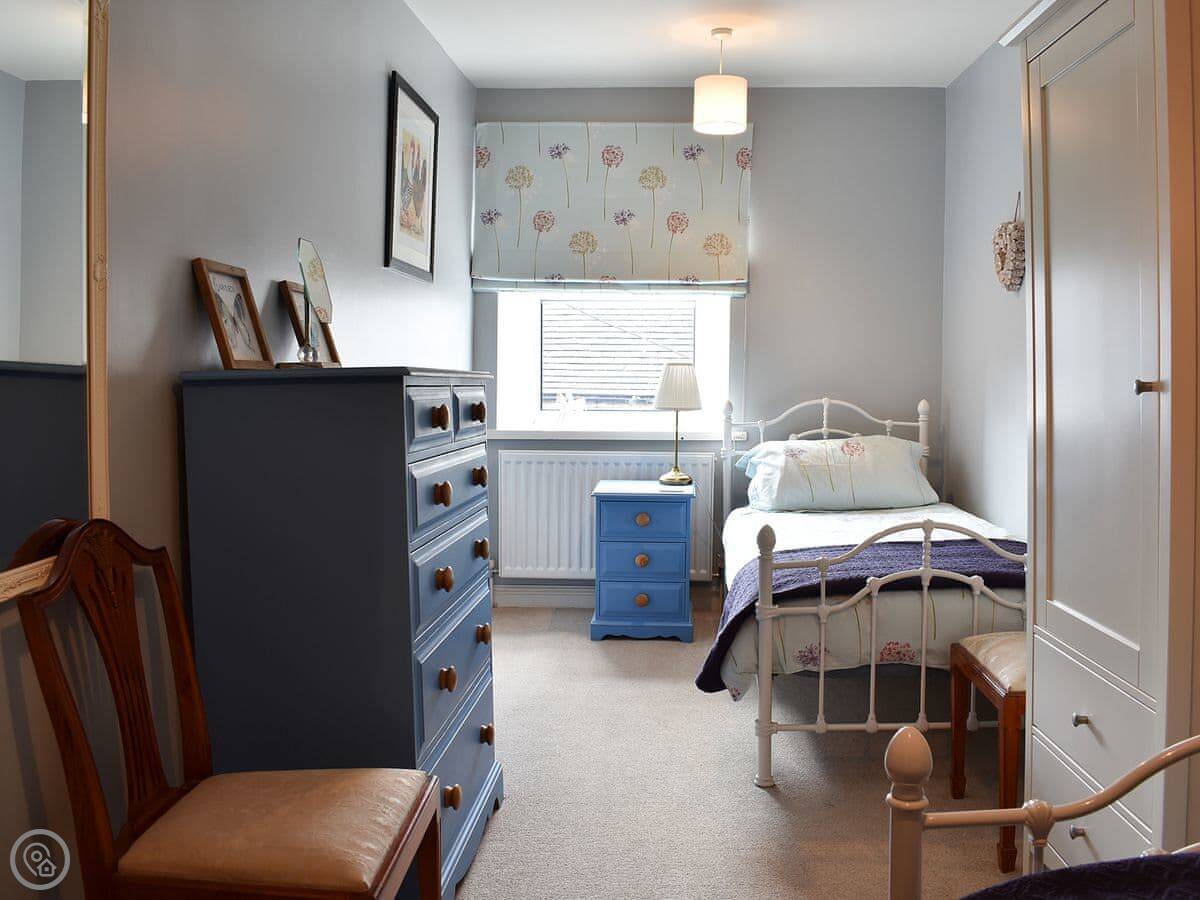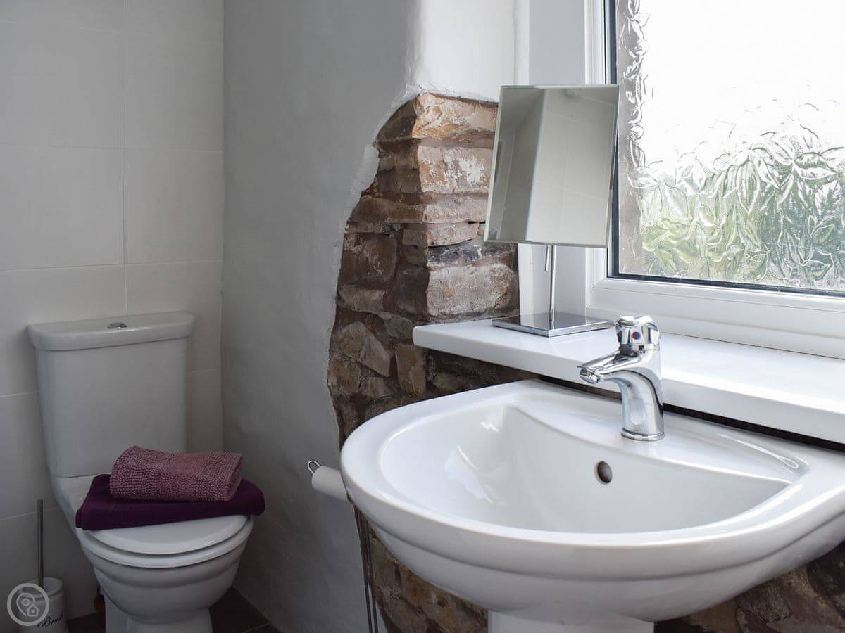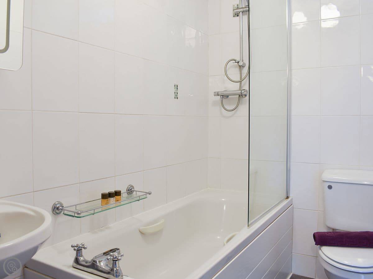 It sleeps four, in two bedrooms upstairs. Both have a good view out over the fields towards Addleborough hill. There are two bathrooms, which is handy. It's a 4 Star place, so it's well kept and comfortable. They've done it up nicely.