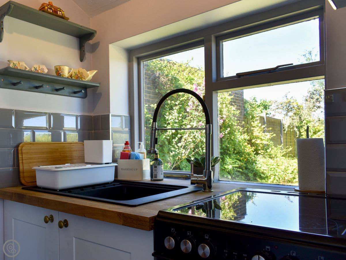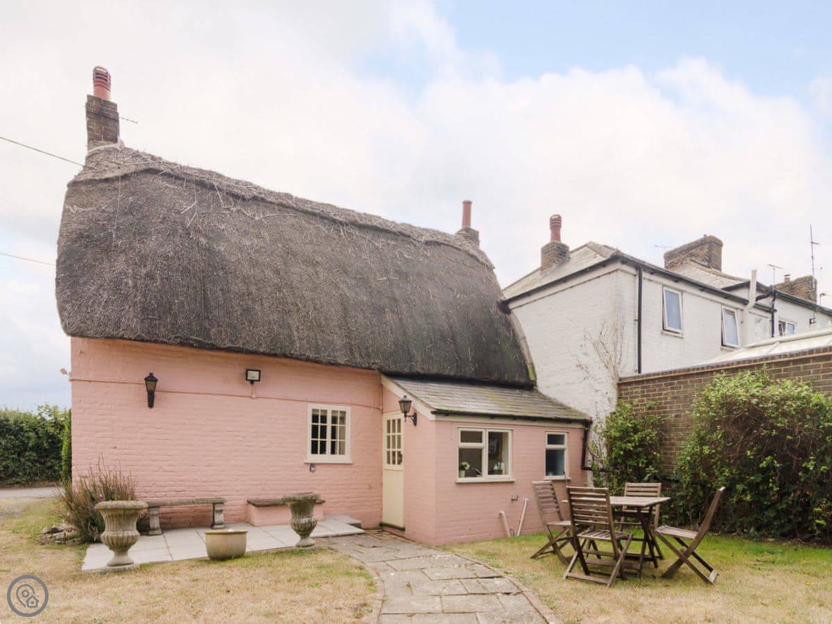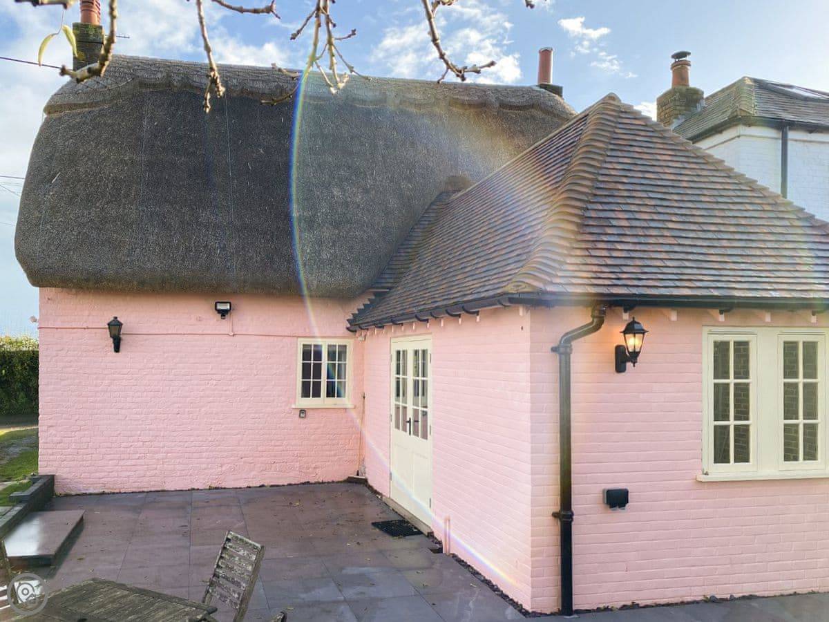 A charming pink thatched and beamed cottage dating from 1564 completely refurbished with a contemporary twist in Spring 2019, and in 2021 a large, new rear extension was completed, with a vaulted and beamed ceiling under a Kent peg tiled roof, and French doors leading onto a large patio. The extension has a state of the art kitchen and two shower rooms. Just a short drive from the historic seaside town of Deal with castle, beach, pier and an award-winning High Street. Also nearby are the magnificent Dover Castle and the cathedral city of Canterbury…or why not take a day trip to France? Alternatively enjoy superb easy walking around the area’s famous White Cliffs country taking in some of the county’s best pubs or simply relax in the large, lawned garden which overlooks rolling fields to the distant sea. A great all-year destination. Beach 3½ miles. Shops 2 miles, pub 100 yards.
