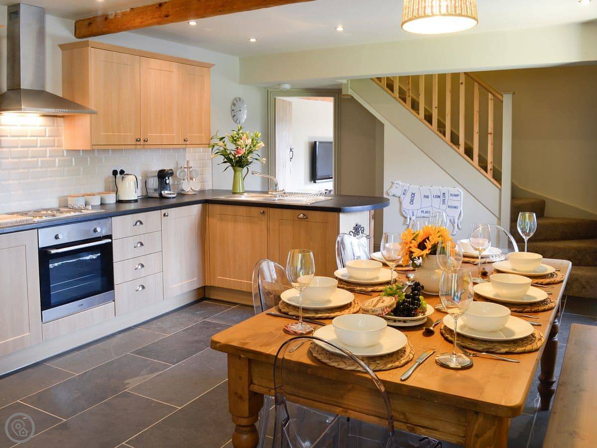 This semi-detached property is beautiful inside and out. The spacious farmhouse style kitchen with a large dining table is the perfect place to enjoy a meal with family or friends. The charming living room with a feature fireplace and cosy wood burner is perfect for relaxing, and with a second living room, there is ample space for everyone to enjoy. Upstairs there are two large double bedrooms with sumptuous beds and en-suite shower rooms, high ceilings and wooden beams. Two further bedrooms and a family bathroom complete the accommodation. Outside is just as spectacular. You can enjoy al fresco dining or relax in the hot tub whilst taking in the stunning views.