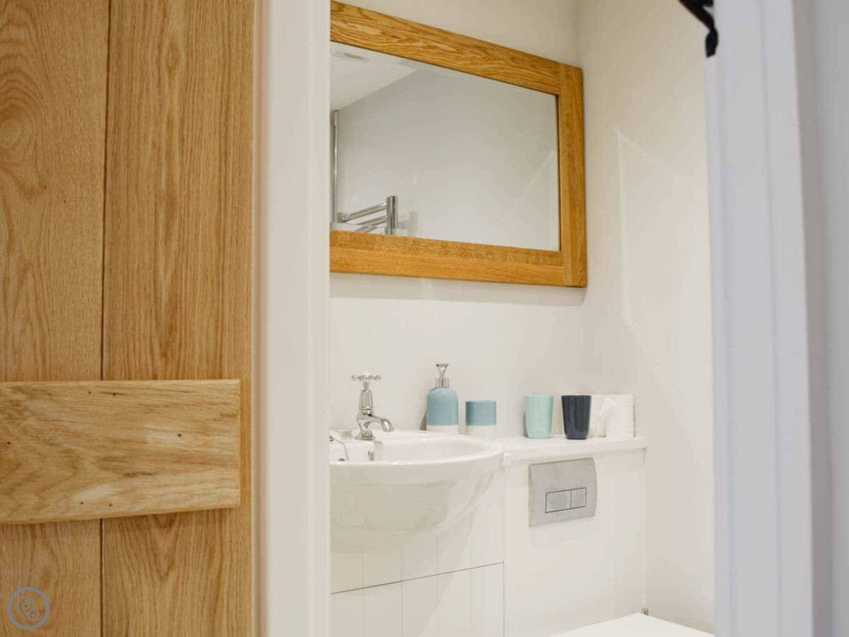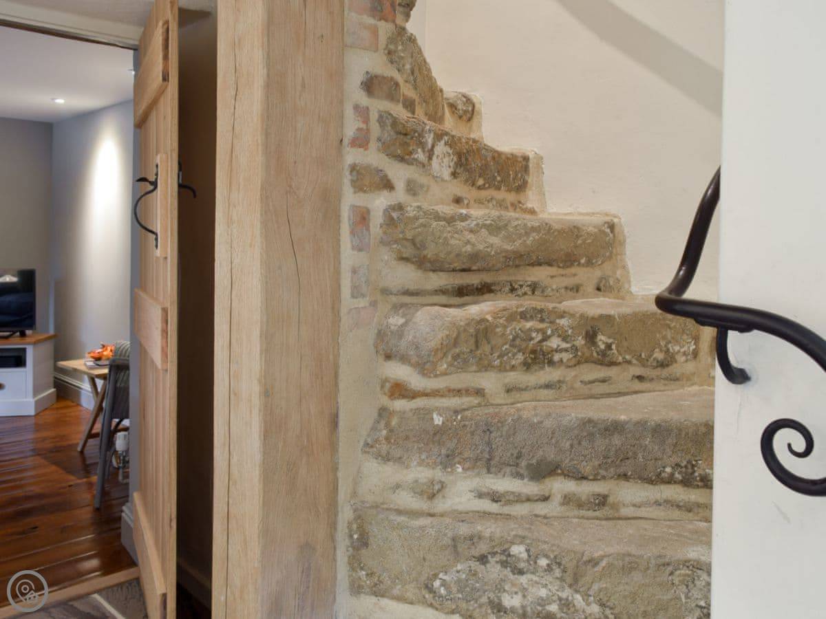 It sleeps four. Two bedrooms, and two bathrooms which is handy. The stairs are original and stone, so they're steep. You need to watch your step.