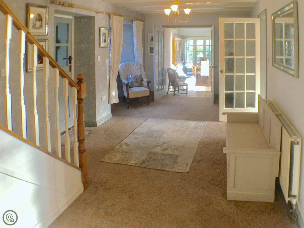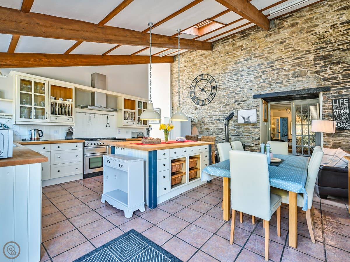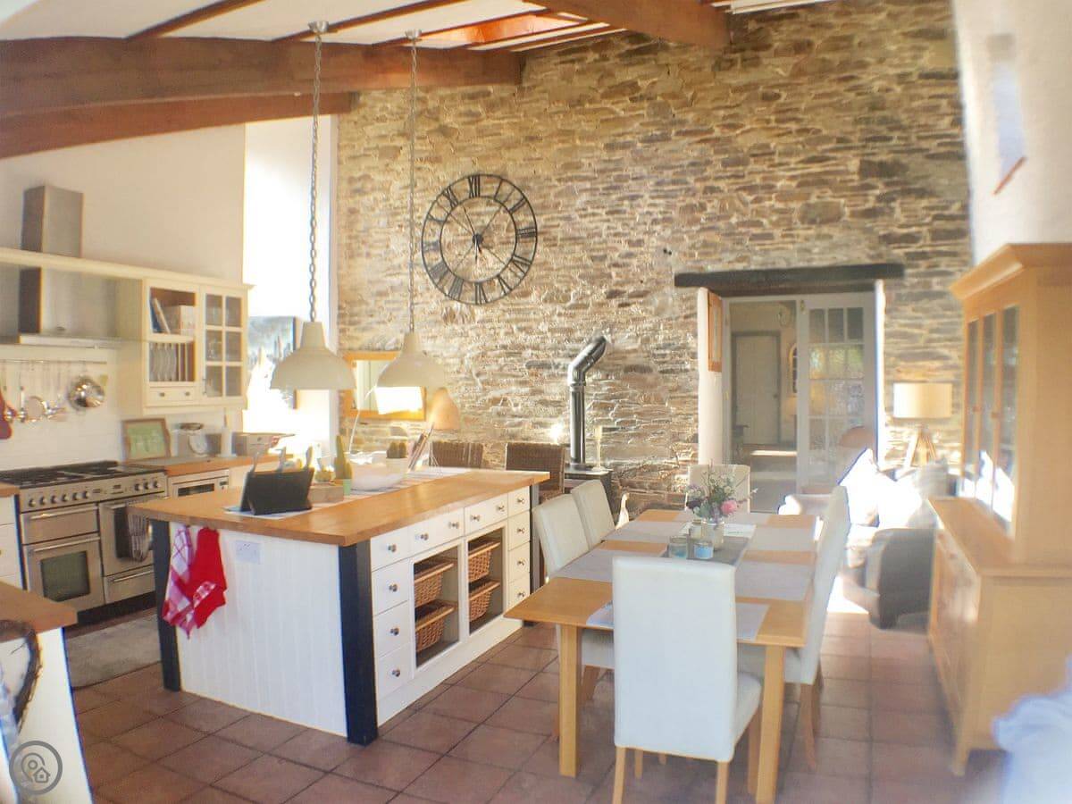 The Old Farmhouse is on Polean Farm in Pelynt. It's a semi-detached place, part of a group of cottages that used to be farm buildings. It sleeps nine, with five bedrooms and two bathrooms. It's got a 4 Star rating.