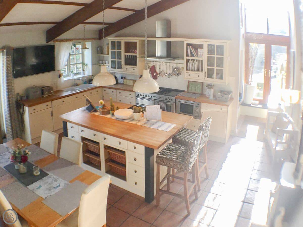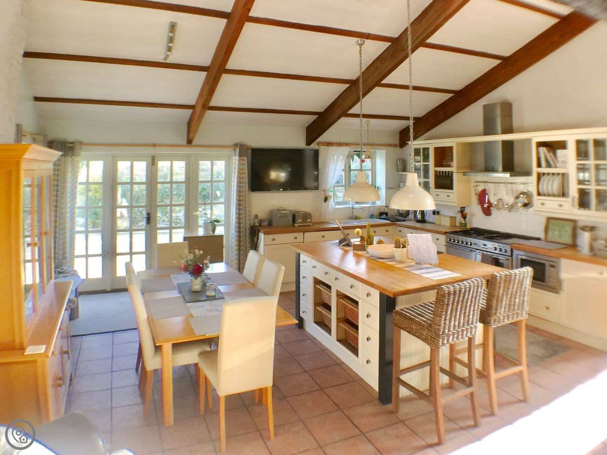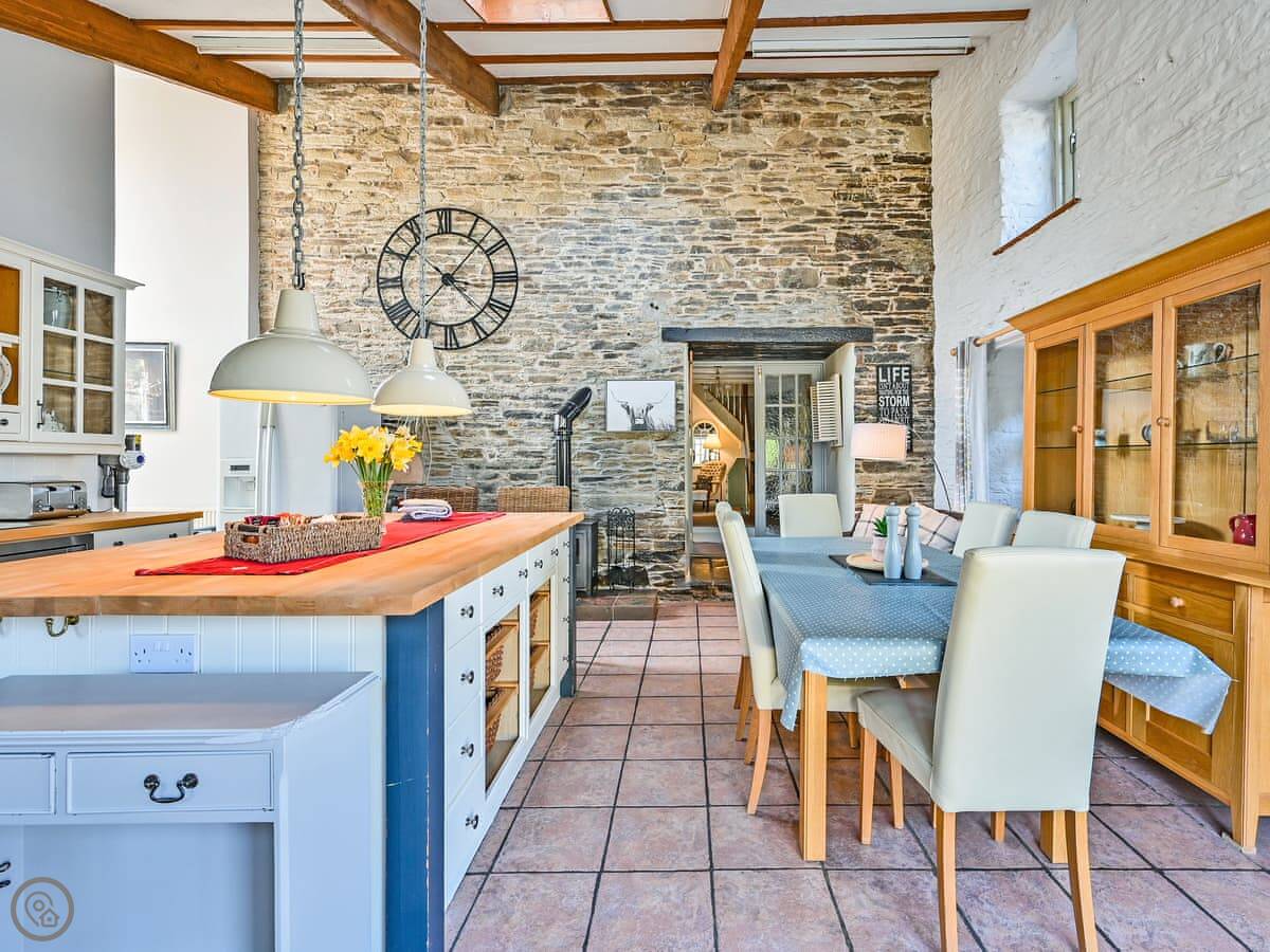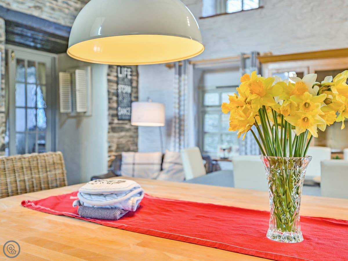Facilities here include a wood burner, dishwasher, WiFi, and a washing machine. Bedding and towels are included. There's parking on site. You can bring up to two dogs. There's a garden with a BBQ, and they've got a cot and highchair if you need them.