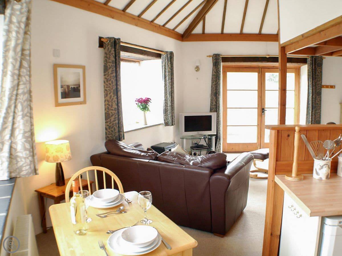 Threpney Cottage is on Polean Farm, just outside Pelynt village. The main thing is its shape, it's a roundhouse. They named it after an old twelve-sided coin. It's small, sleeps two. One bedroom, one bathroom. It’s got a 4 Star rating.