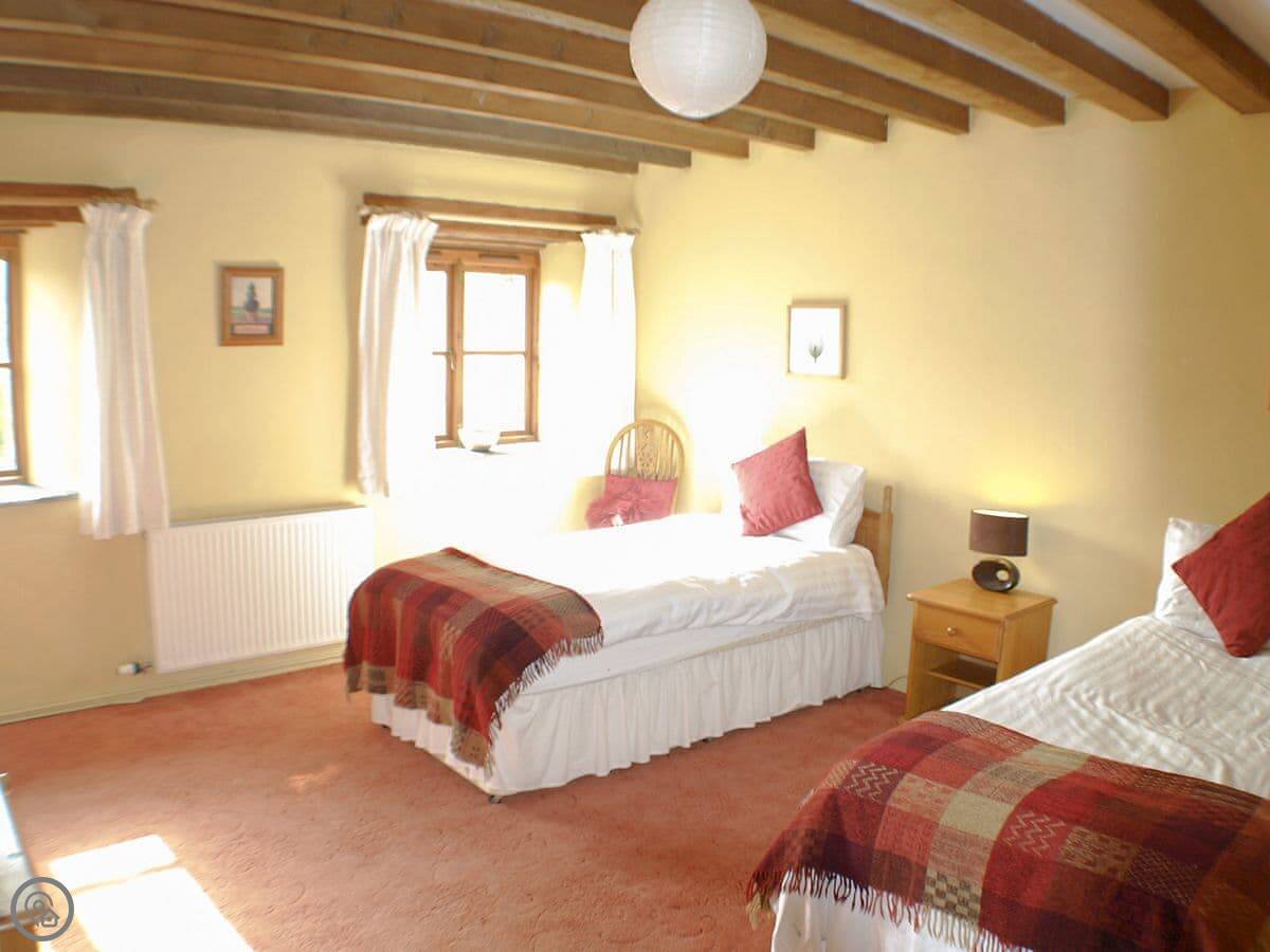 It sleeps four. Two bedrooms, both with their own bathrooms. It's got a 4 Star rating. It's clean and comfortable. The layout is upside down, so the living area is upstairs. That's to make the most of the view. You look out over the farm fields.