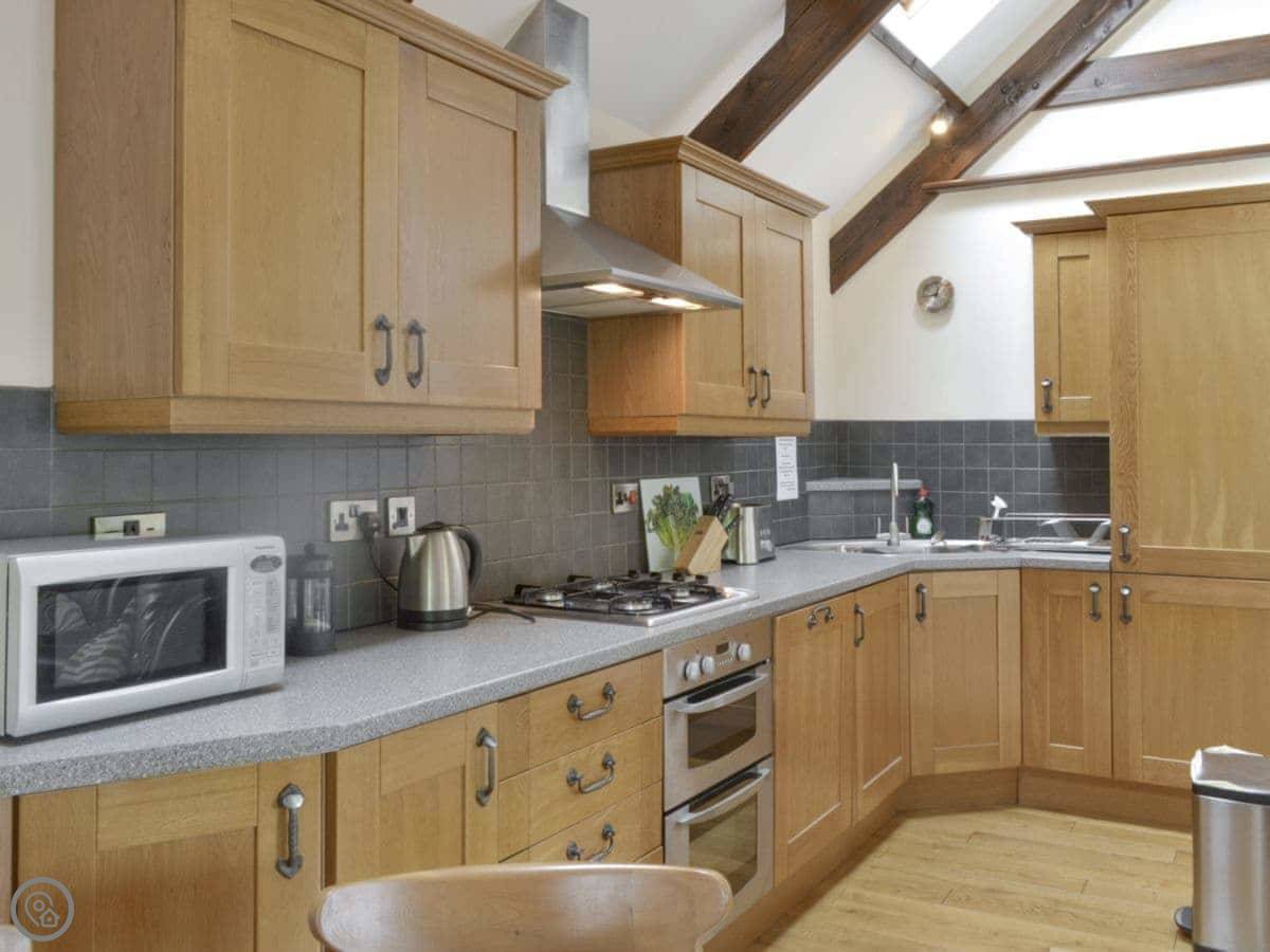 It sleeps six. There are three bedrooms and two bathrooms, which helps. It's a 4 Star place. It's been converted from a barn, so it's got that kind of character. There's another barn conversion attached to it, Cider Barn, but you have your own private garden.