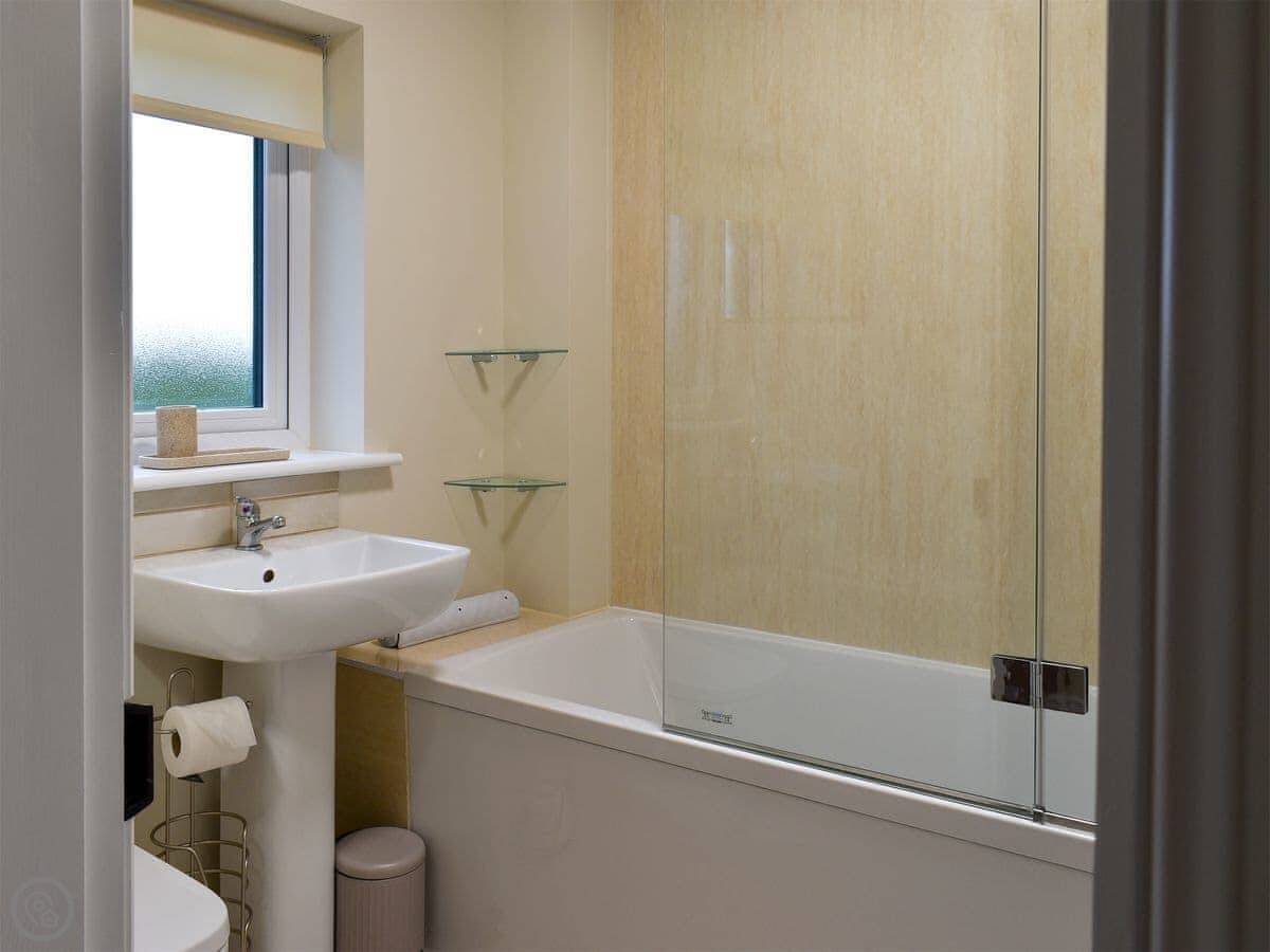 It sleeps four. Two bedrooms and two bathrooms, which is handy. One's a double and the other has adult-sized bunk beds. It's got a 4 Star rating, which means it's well looked after. It's on three floors, like a lot of these old places. The stairs are fine, but you'll notice them.