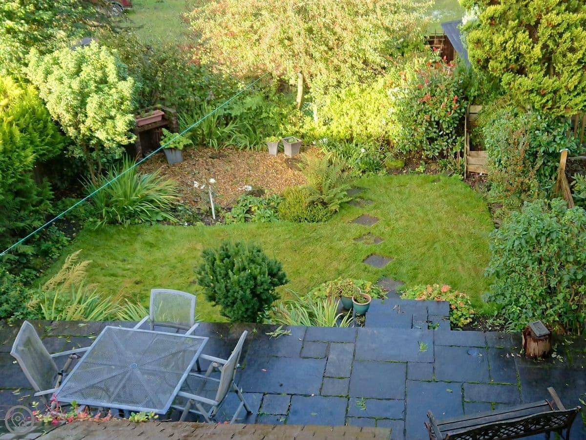 The layout is a bit quirky. It's on three floors. The kitchen is on the lower ground floor. It walks out to the garden, which is a decent size and enclosed. From the living room on the middle floor, there's a small balcony that looks over the garden and the fields. The stairs in the cottage are steep, just so you know.