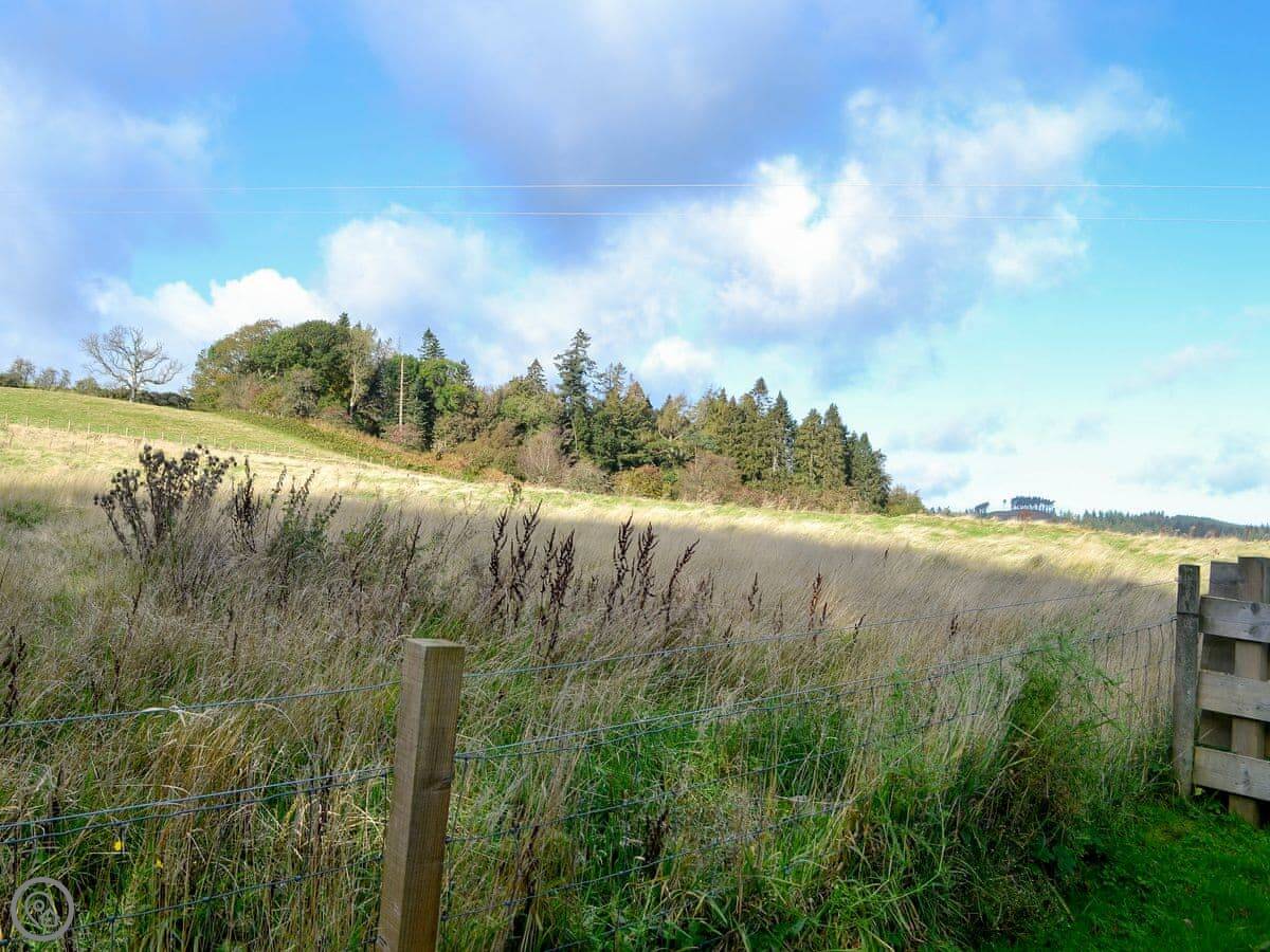 It's set in Mabie Forest, so the views from most rooms are over fields and trees. The dining room has a big wood burner if you need it. The stairs are normal, not too steep.