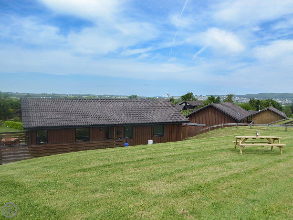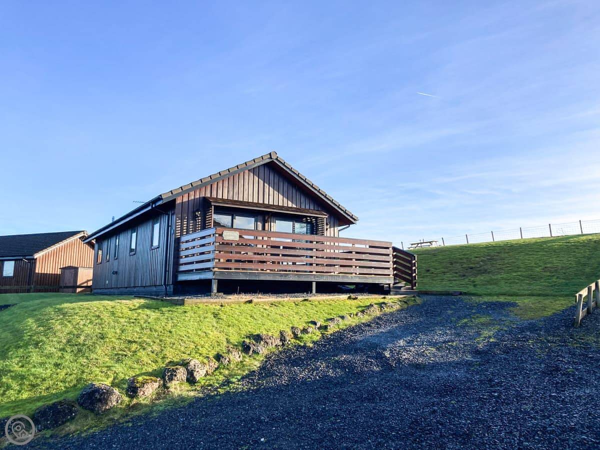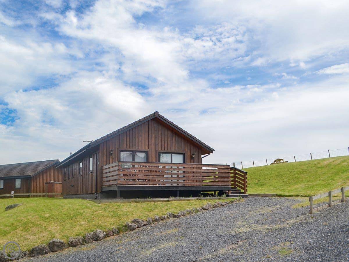 Kaptain’s Cabin is a lodge in Glen Dowlin, Cumbria. It's on its own, not stuck to another one, at the top of a small site. You get the whole plot.