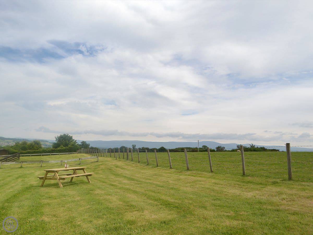 The best bit is the garden at the back. There's a picnic bench that looks out over the fields to the hills. It's a good spot for a drink in the evening.