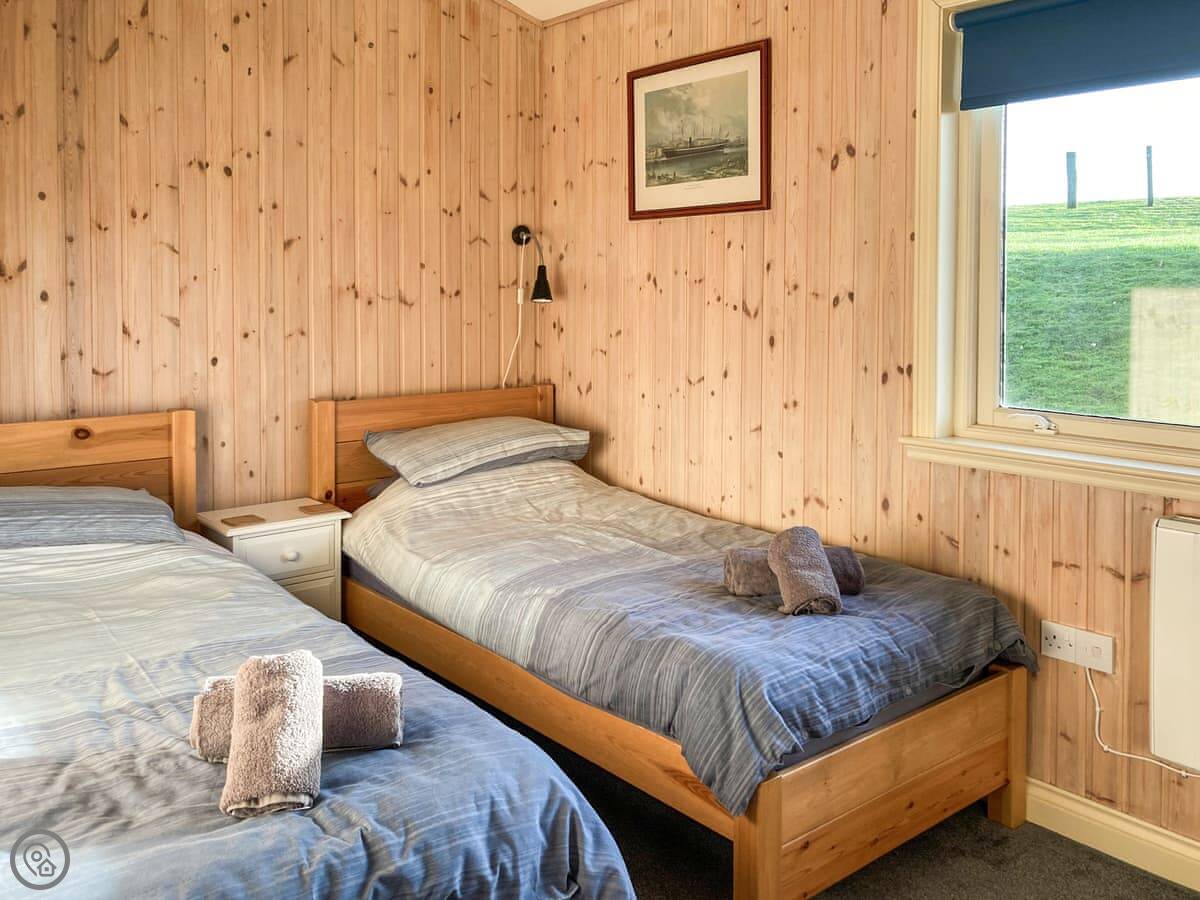 It sleeps four. Three bedrooms and two bathrooms. It's got a 3 Star rating, so it's comfortable and clean. The stairs up to one of the bedrooms are quite steep, like a ship's ladder. You need to watch your head up there.