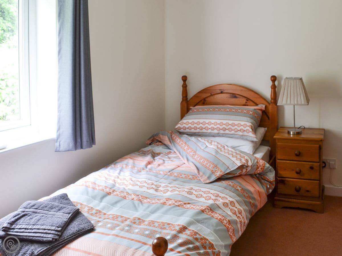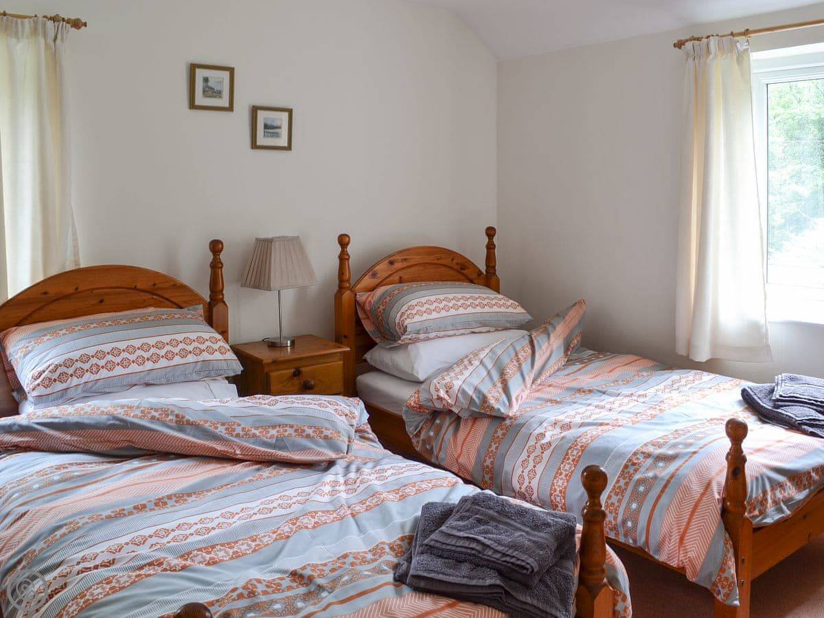 It sleeps five. Three bedrooms, one bathroom. It's got a 3 Star rating, so it's comfortable and clean. The garden is good, about half an acre. You can sit outside. You've got private fishing rights along the beck that runs past.