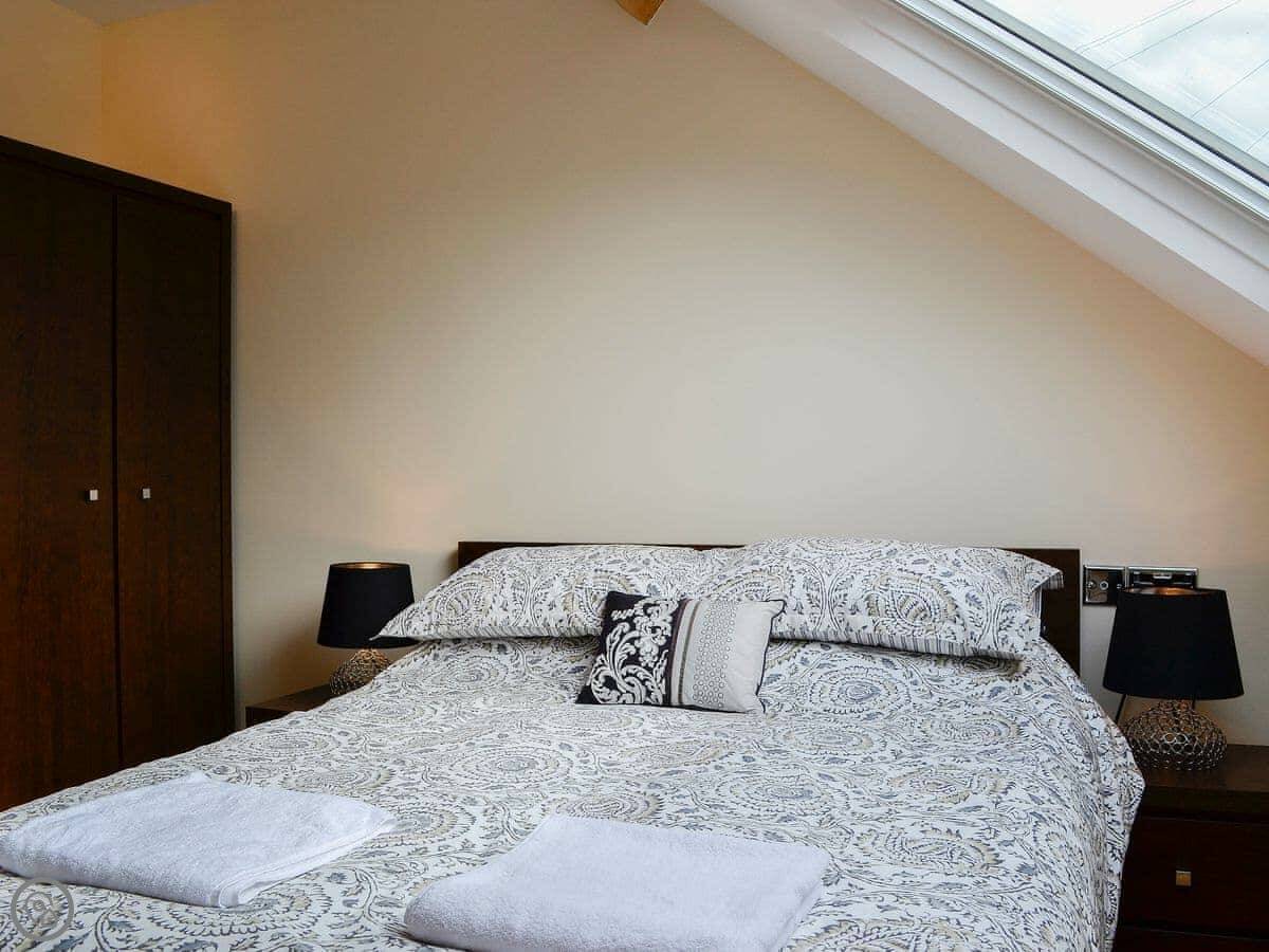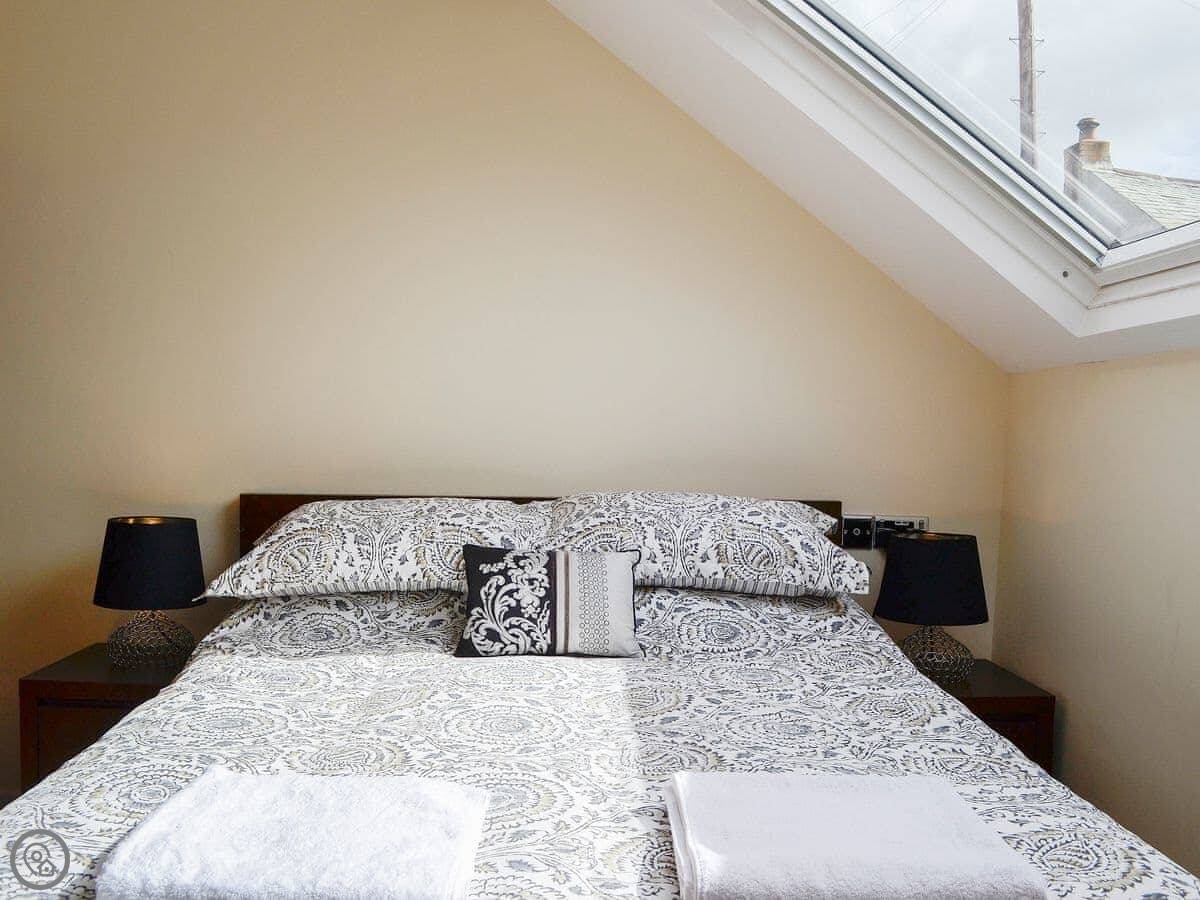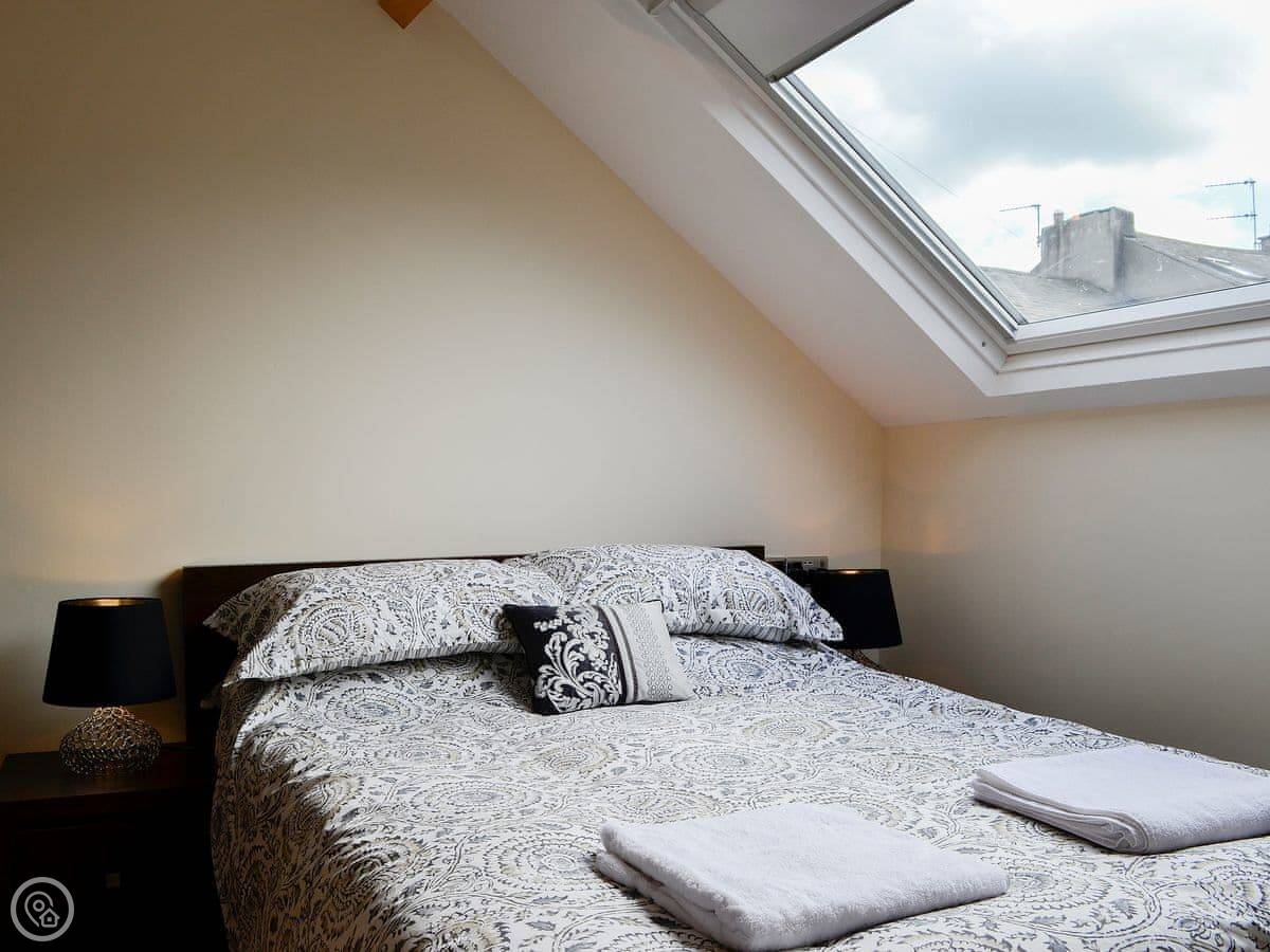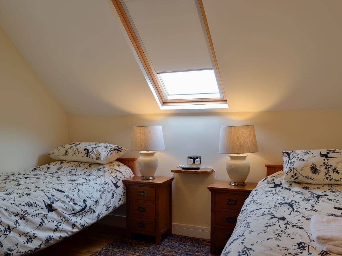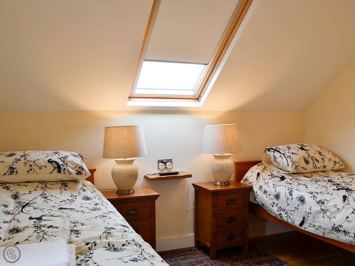 It sleeps four. Two bedrooms upstairs, one double and one twin, and one bathroom. It's a 4 Star place, so it's comfortable and well looked after. The stairs are a spiral staircase. They look nice, but they're steep and a bit tight.