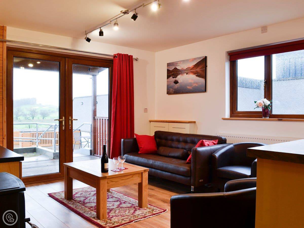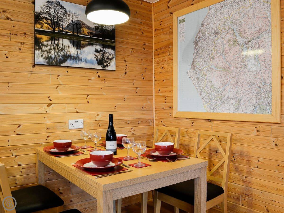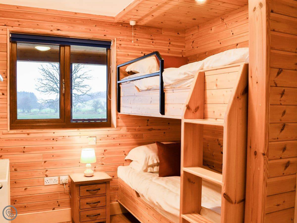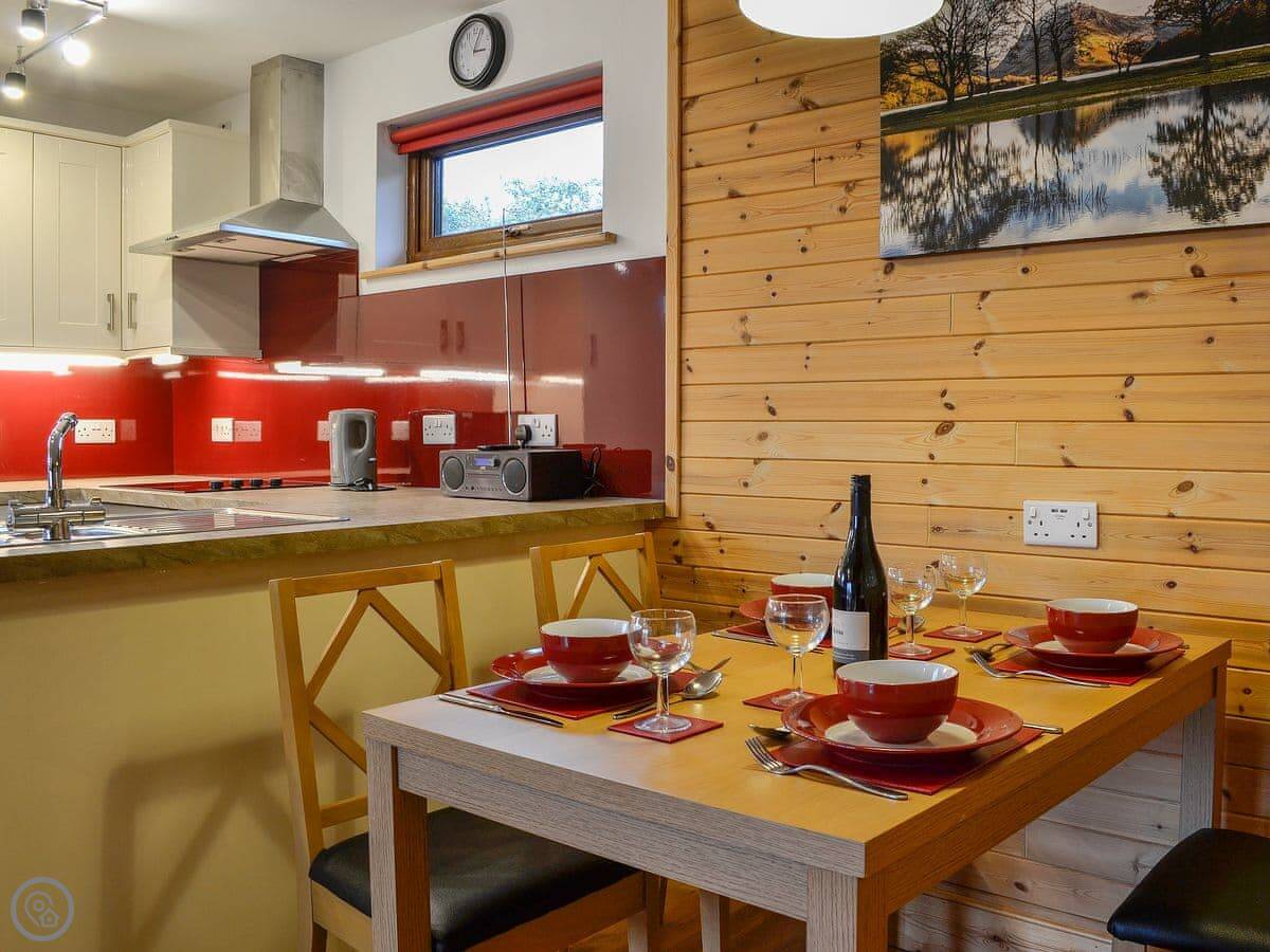 Knock Murton Lodge is in Crossgates, outside Cockermouth. It's a timber lodge. The views are good. You can see fields and the Western Fells.